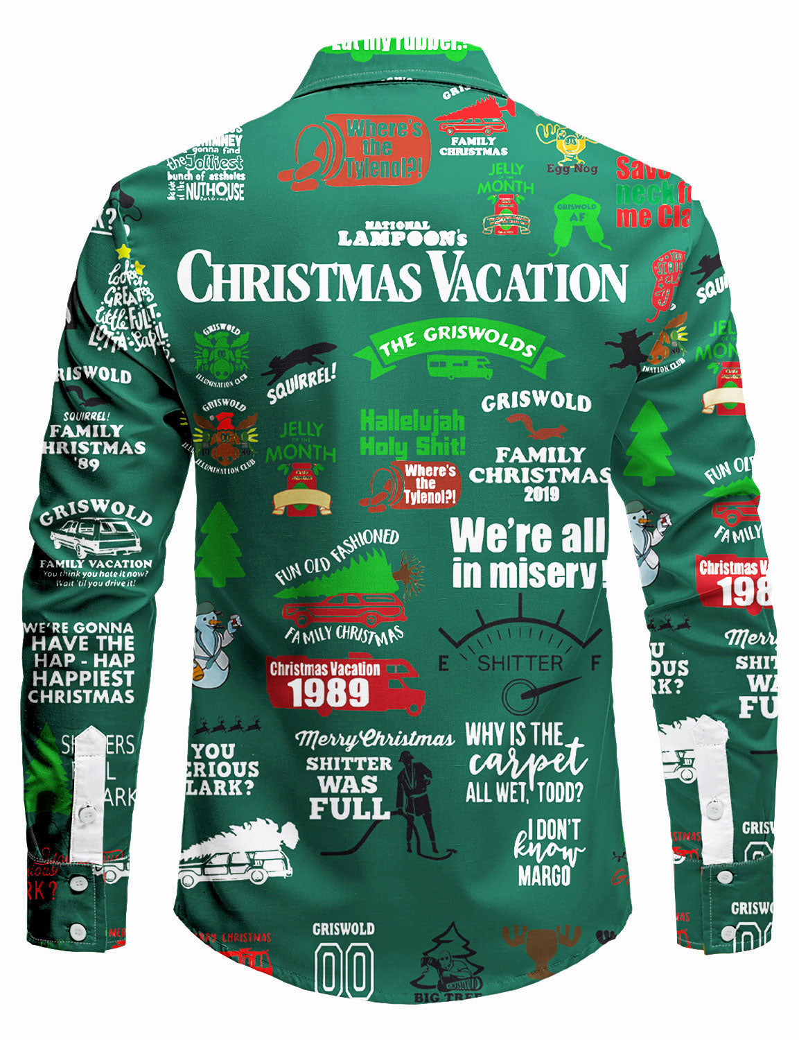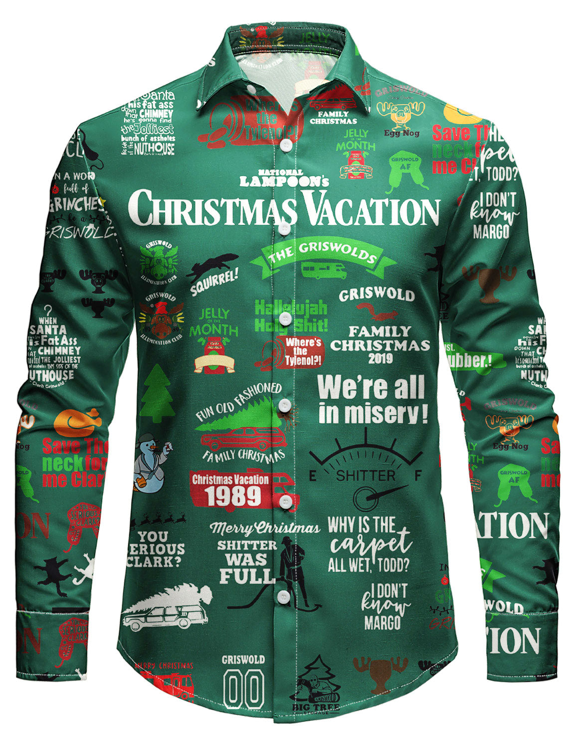 Men's Christmas Vacation Green Funny Print Long Sleeve Button Shirt