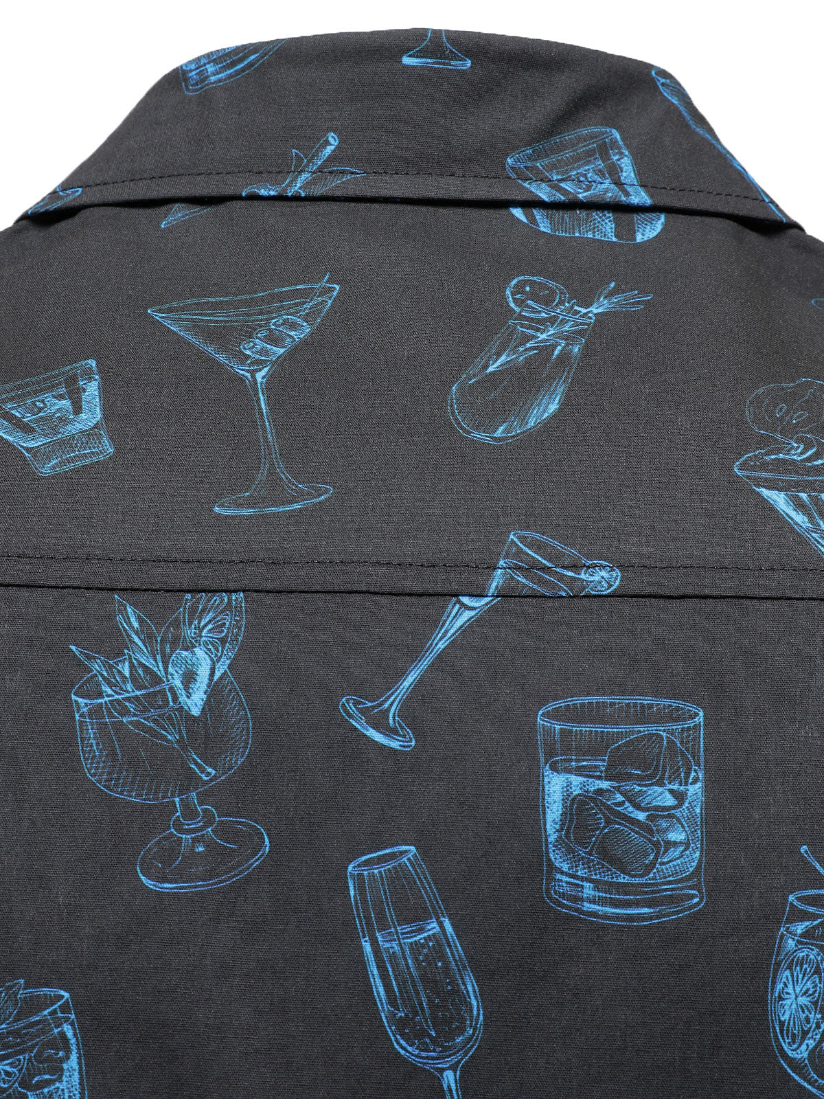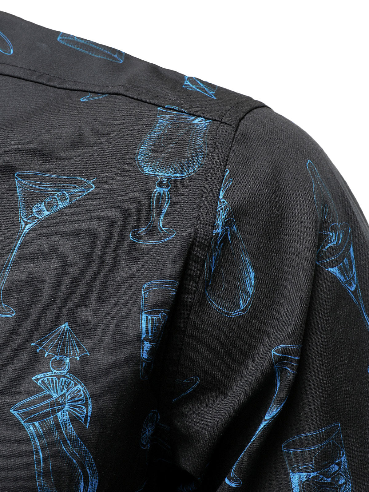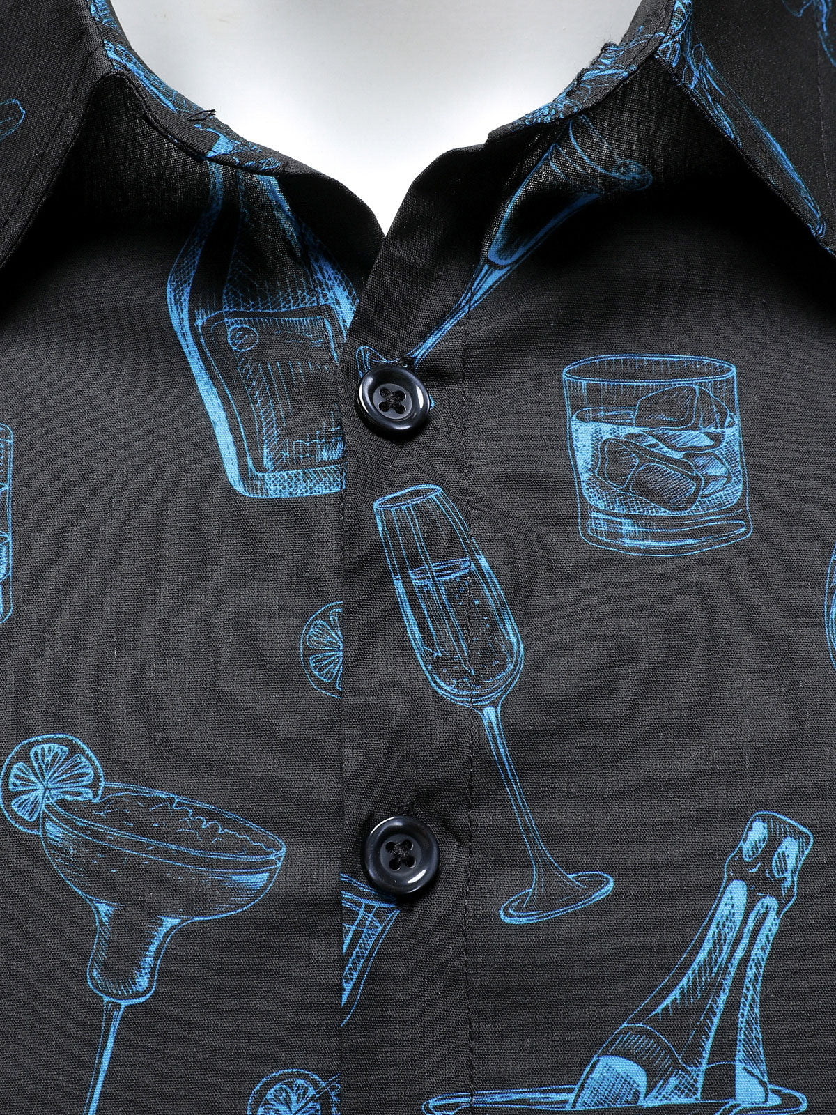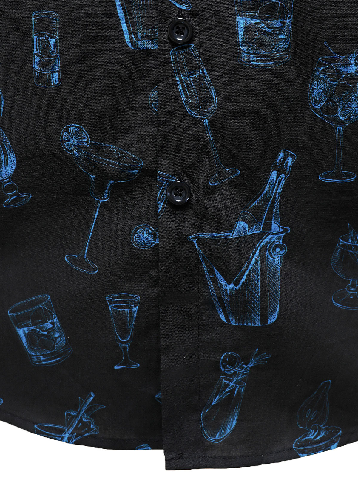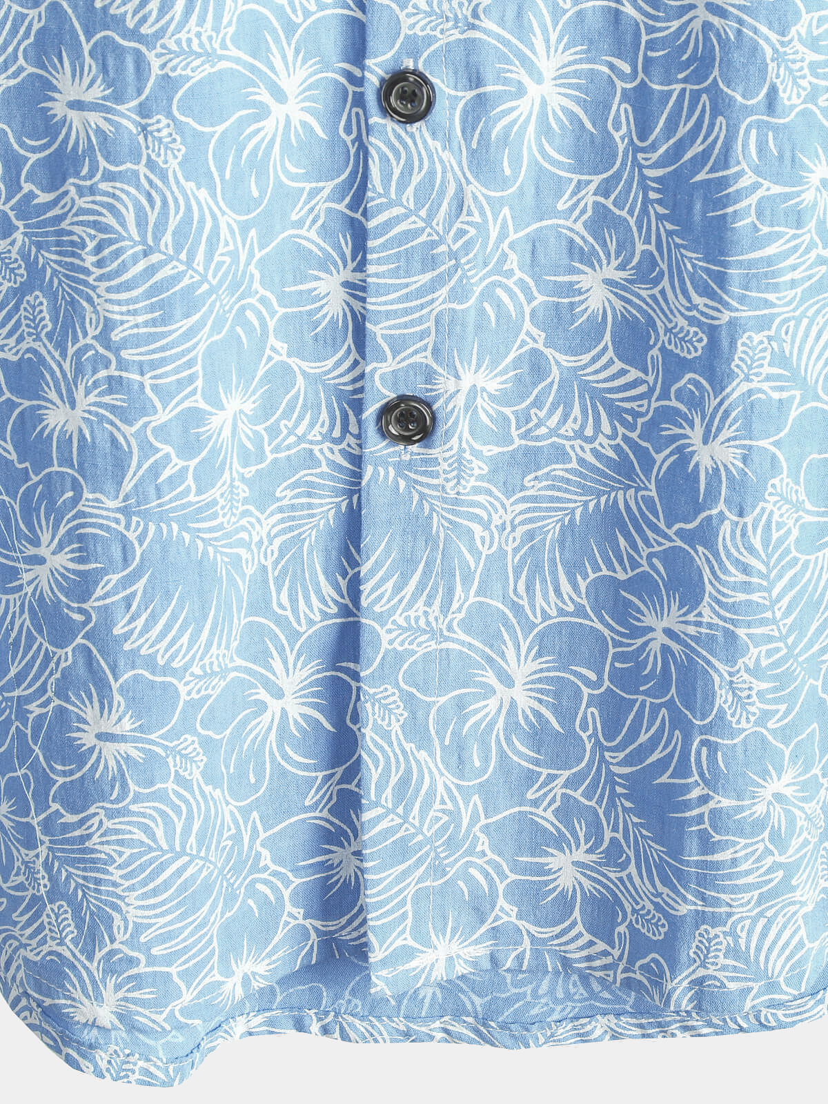 Men's Cotton Floral Holiday Flower Print Button Up Beach Light Blue Hawaiian Short Sleeve Shirt