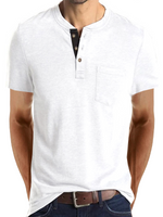 Men's Cotton Henley Collar Solid Color Casual Short Sleeve T-Shirt