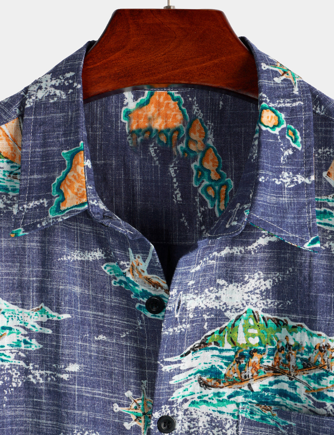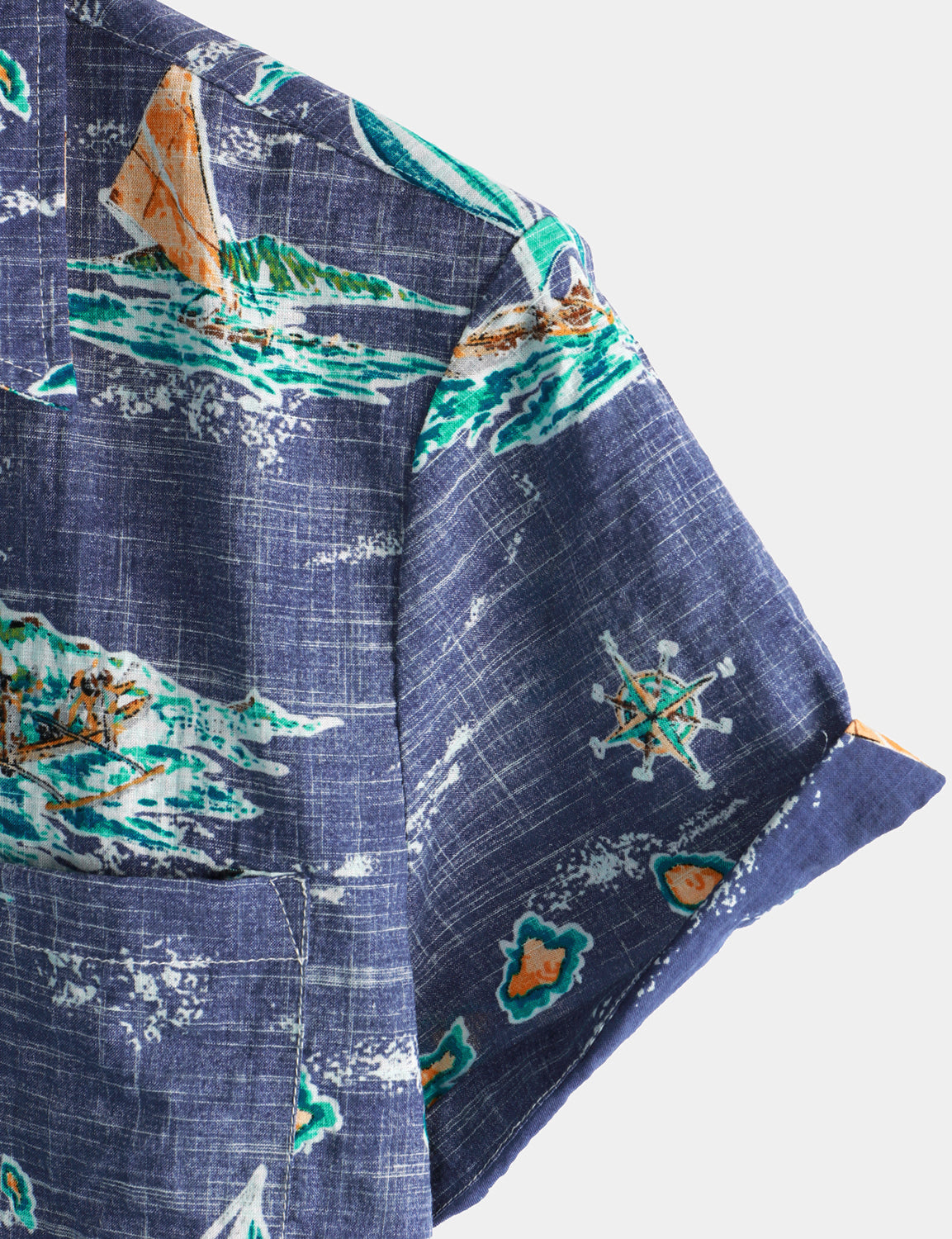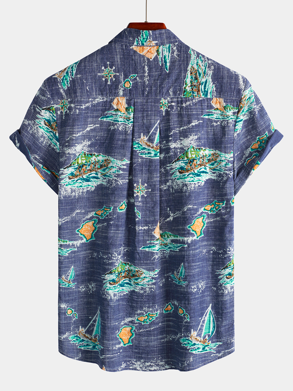 Men's Cotton Navy Blue Hawaiian Islands Cruise Beach Button Up Pocket Summer Short Sleeve Aloha Shirt