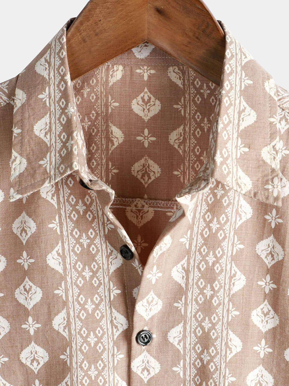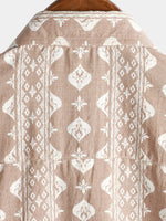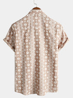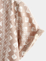 Men's Cotton Retro Button Up 70s Brown Striped Vintage Short Sleeve Shirt
