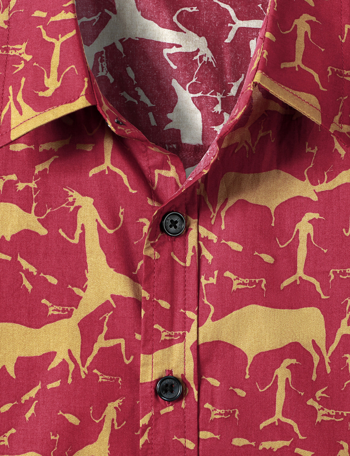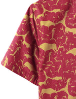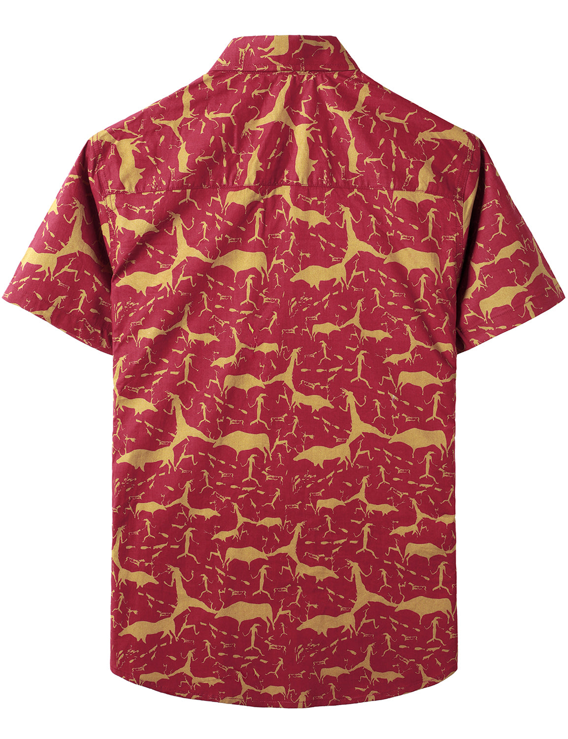 Men's Cotton Vintage Animal Print Red Retro Tribal Button Up Short Sleeve Shirt