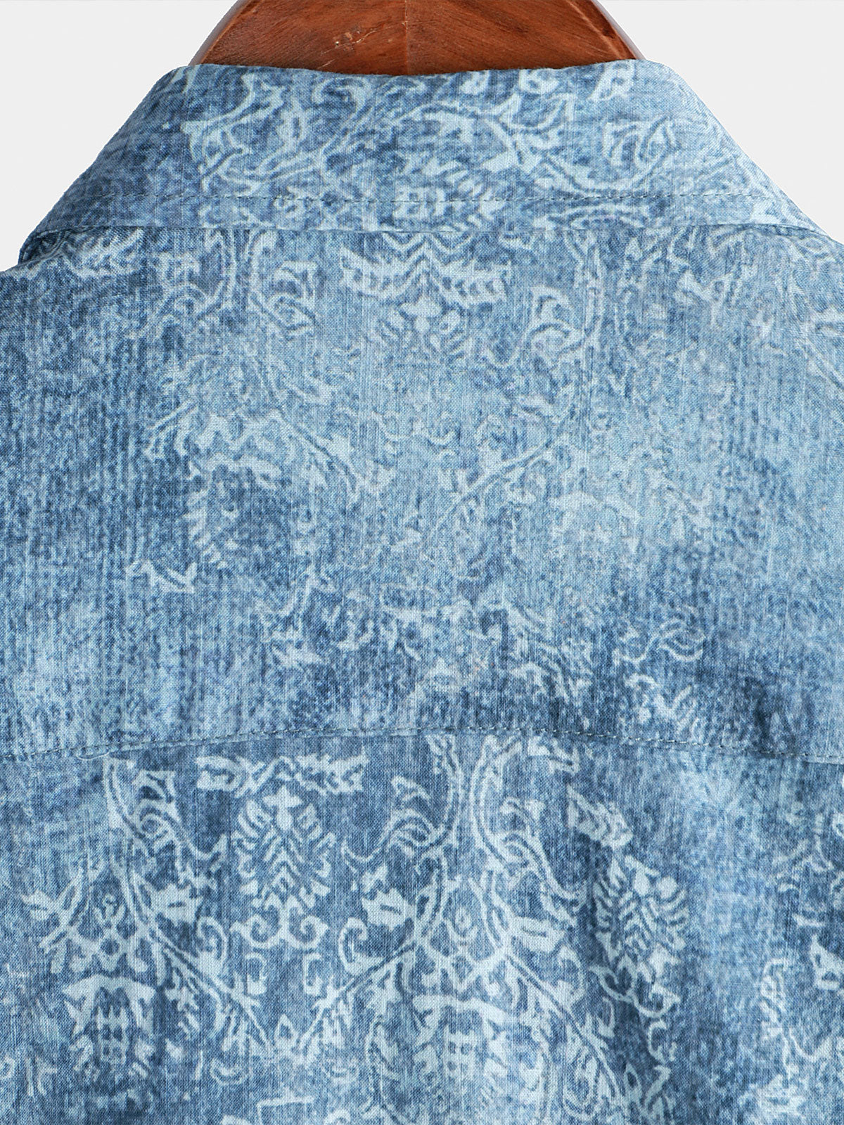 Men's Cotton Vintage Light Blue Short Sleeve Summer Button Up Shirt