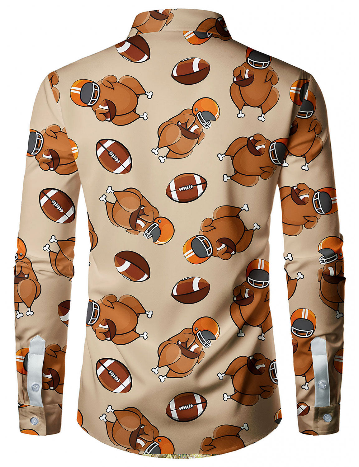 Men's Cute Thanksgiving Holiday Turkey Football Button Long Sleeve Shirt