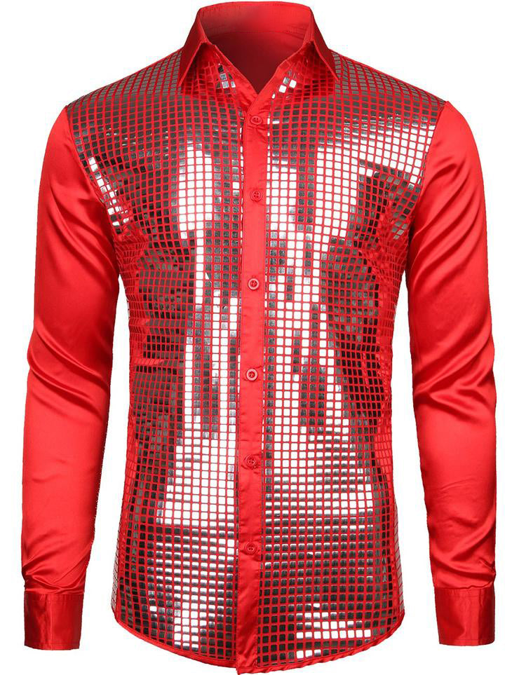 - Sequins Night Club Party Shirts for casual/Costume/Stage Performance/adult party/Disco/Christmas/Halloween party