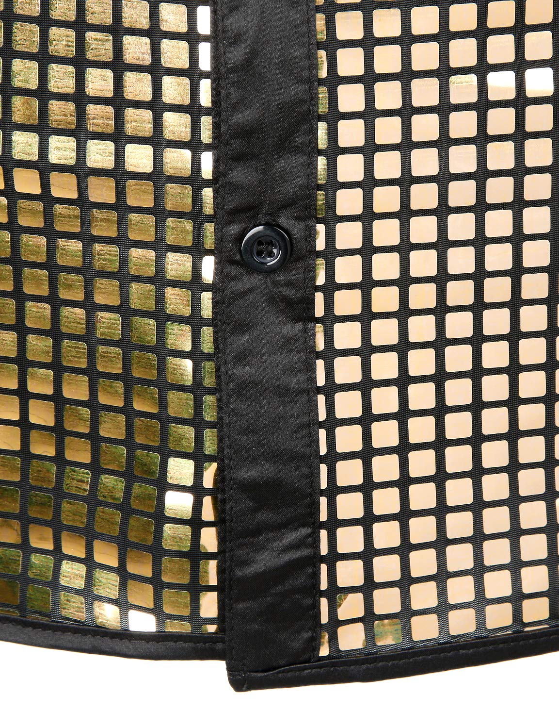 Mens Dress Shirt Silver Sequins Long Sleeve Button Down Disco Shirt Party Costume