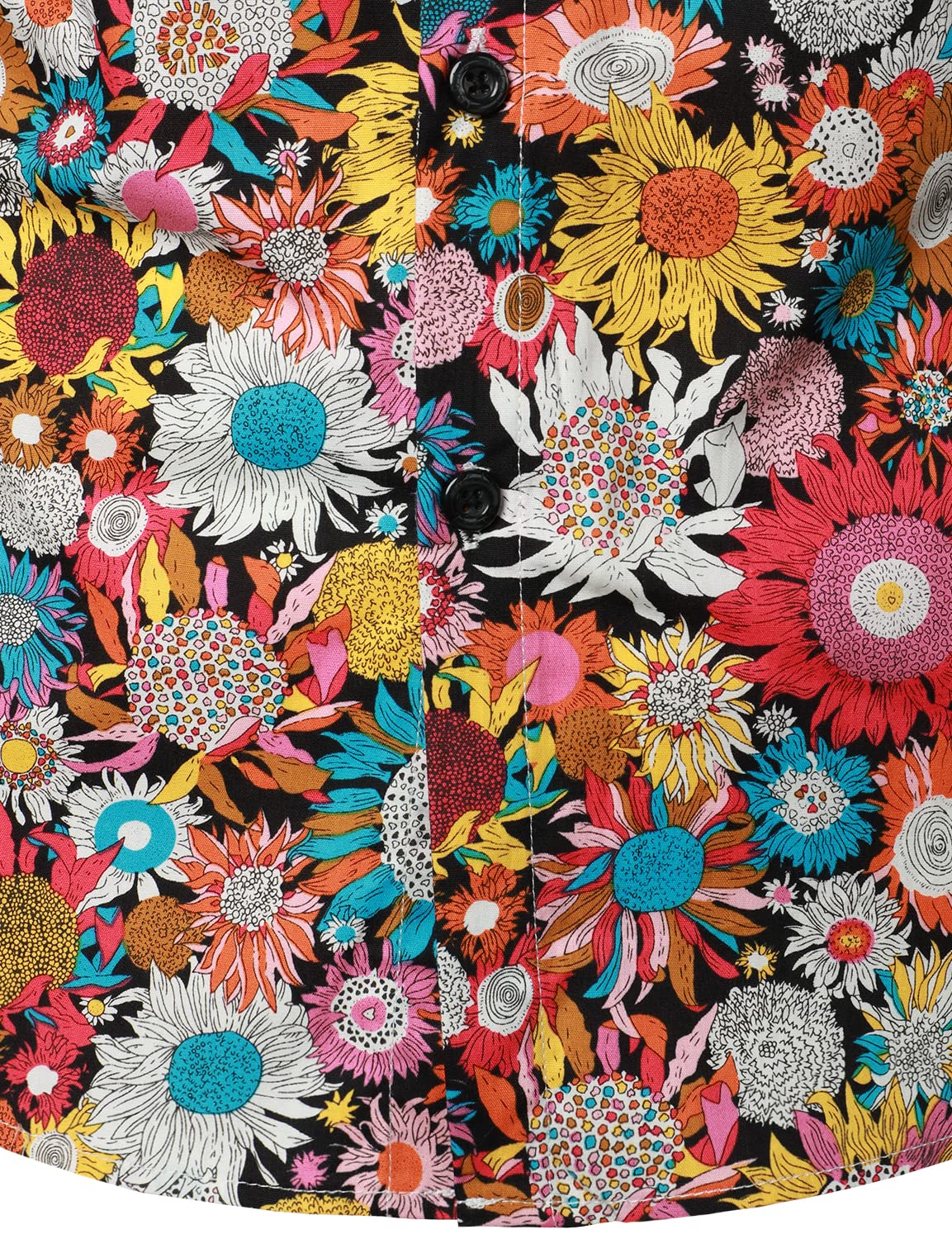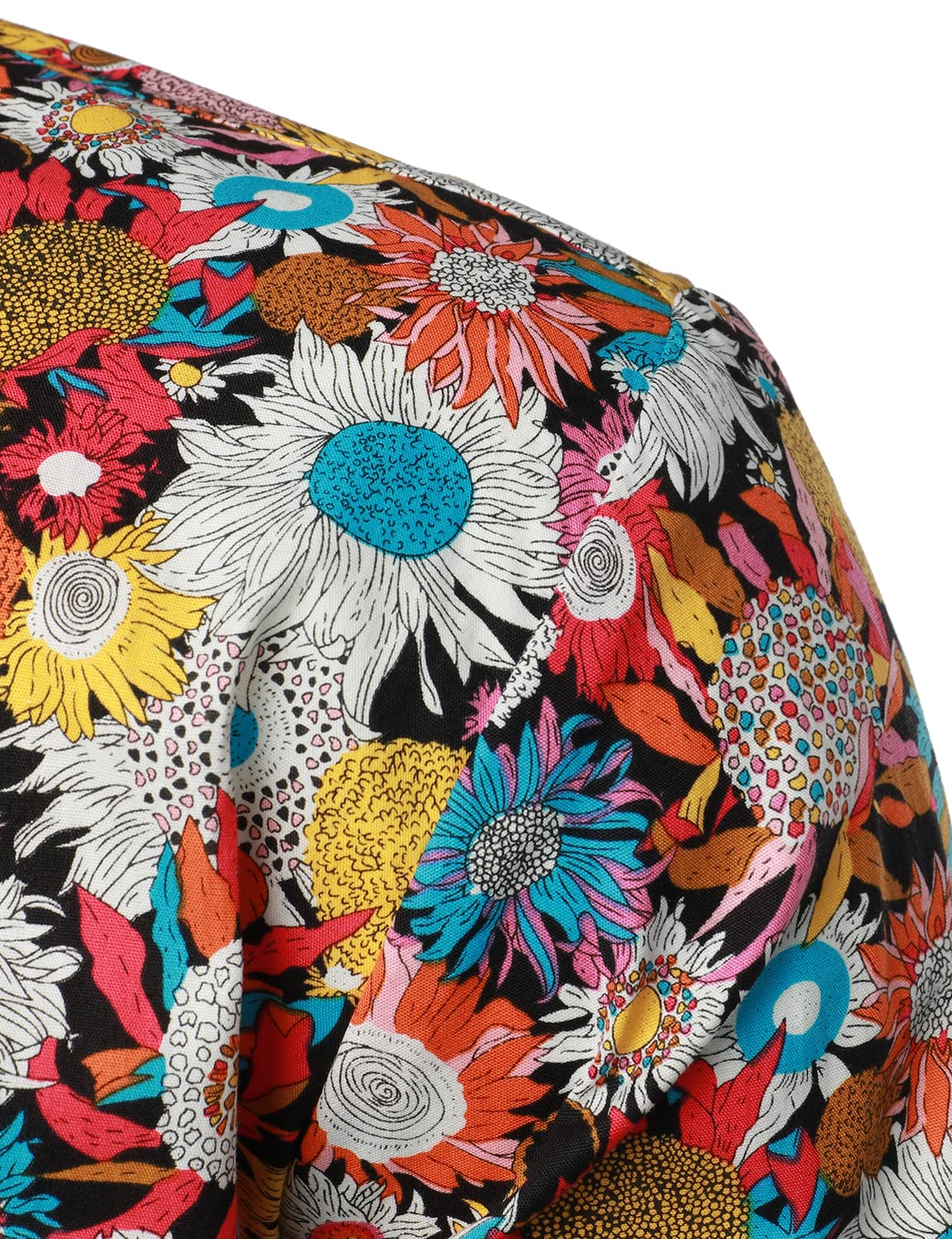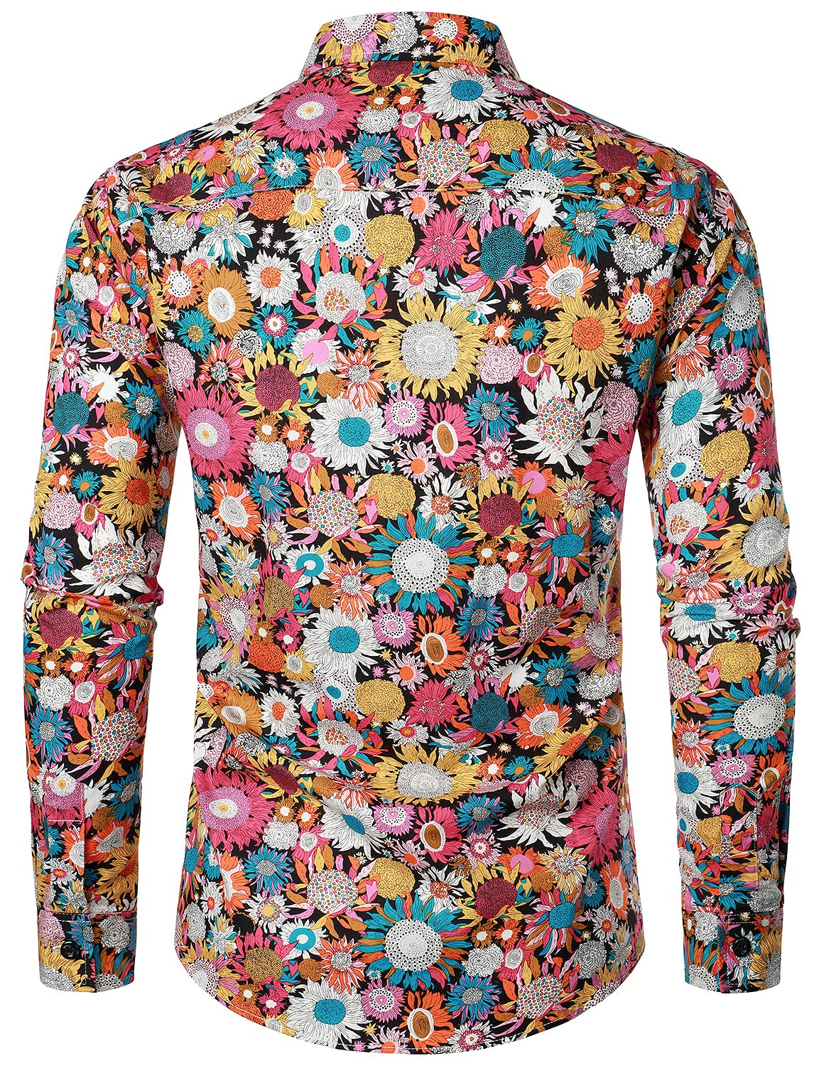 Men's Floral Print Cotton Flower Button Up 70s Long Sleeve Dress Shirt