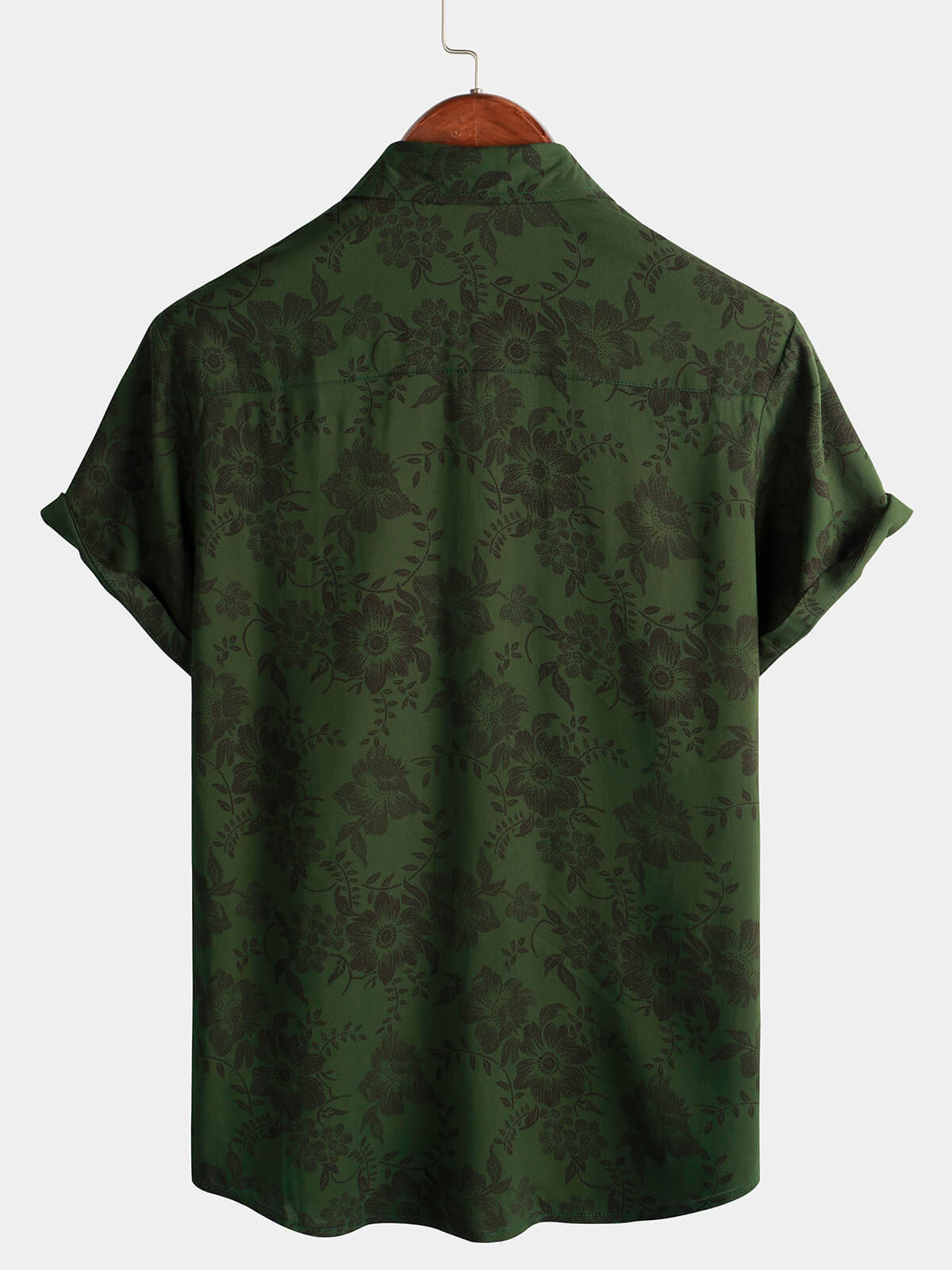 Men's Floral Dark Green Hawaiian Vintage Soft Beach Holiday Button Up Short Sleeve Shirt