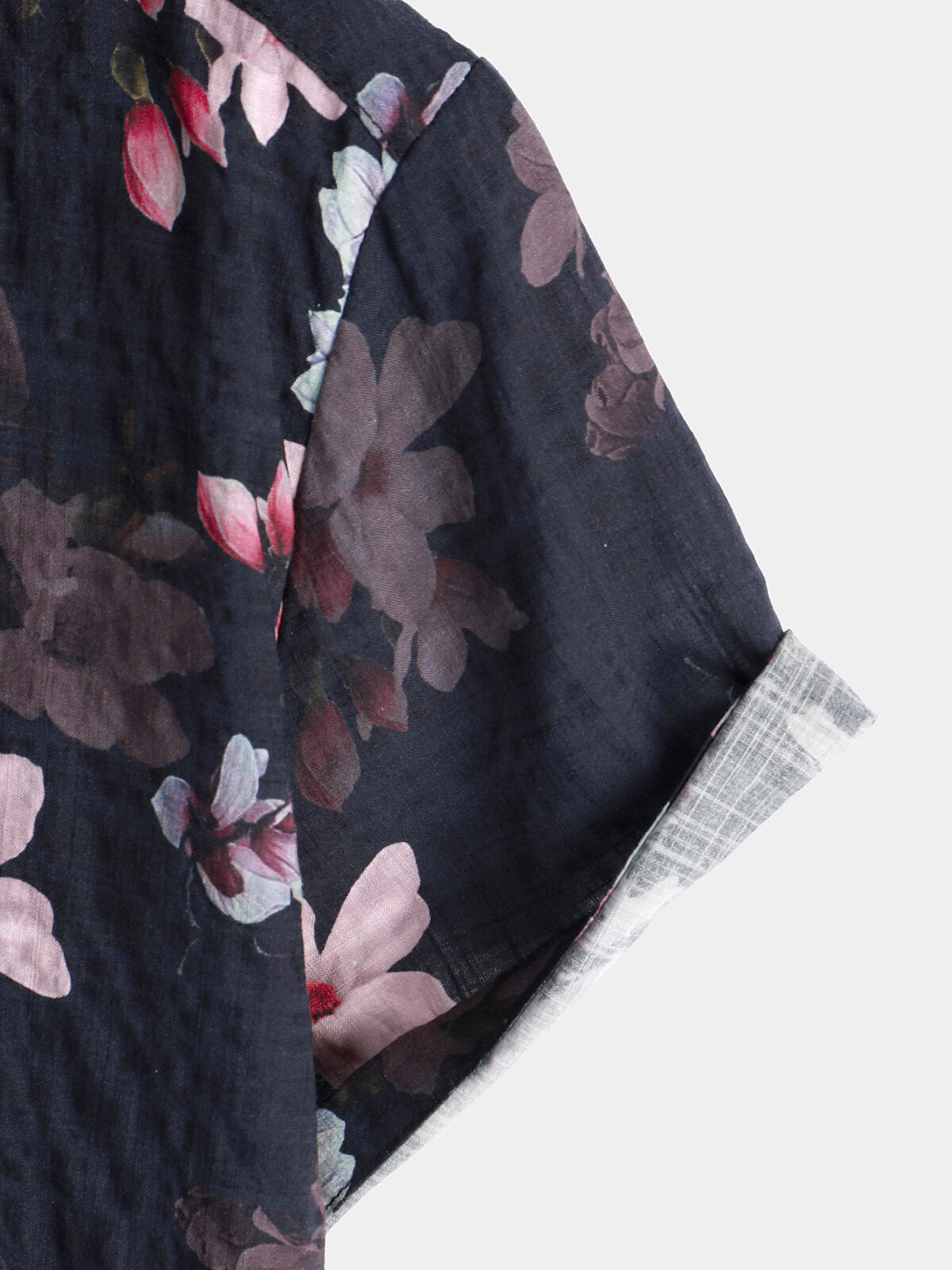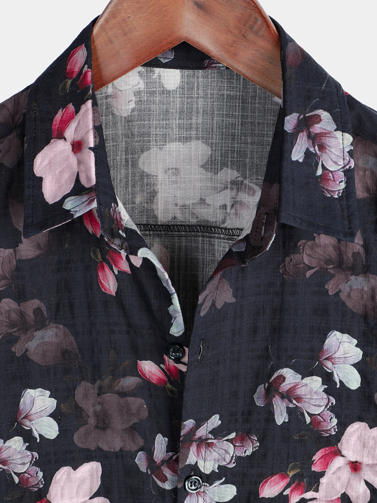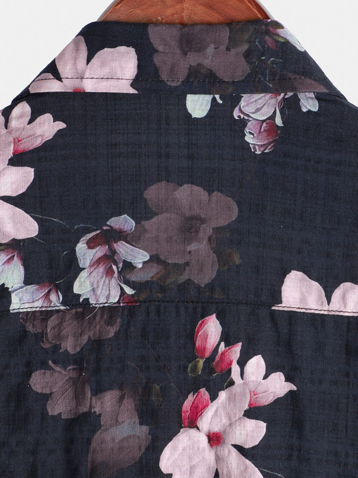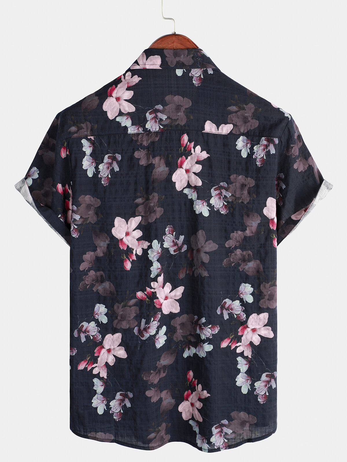 Men's Floral Holiday Hawaiian Short Sleeve Beach Button Up Summer Shirt