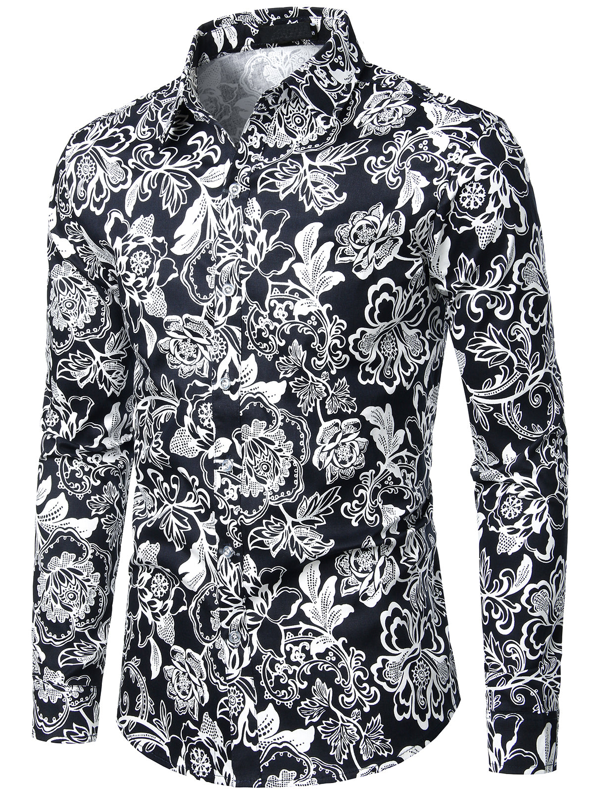 Men's Floral Cotton Casual Button Down Long Sleeve Shirt