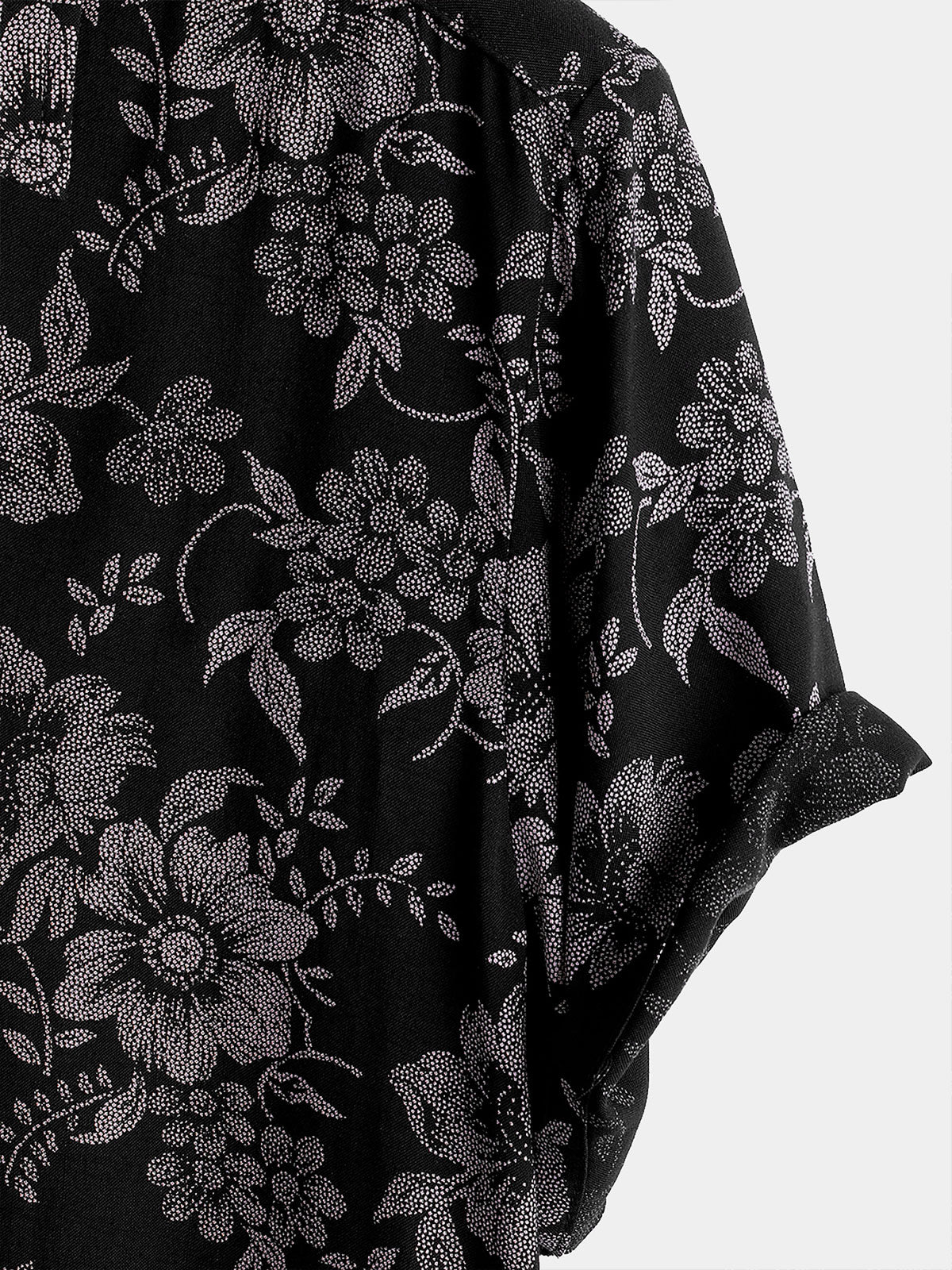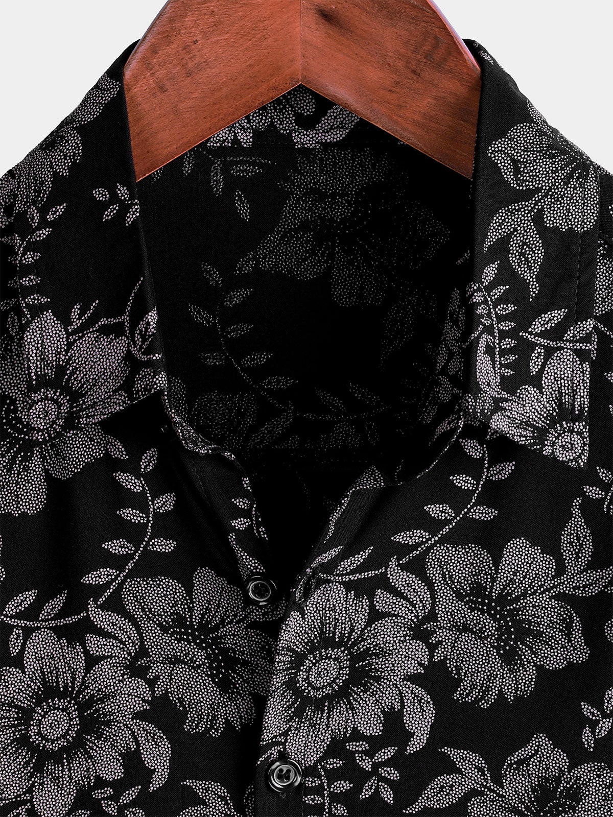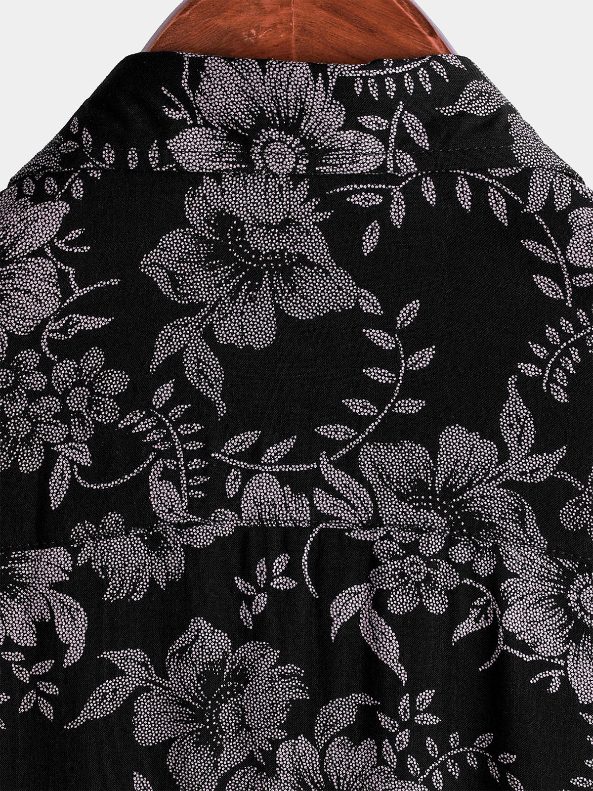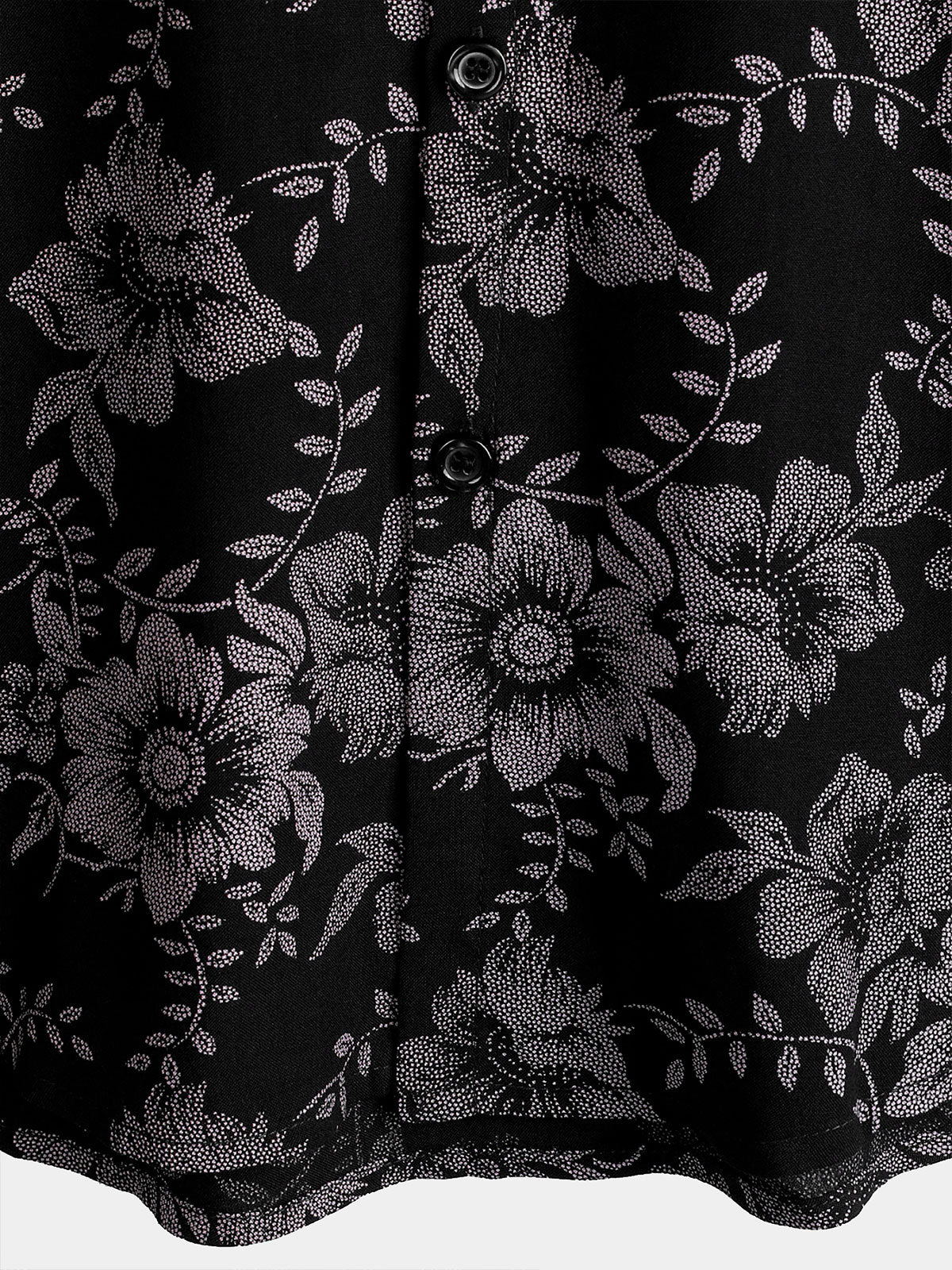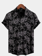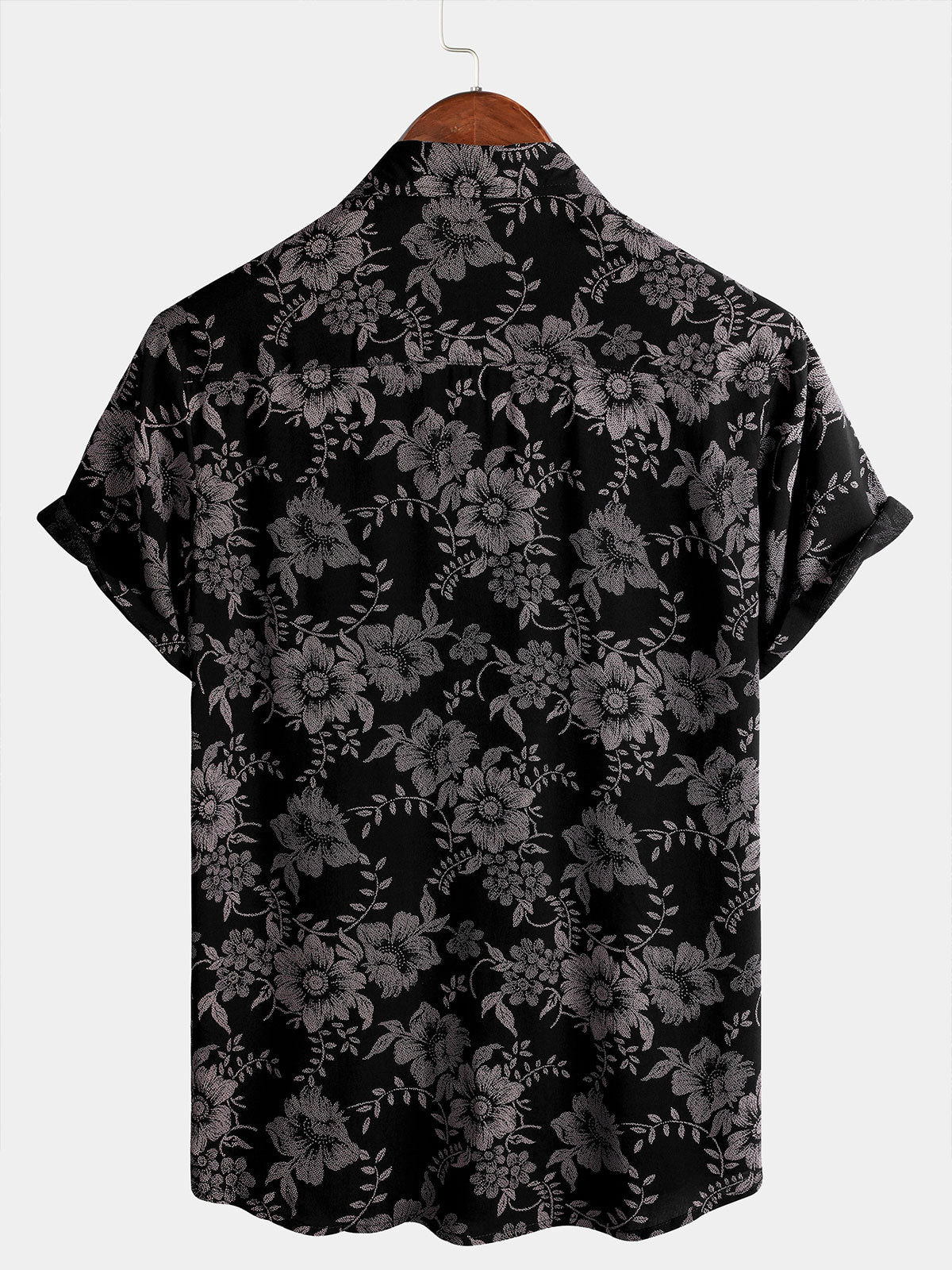 Men's Floral Print Black Vintage Holiday Breathable Hawaiian Short Sleeve Shirt