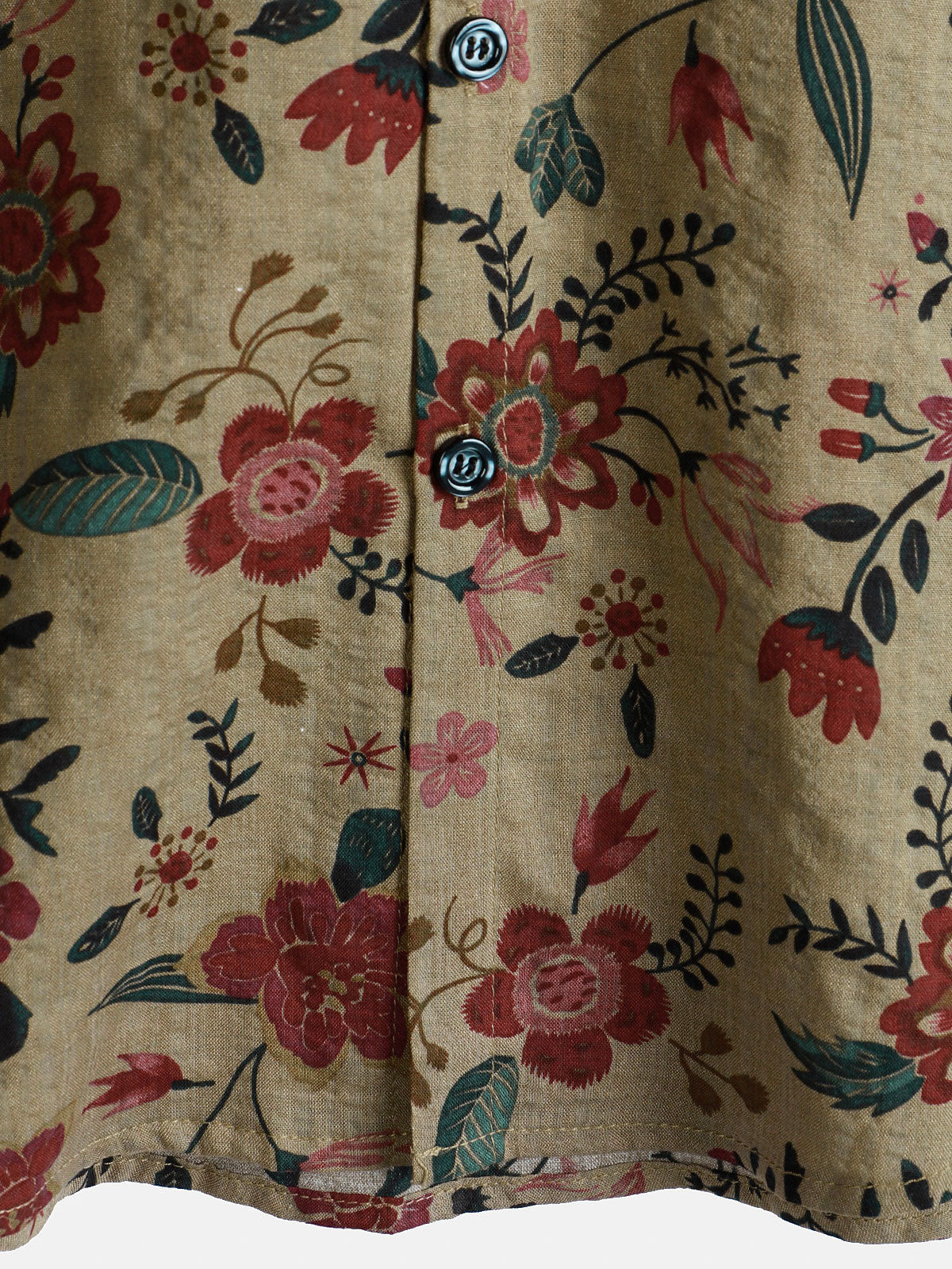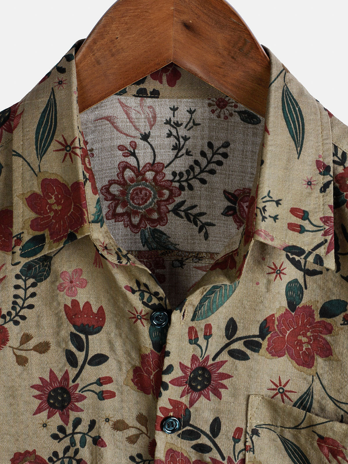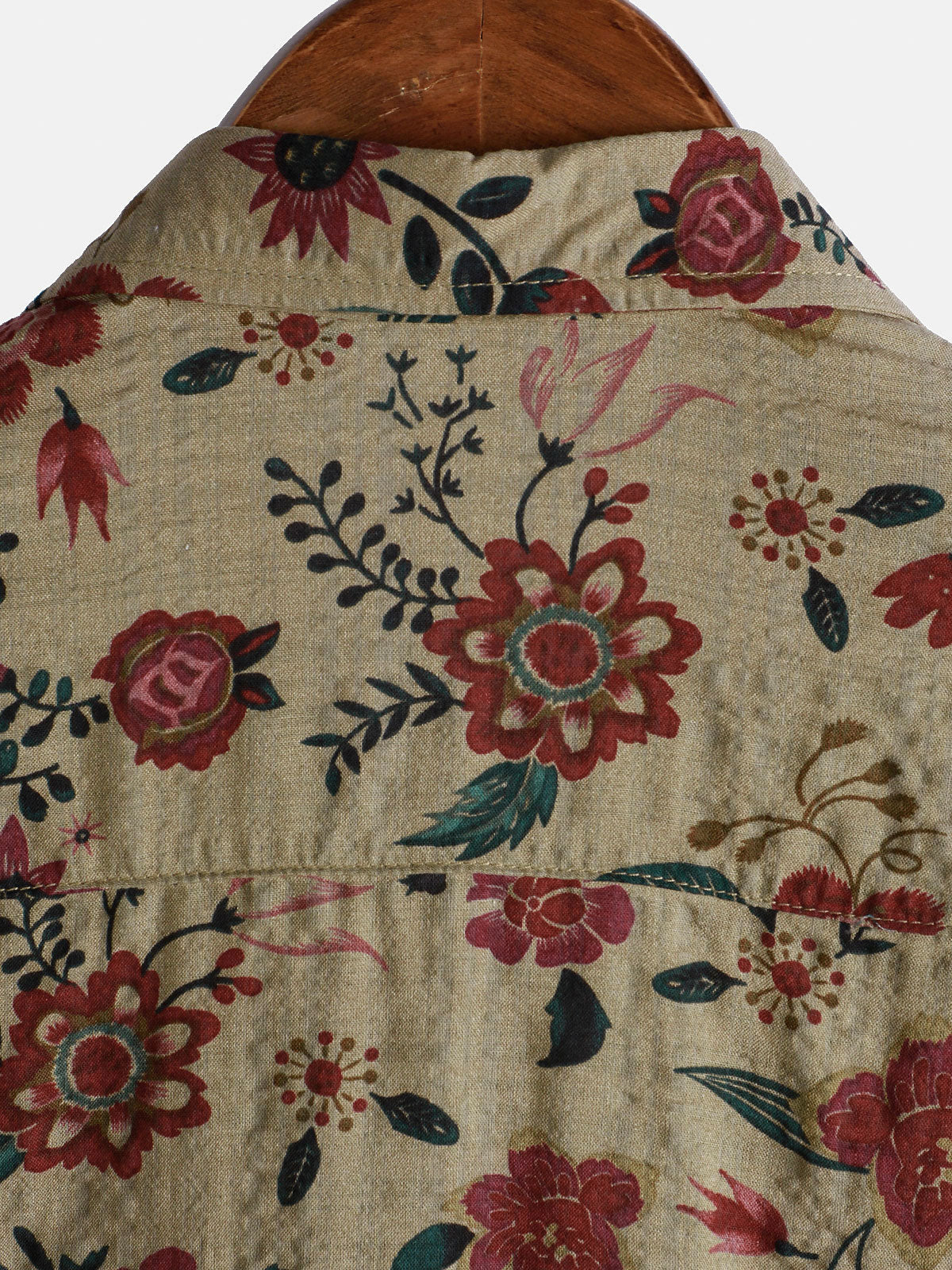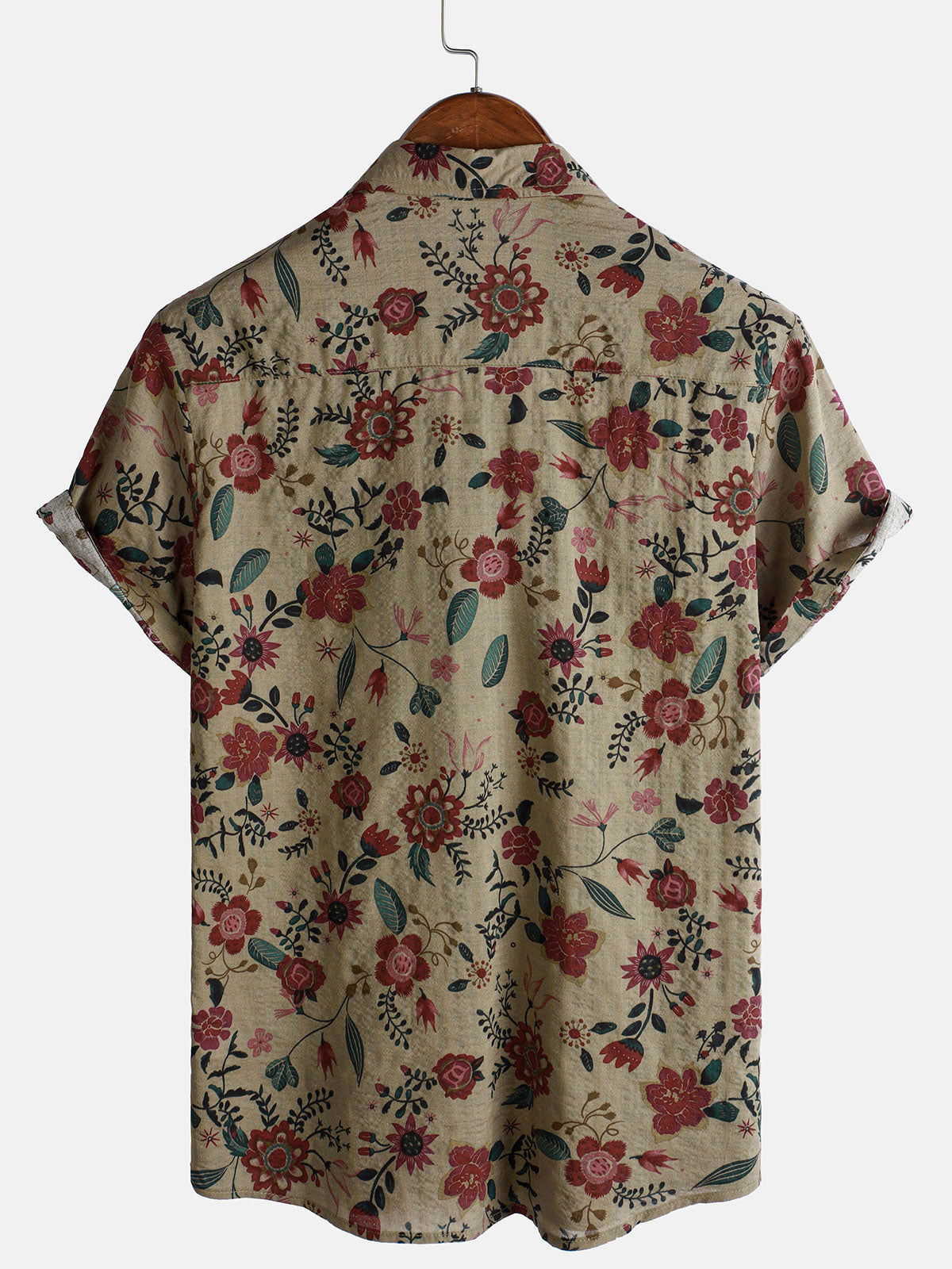 Men's Floral Print Lightweight Short Sleeve Retro Shirt