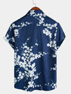 Men's Floral Print Vintage Navy Blue Casual Short Sleeve Lapel Shirt