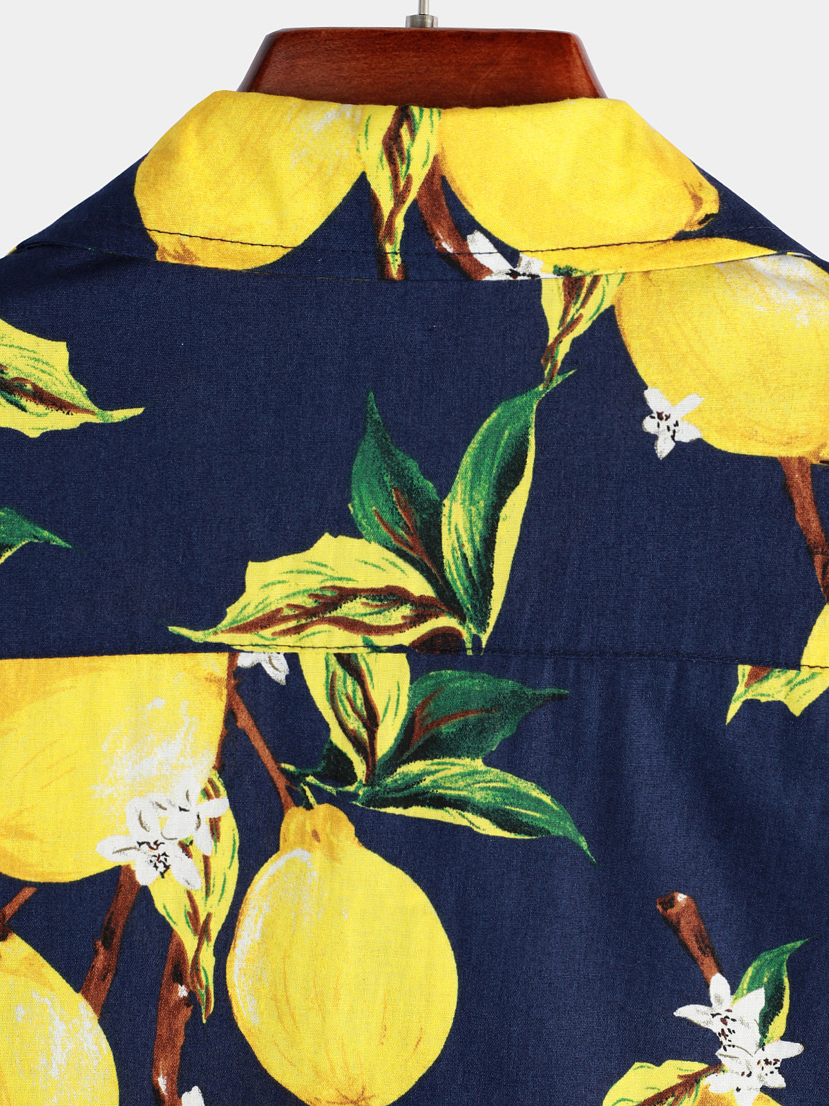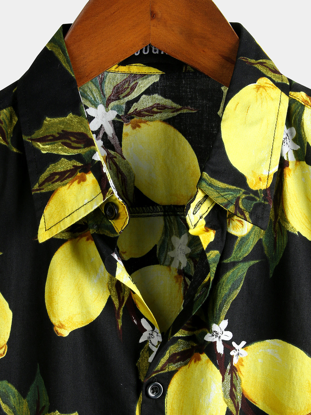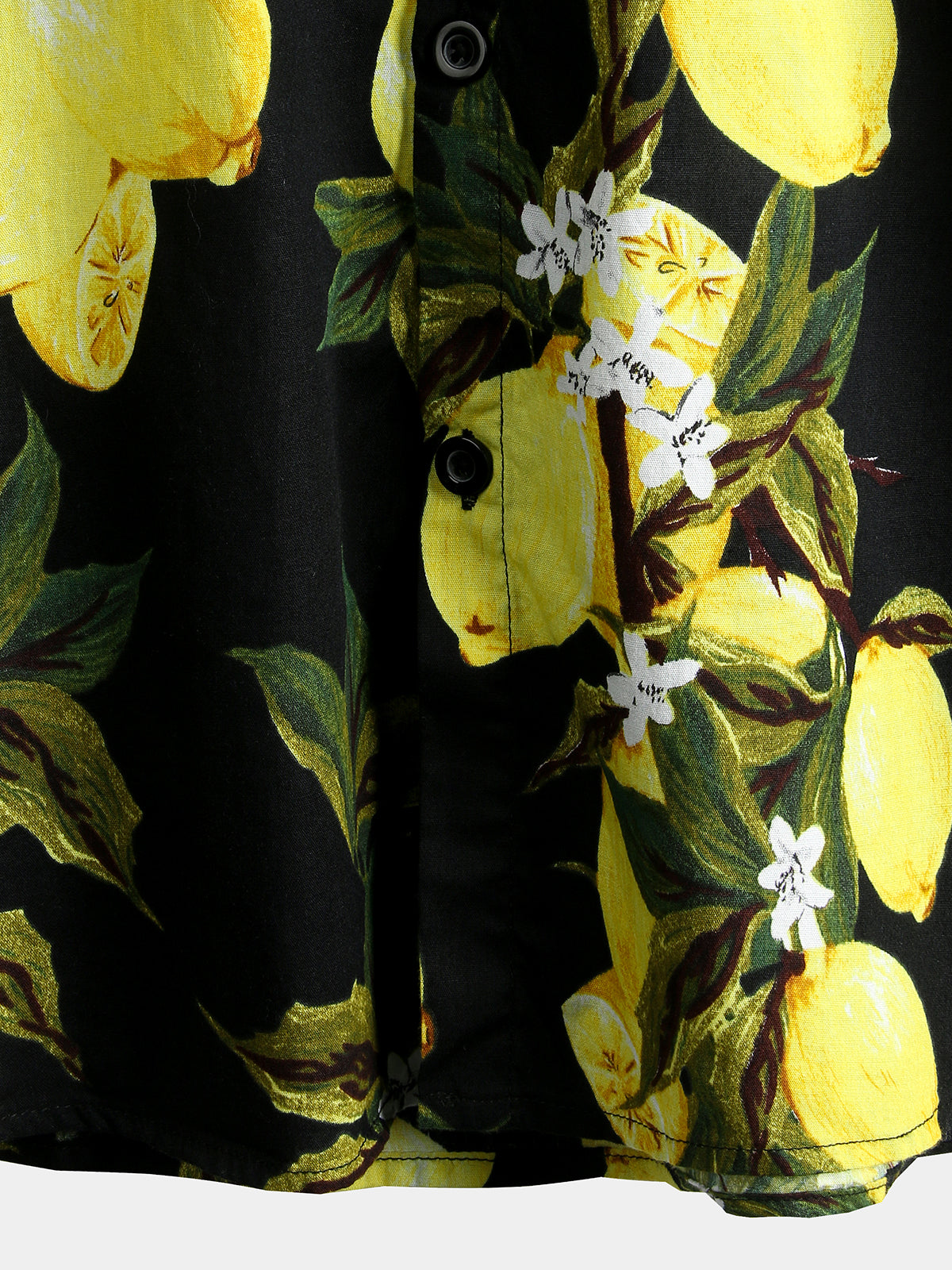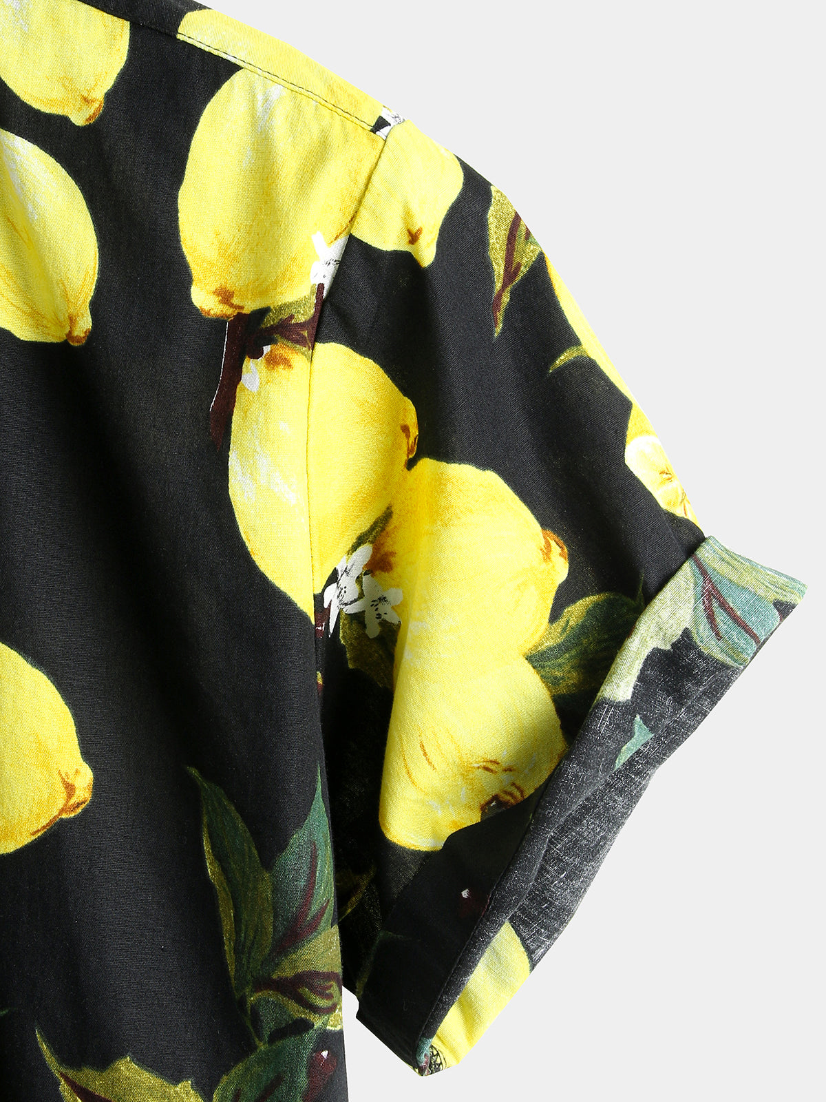Men's Tropical Yellow Lemon Print Hawaiian Short Sleeve Shirt