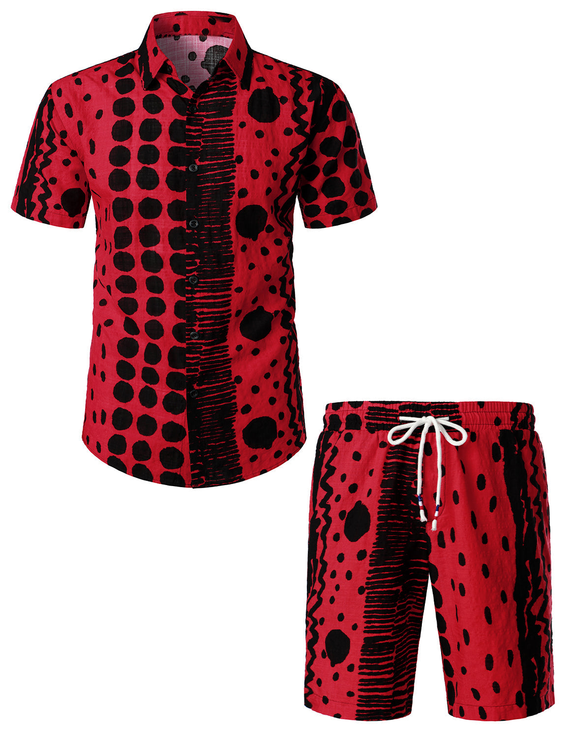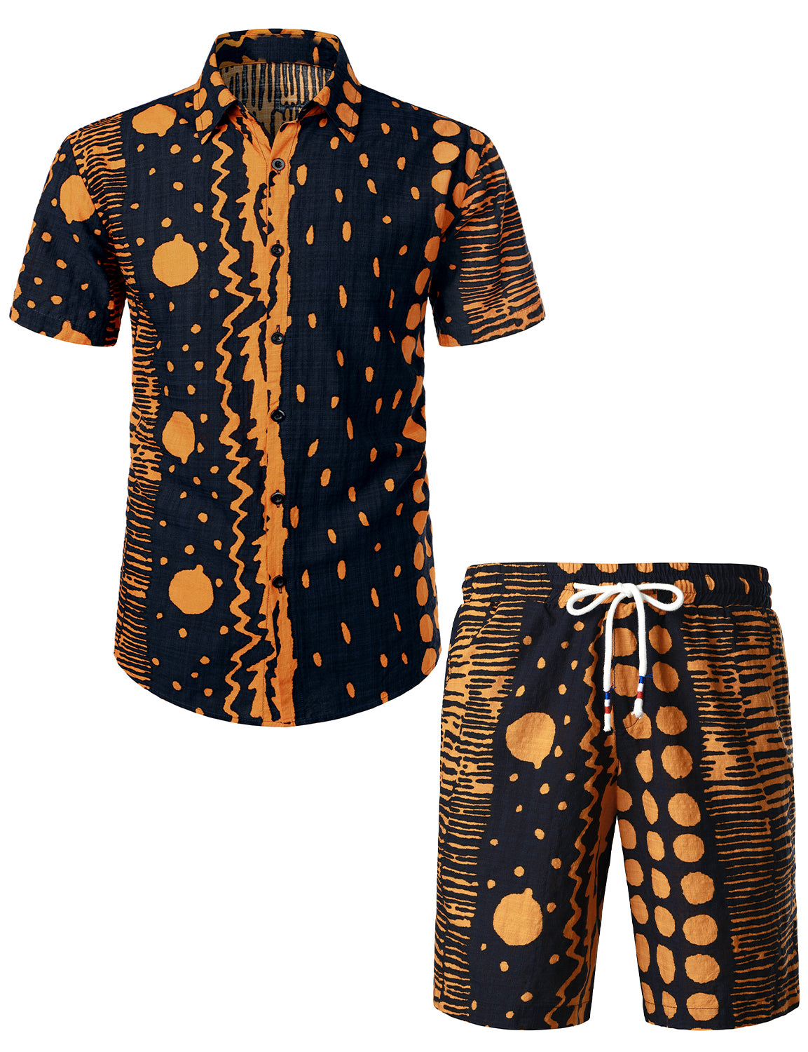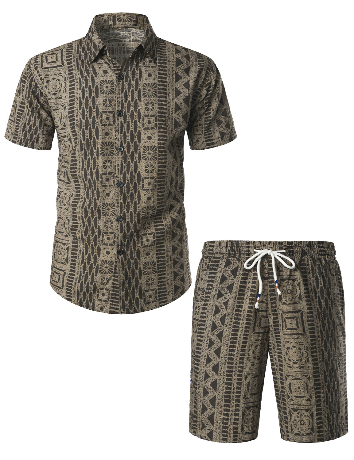 Men's Vintage Boho Short Sleeve Matching Shirt and Shorts Set