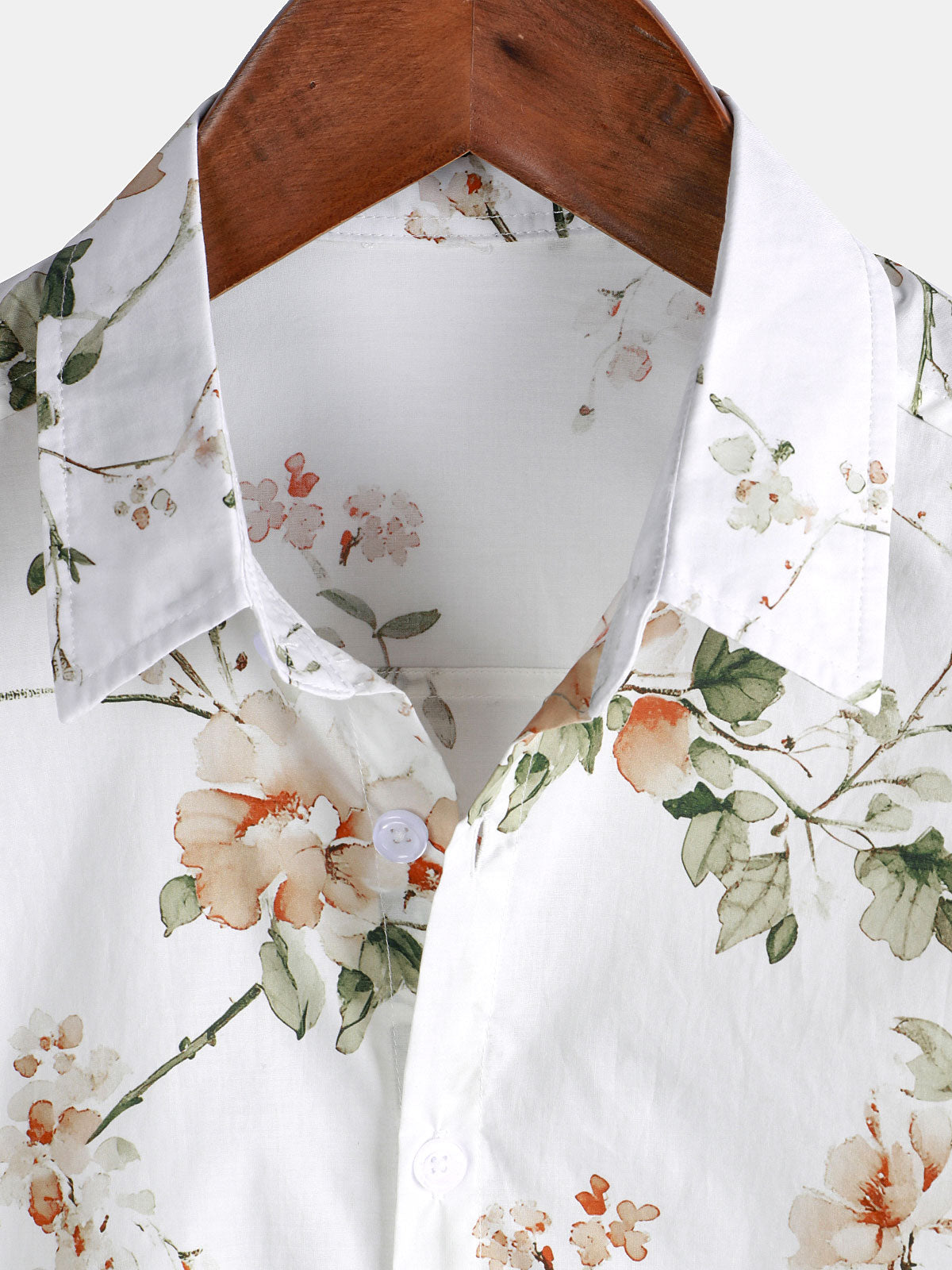 Men's Flower Print Cotton Hawaiian Floral Short Sleeve Shirt