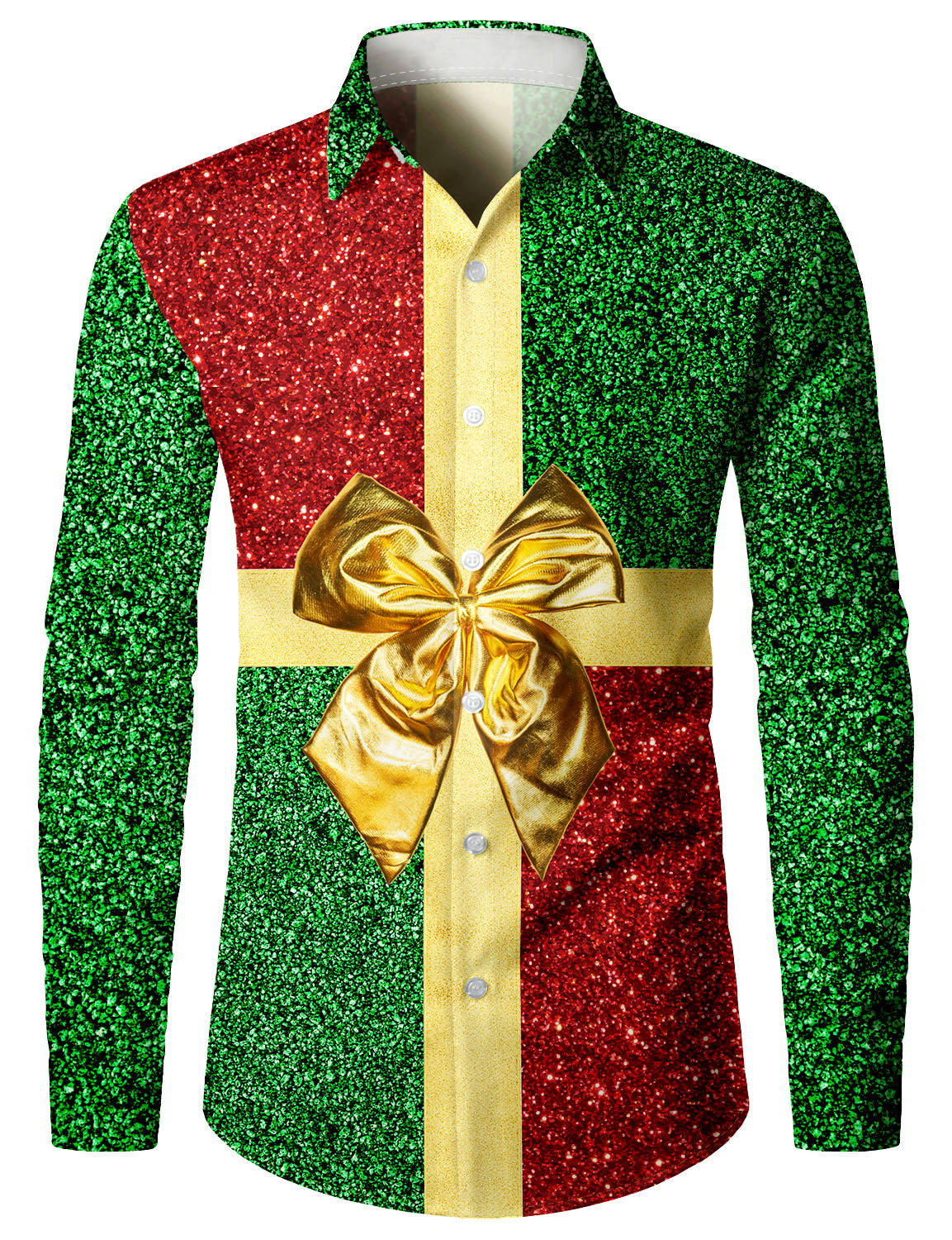 Men's Funny Christmas Gift Print Holiday Long Sleeve Shirt