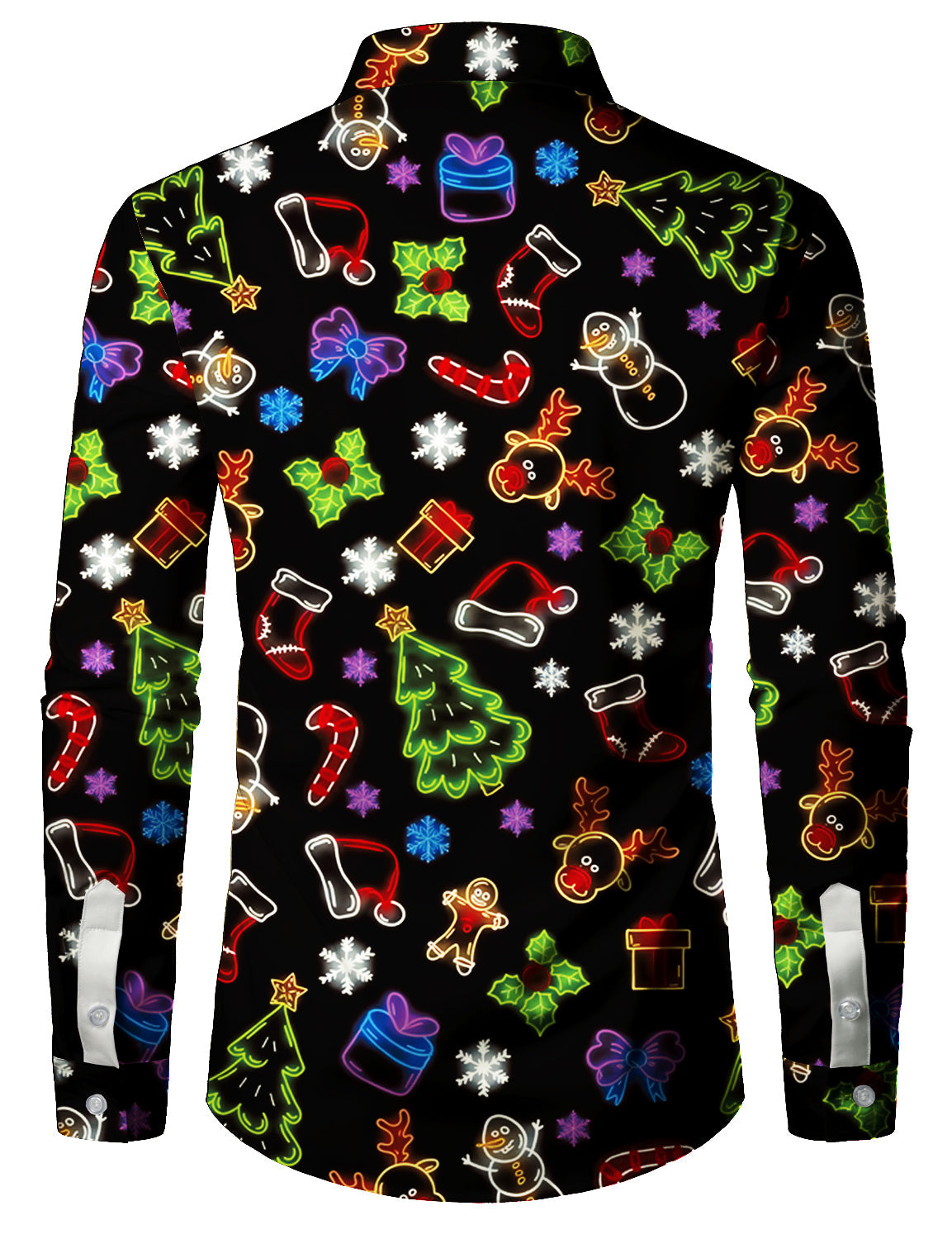 Men's Funny Neon Christmas Holiday Long Sleeve Shirt