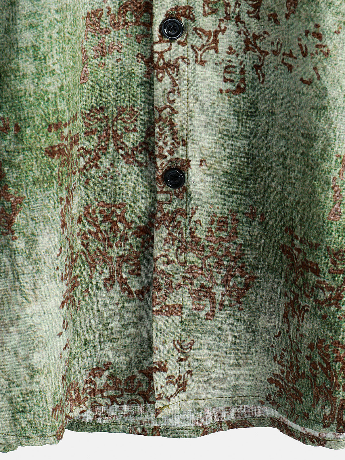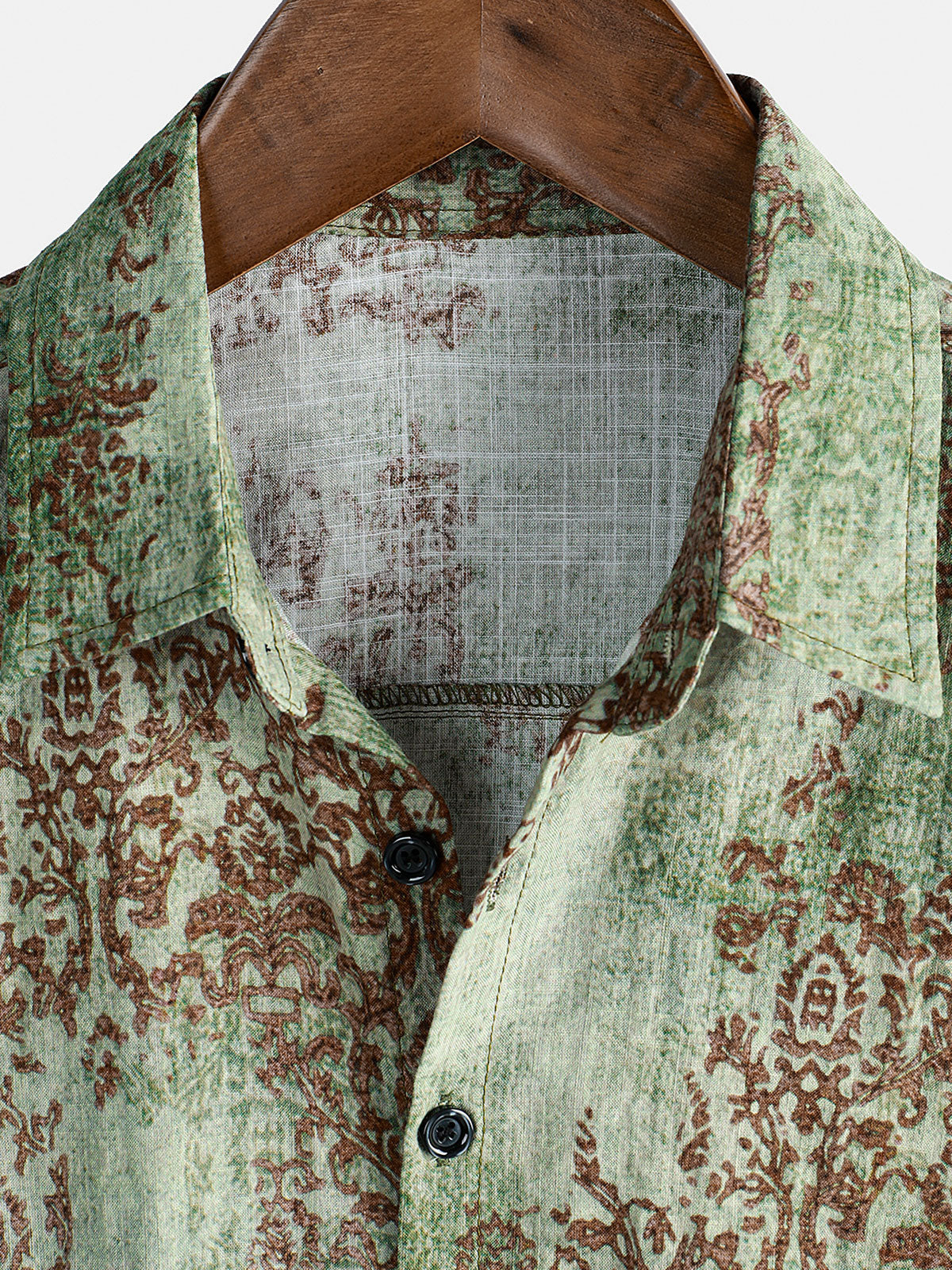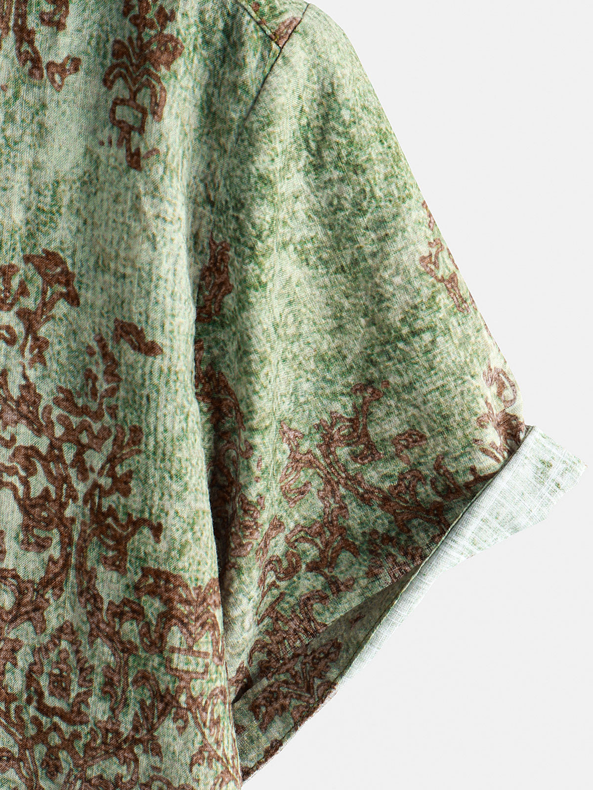 Men's Green Cotton Vintage Short Sleeve Summer Button Up Shirt