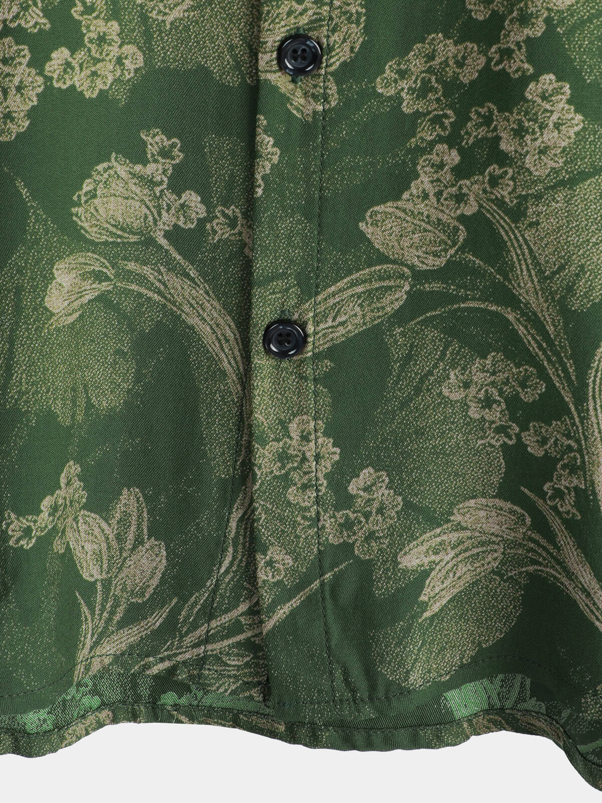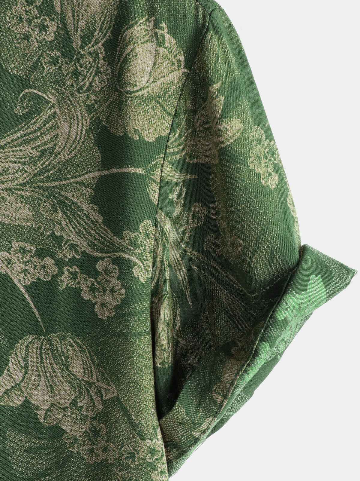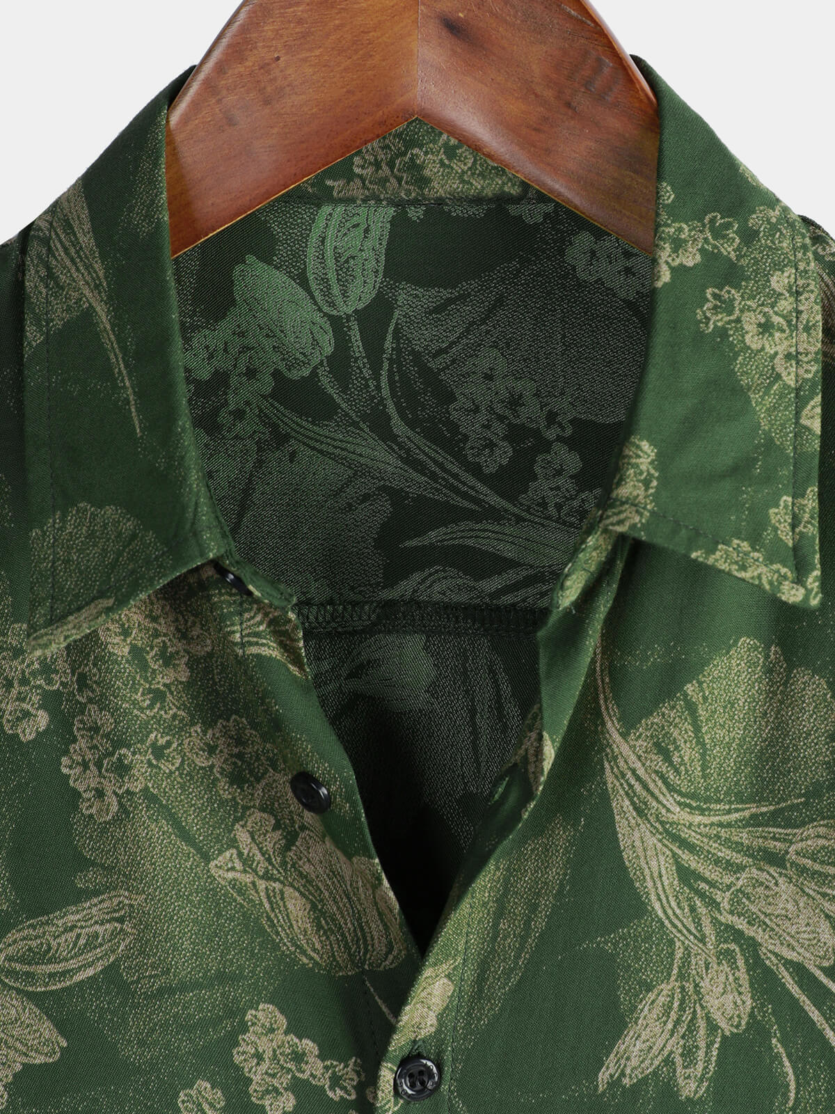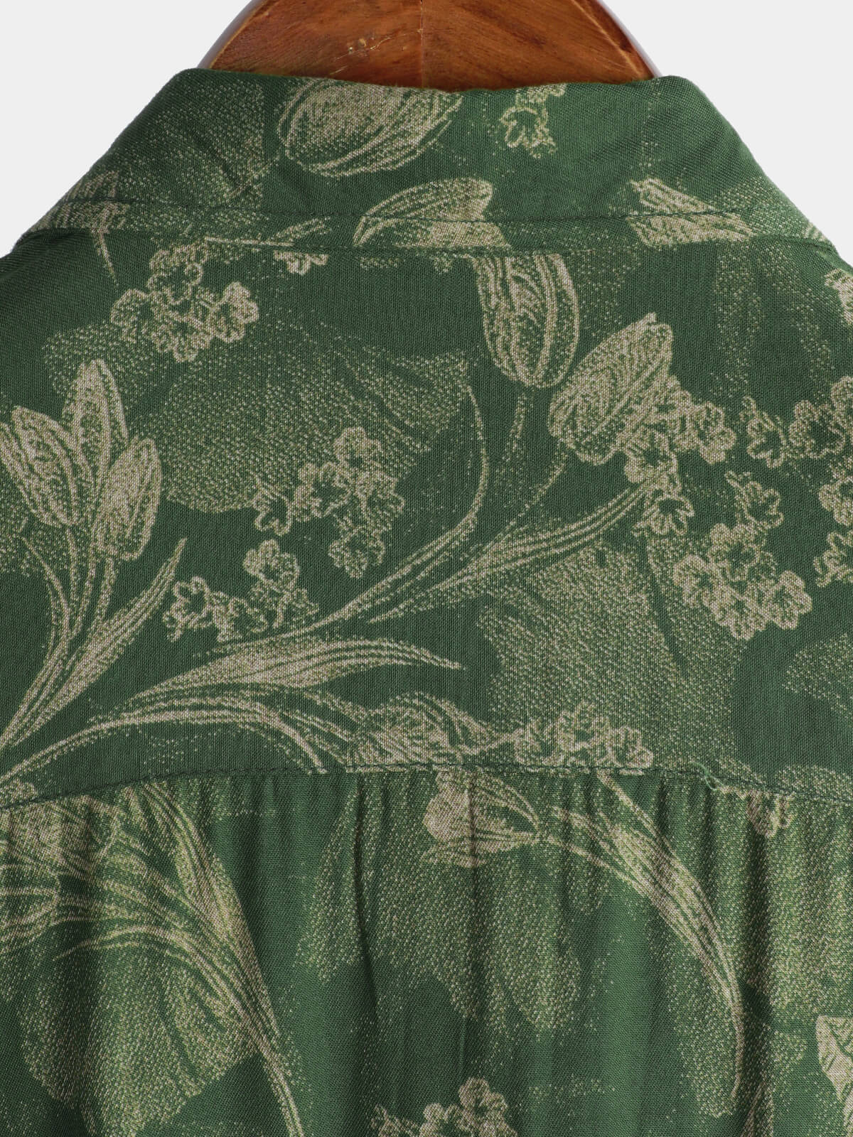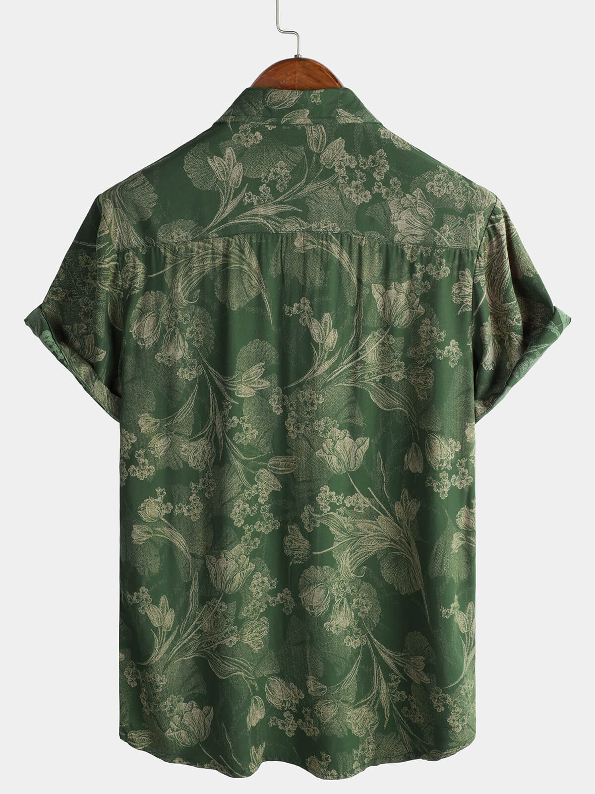 Men's Green Vintage Holiday Breathable Hawaiian Short Sleeve Shirt