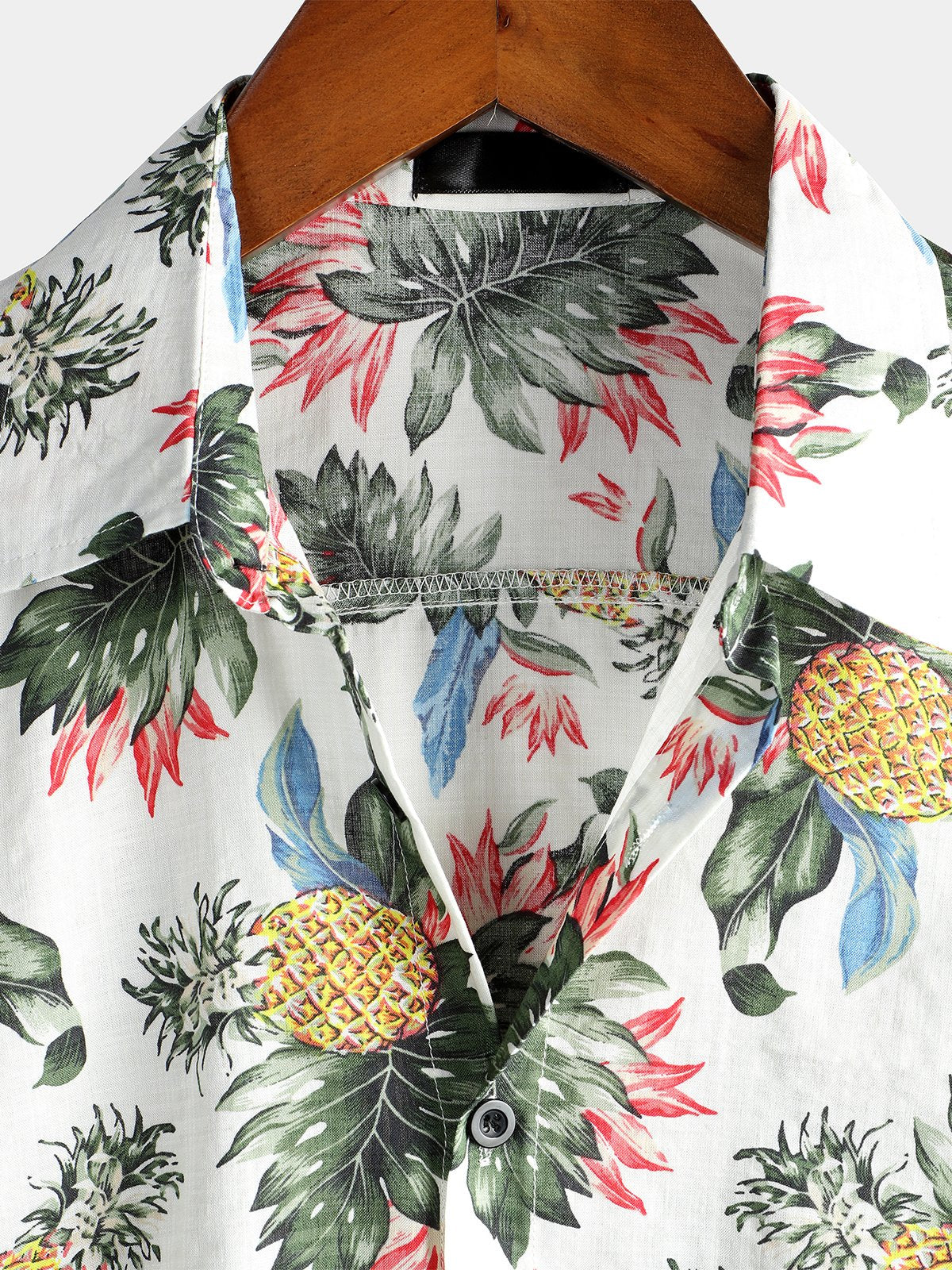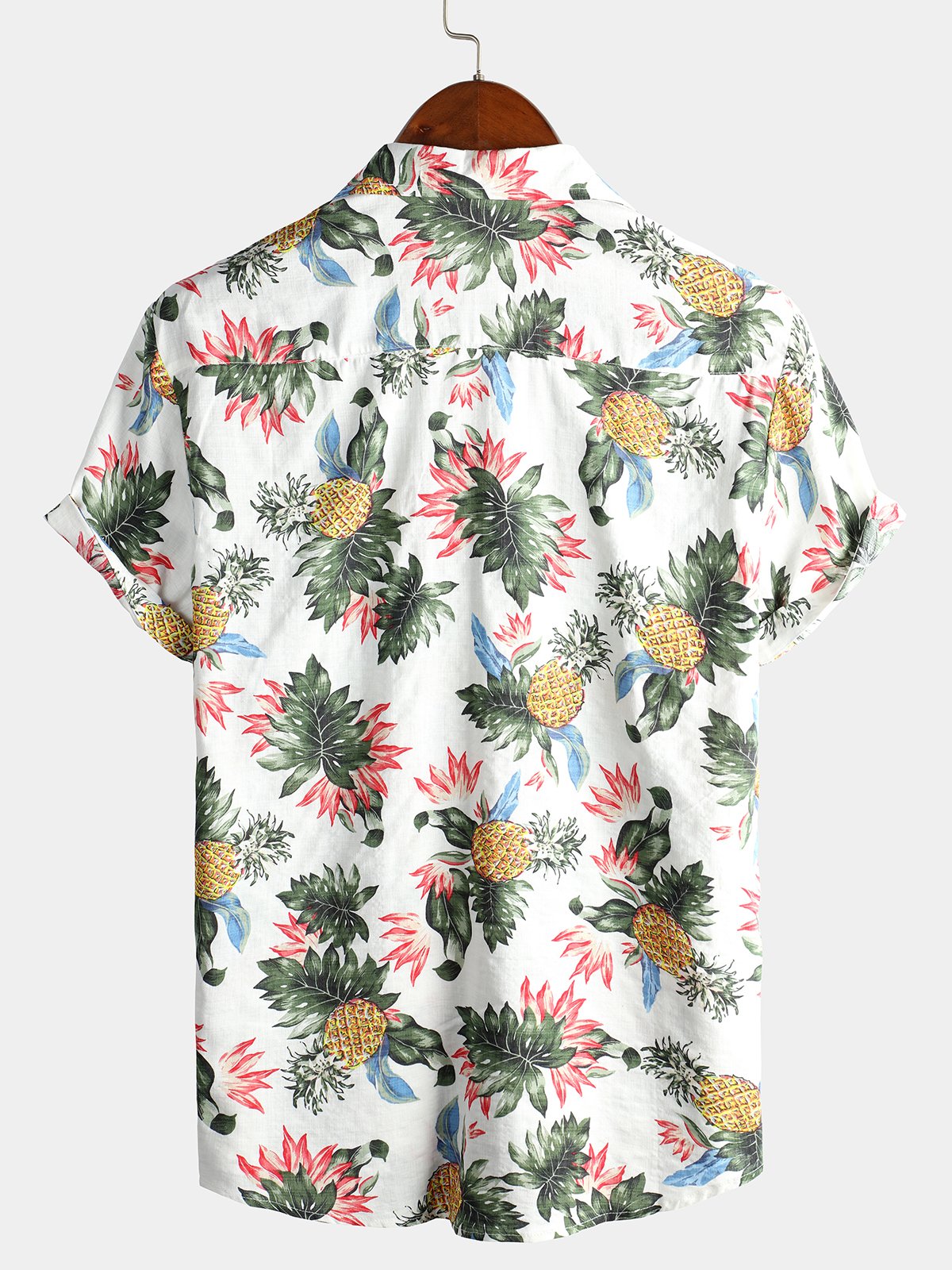 Men's Hawaii Pineapple Print Short Sleeve Cotton Shirt
