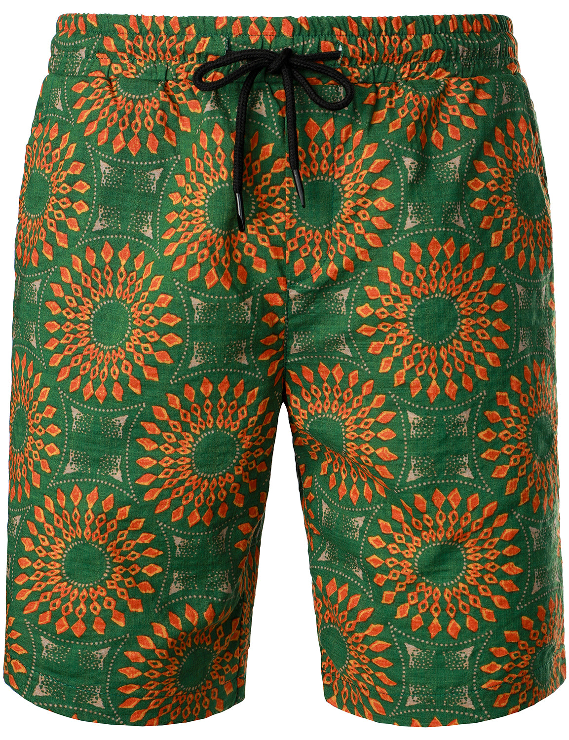 - Flat-front casual short with slanted side pockets and rear pockets ,mid rise, elastic waist and drawstring closure