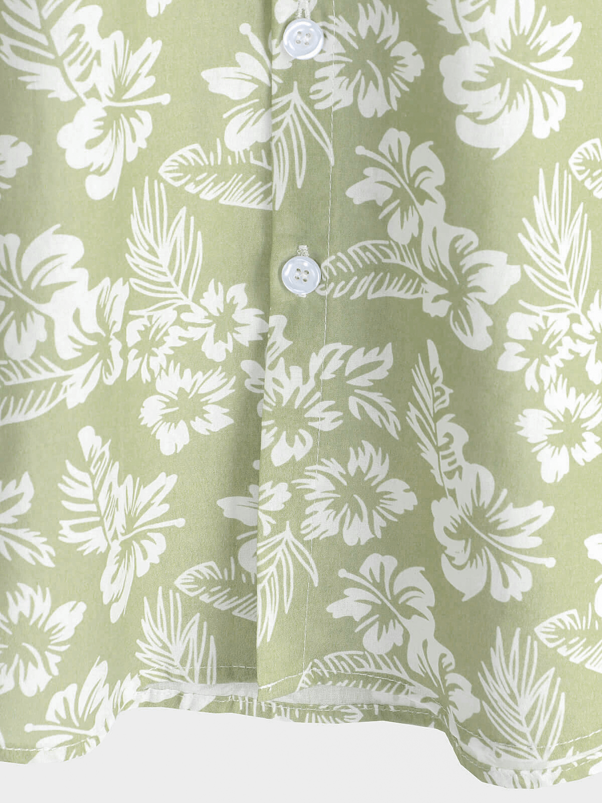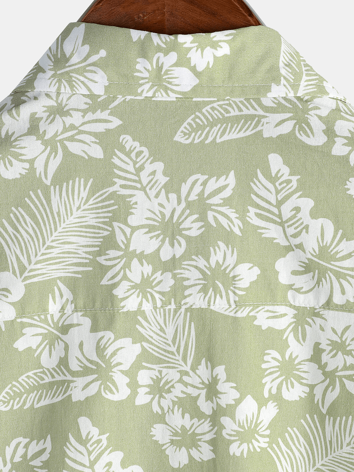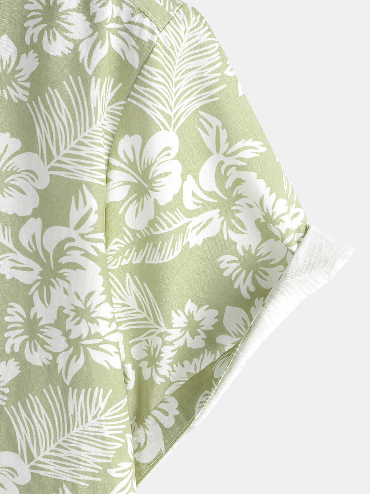 Men's Hawaiian Green Holiday Cotton Summer Floral Button Up Short Sleeve Shirt