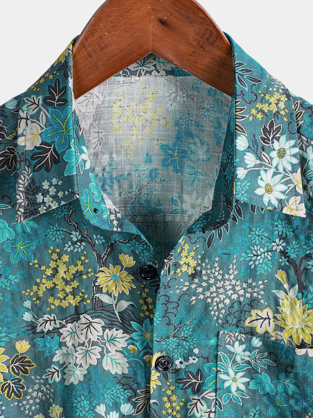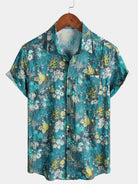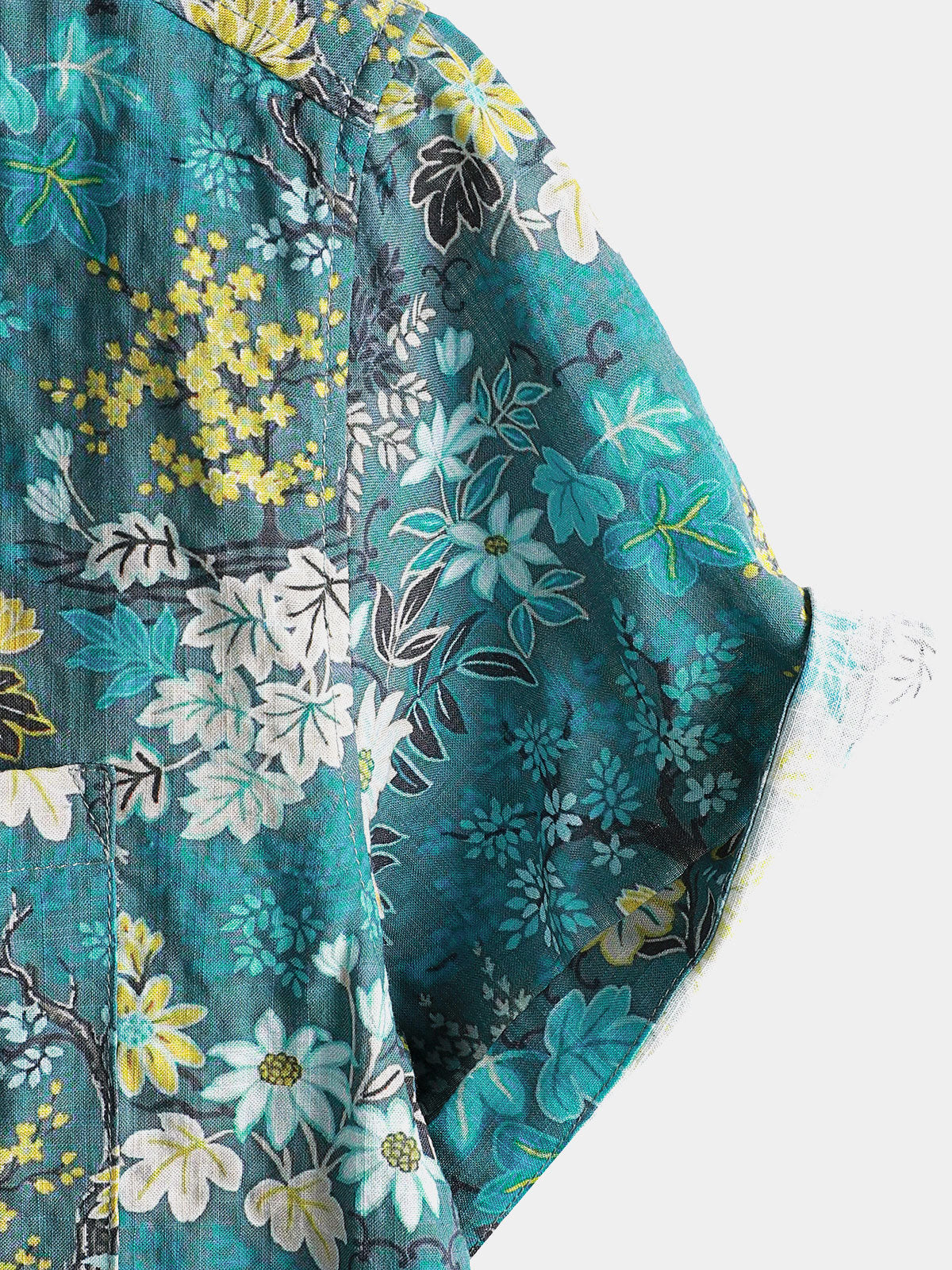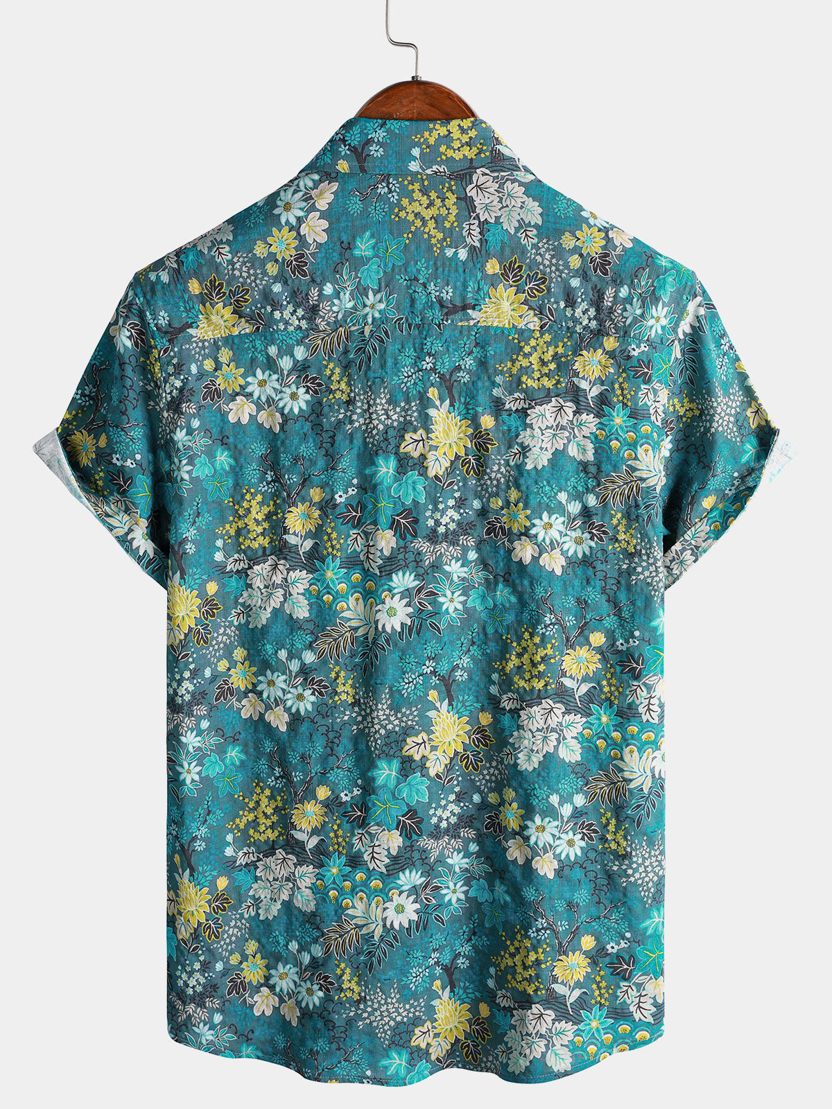 Men's Hawaiian Tropical White Yellow Floral Print Chest Pocket Short Sleeve Shirt