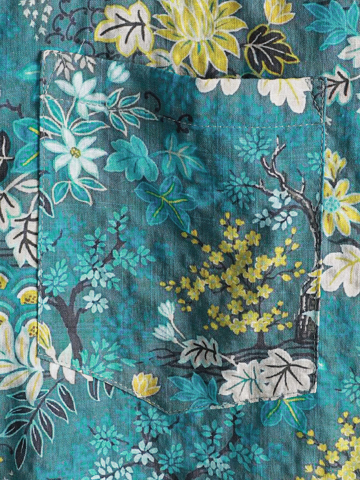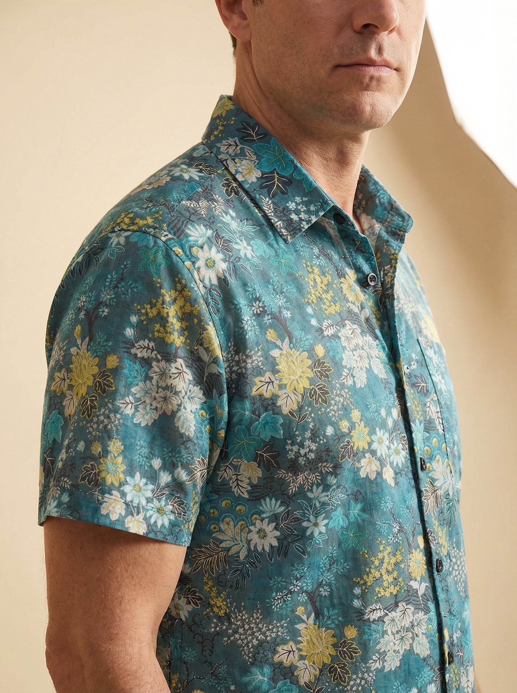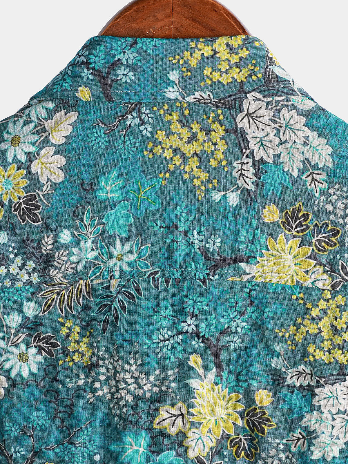 Men's Hawaiian Tropical White Yellow Floral Print Chest Pocket Short Sleeve Shirt