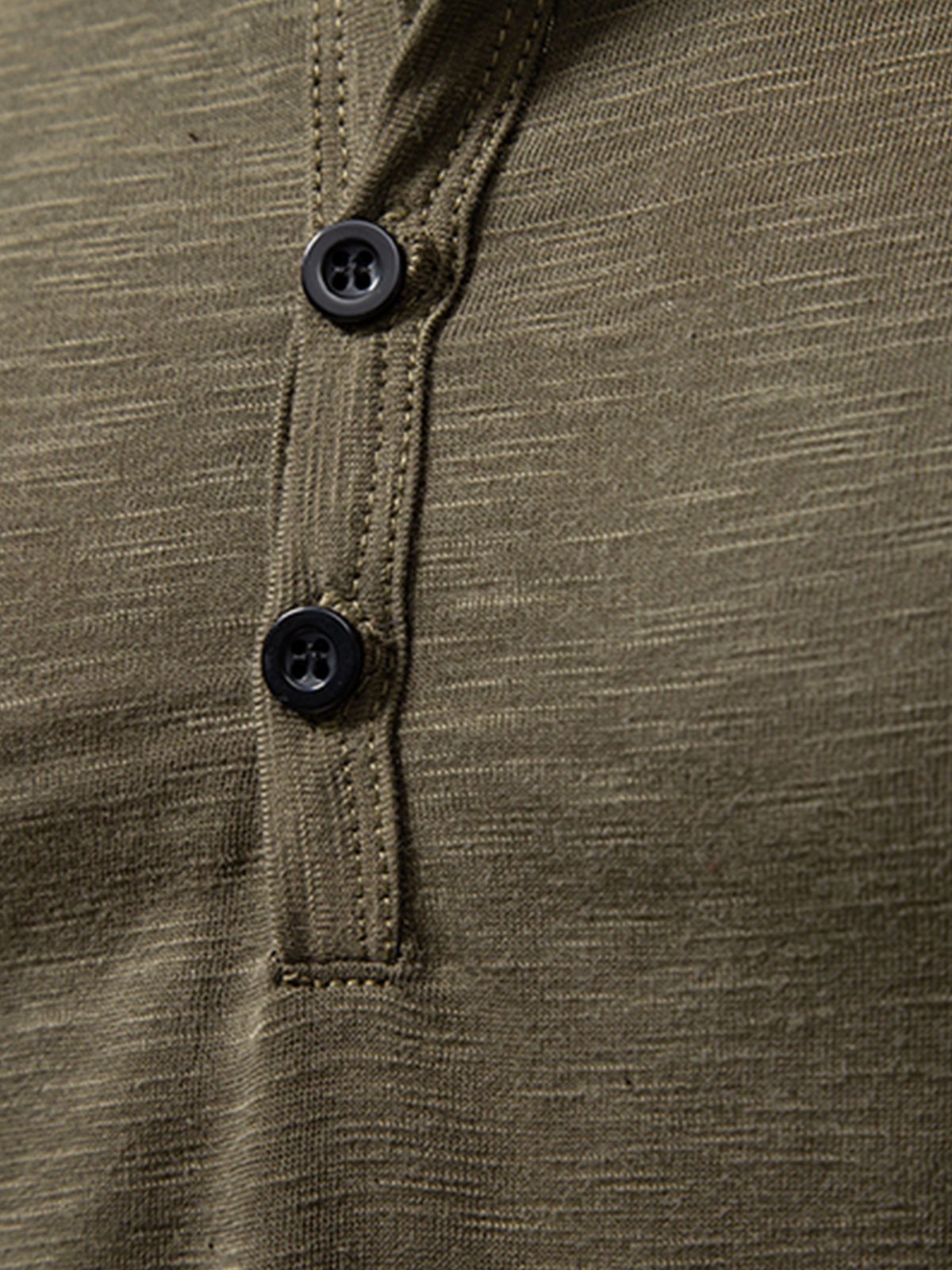 Men's Henley Collar Casual Tee Solid Color T-Shirt
