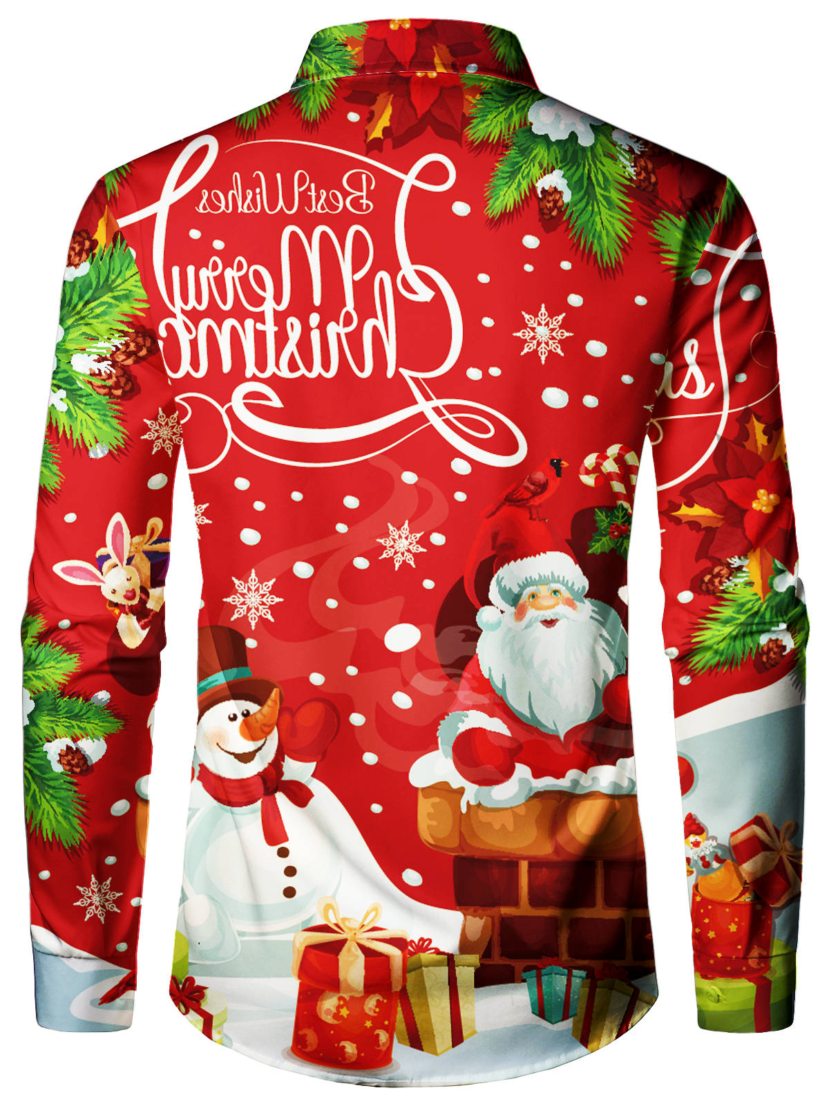Men's Merry Christmas Santa Print Holiday Party Button Up Long Sleeve Shirt