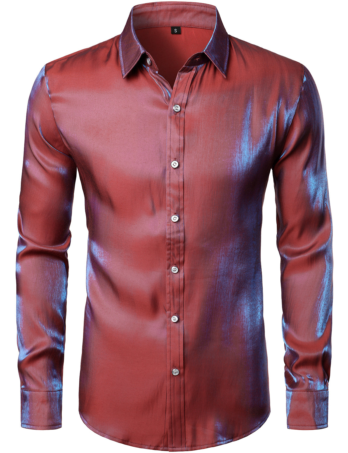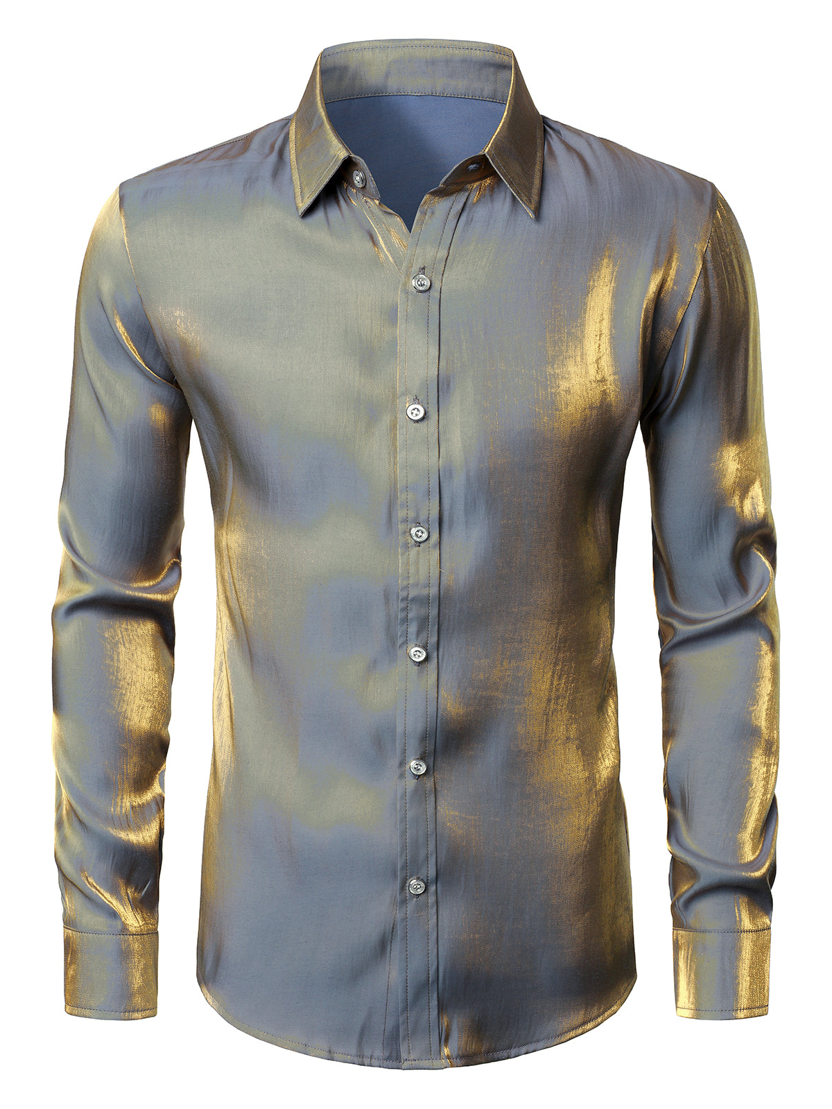 Mens Metallic Shiny Nightclub Styles Long Sleeve Button Down Dress Shirts