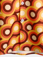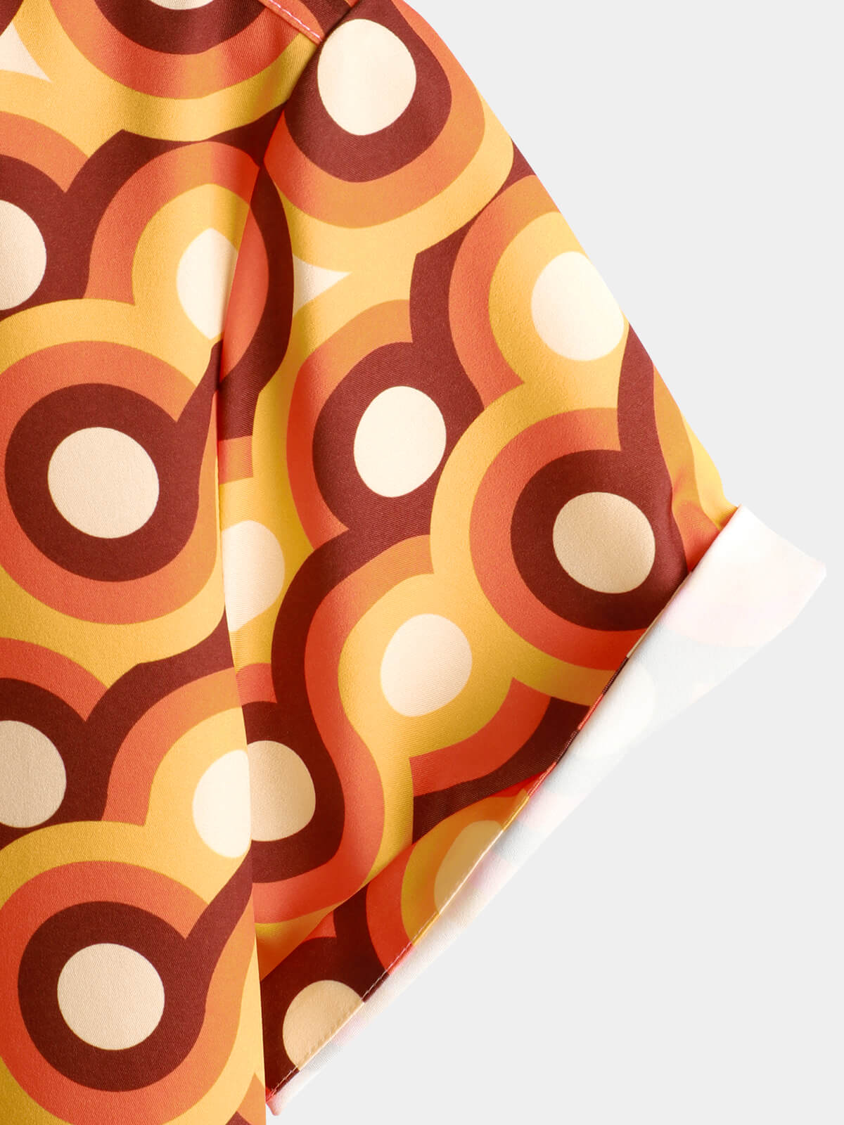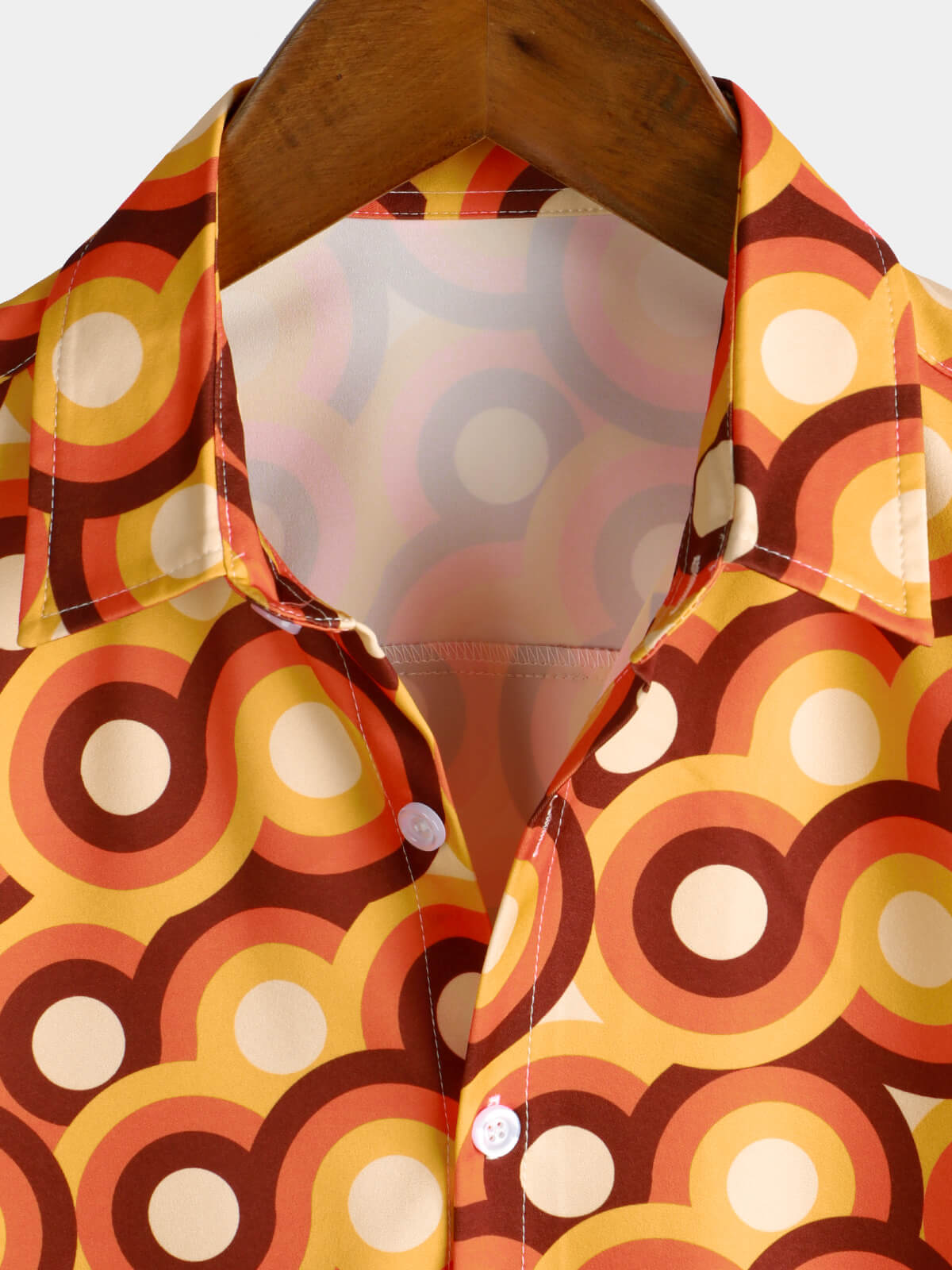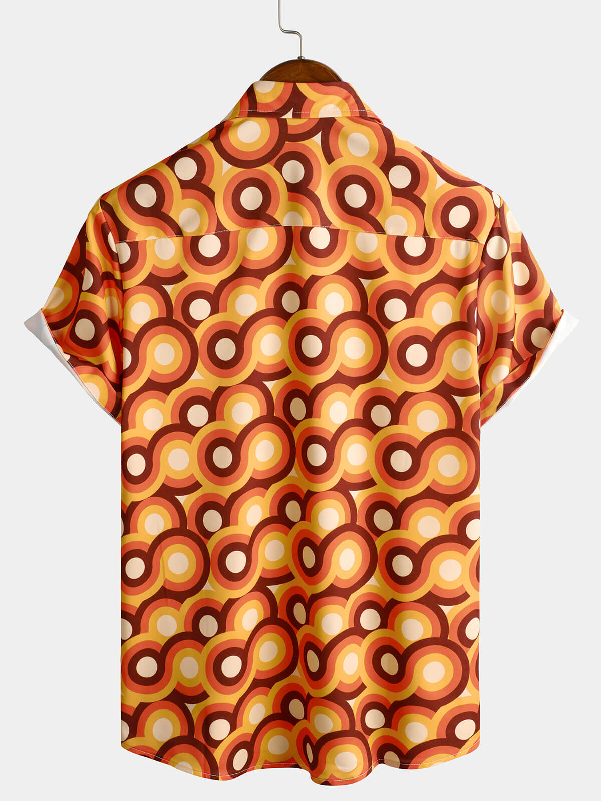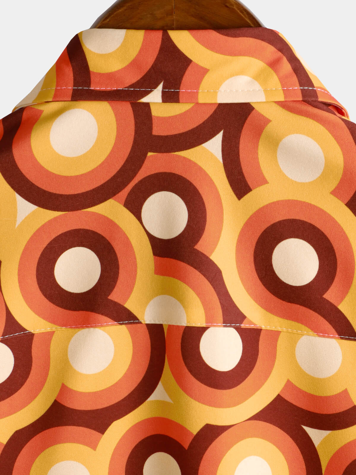 Men's Orange 70s Retro Button Up Vintage Geometric Circle Summer Beach Short Sleeve Shirt