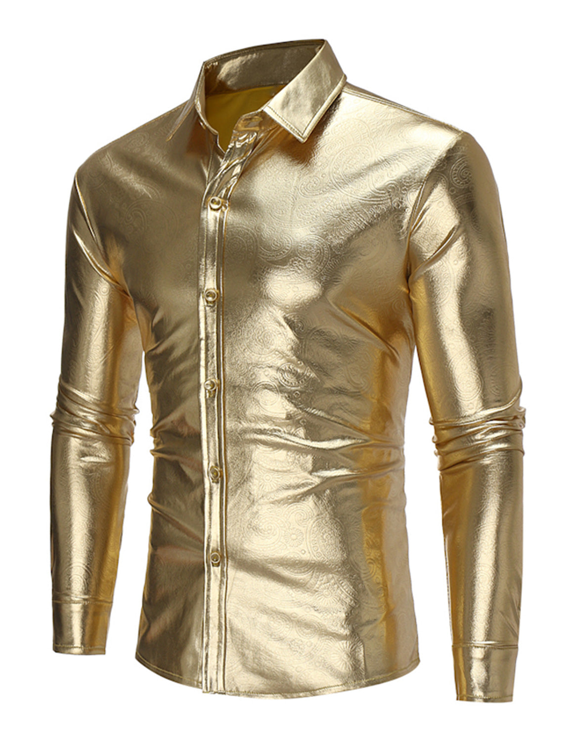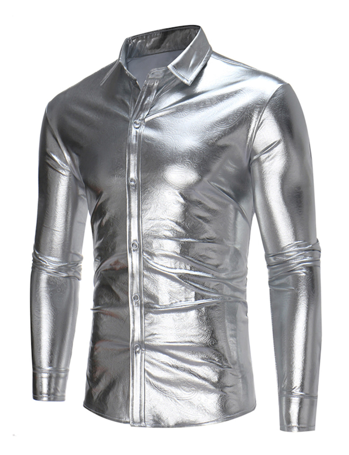 Men's Party Nightclub Button Up Cool Leather Long Sleeve Shirt
