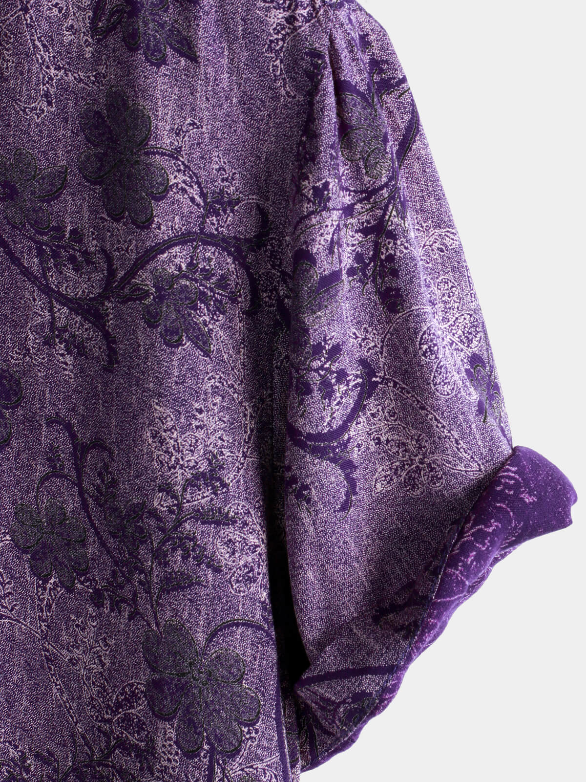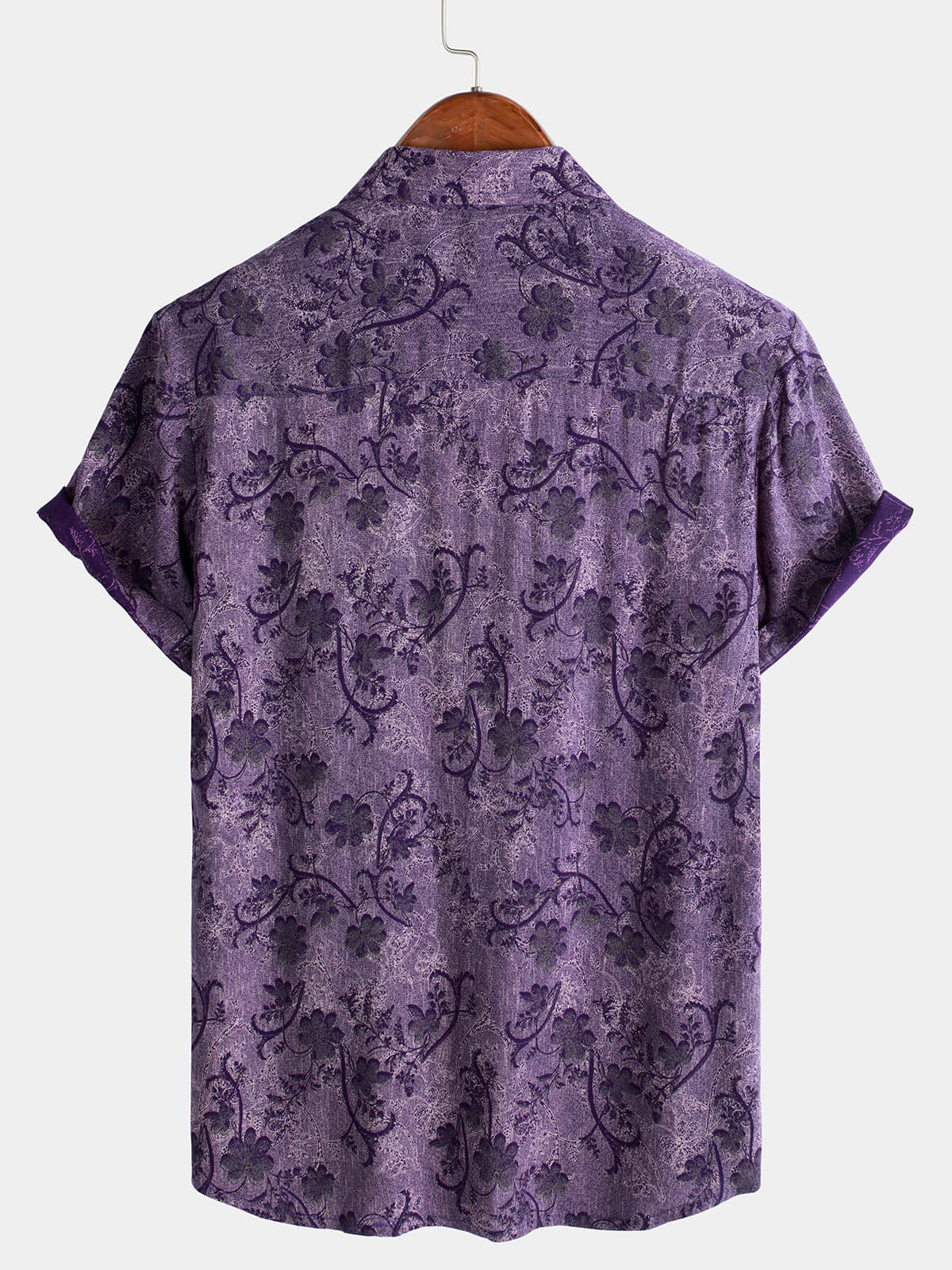 Men's Purple Vintage Holiday Breathable Hawaiian Short Sleeve Shirt