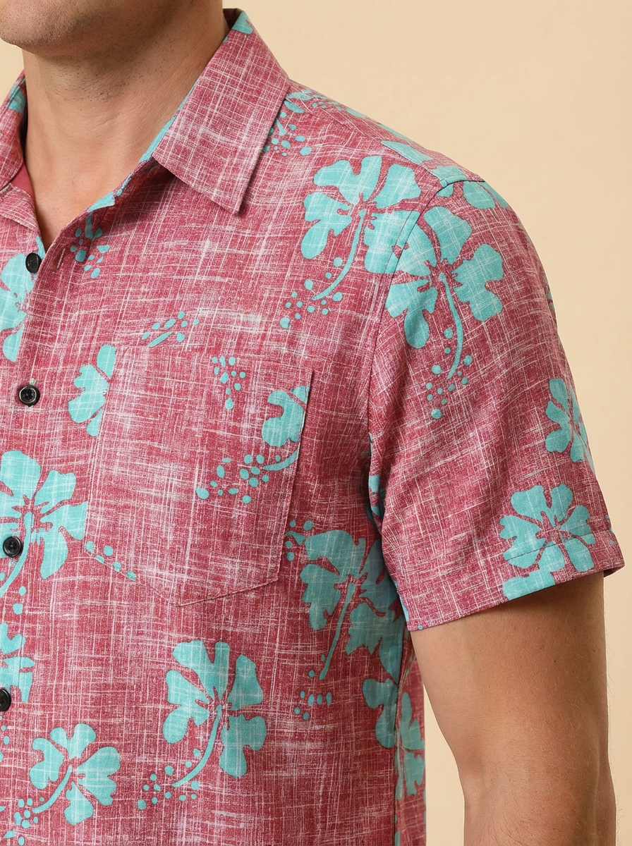 Men's Red Floral Vintage Short Sleeve Button Up Beach Tropical Hawaiian Shirt