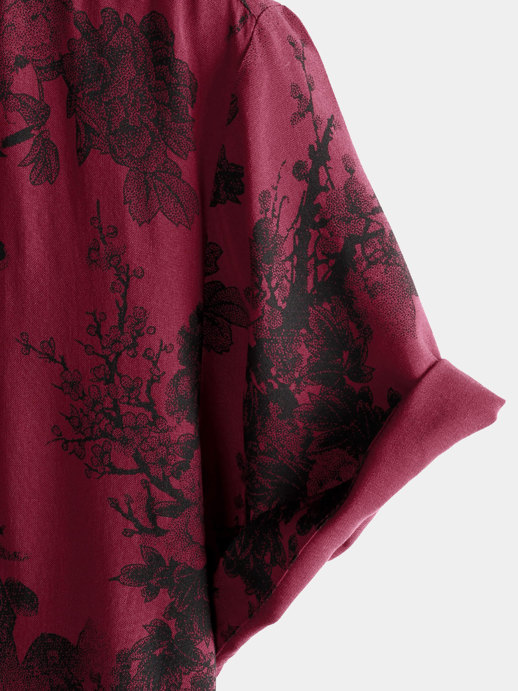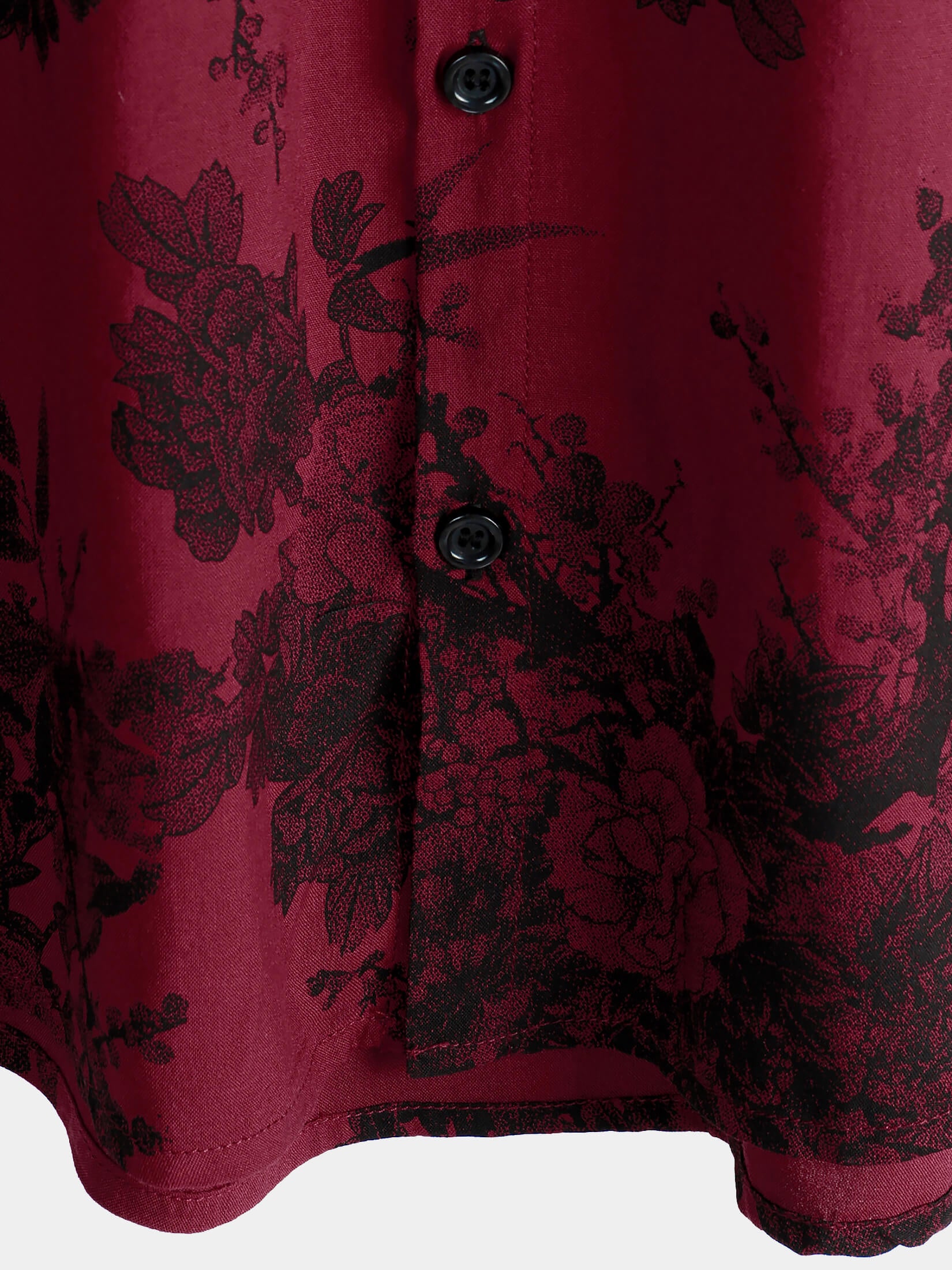 Men's Red Vintage Floral Summer Holiday Hawaiian Breathable Button Up Short Sleeve Shirt