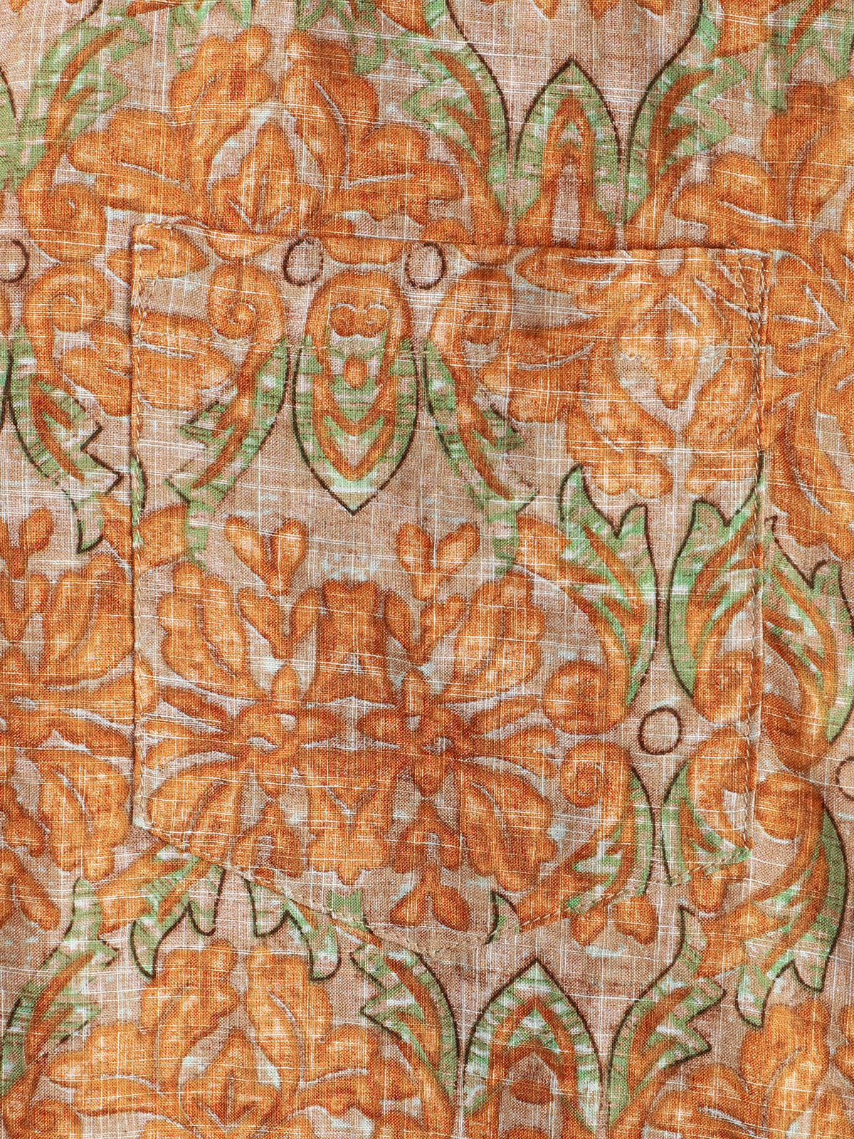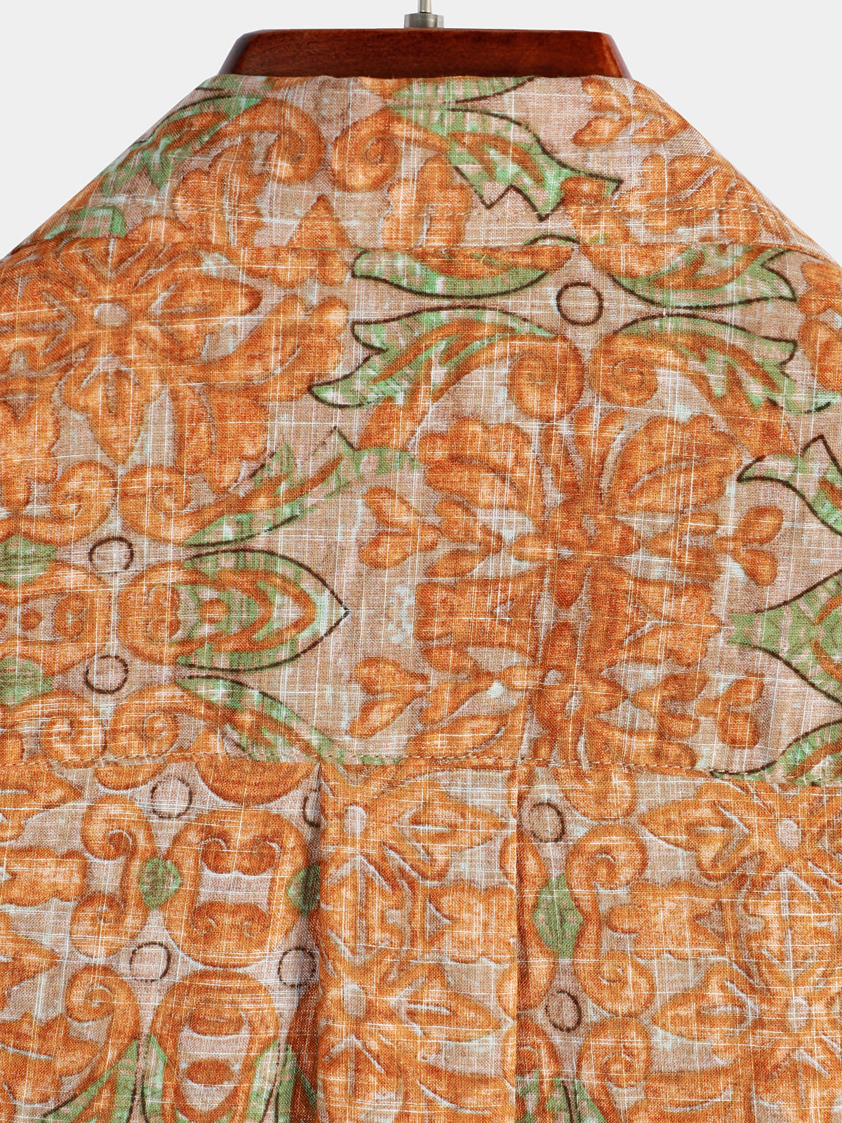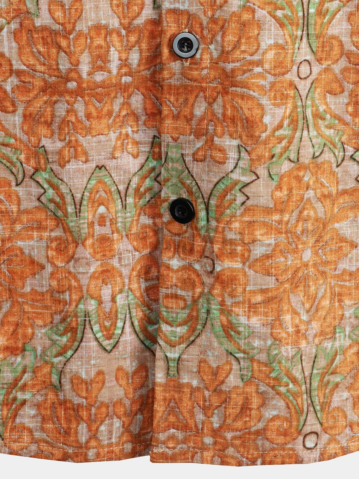 Men's Retro Casual Button Up Pocket Beach Vintage Orange Short Sleeve Shirt