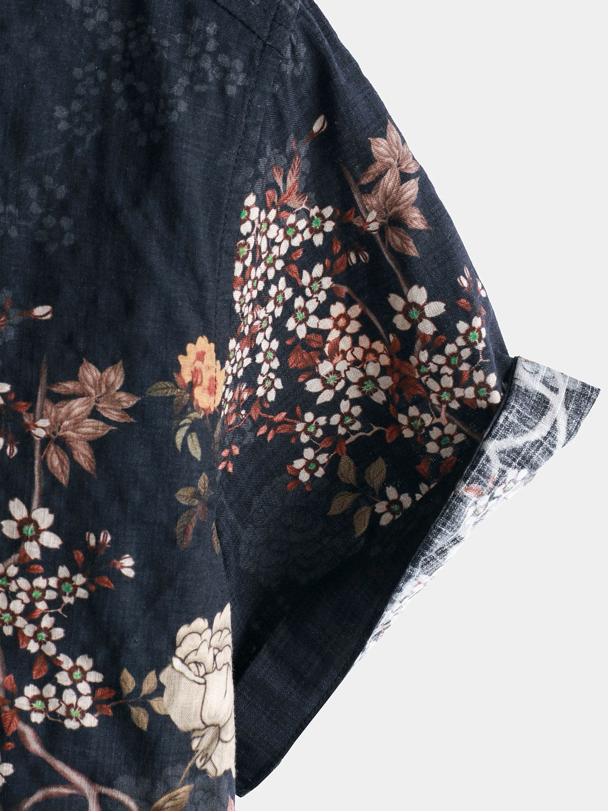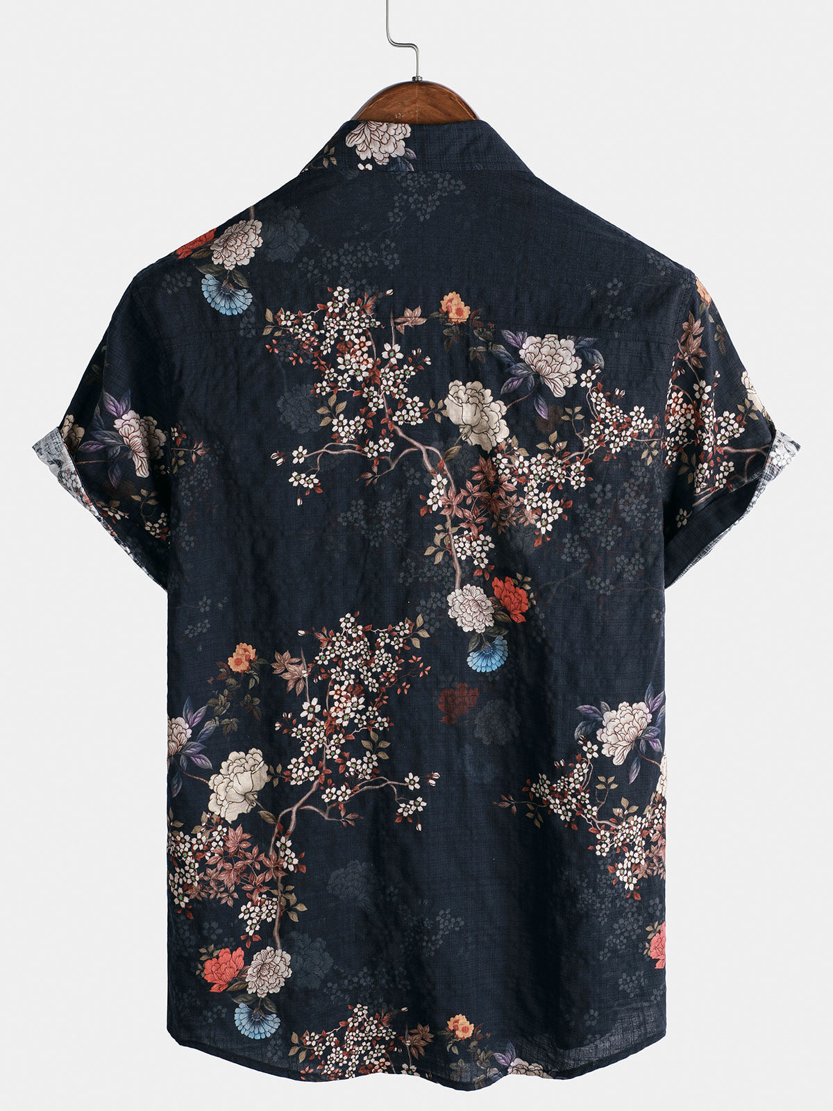 Men's Retro Floral Vacation Button Up Short Sleeve Shirt