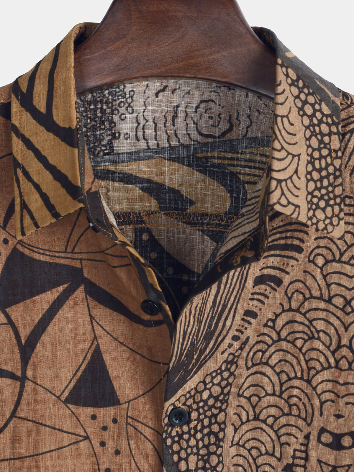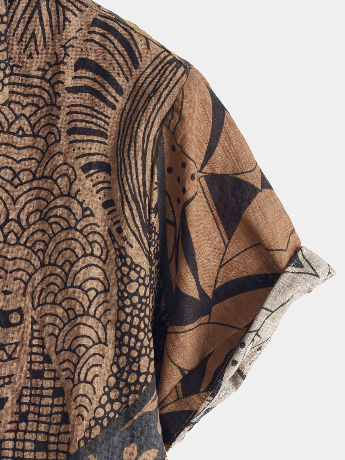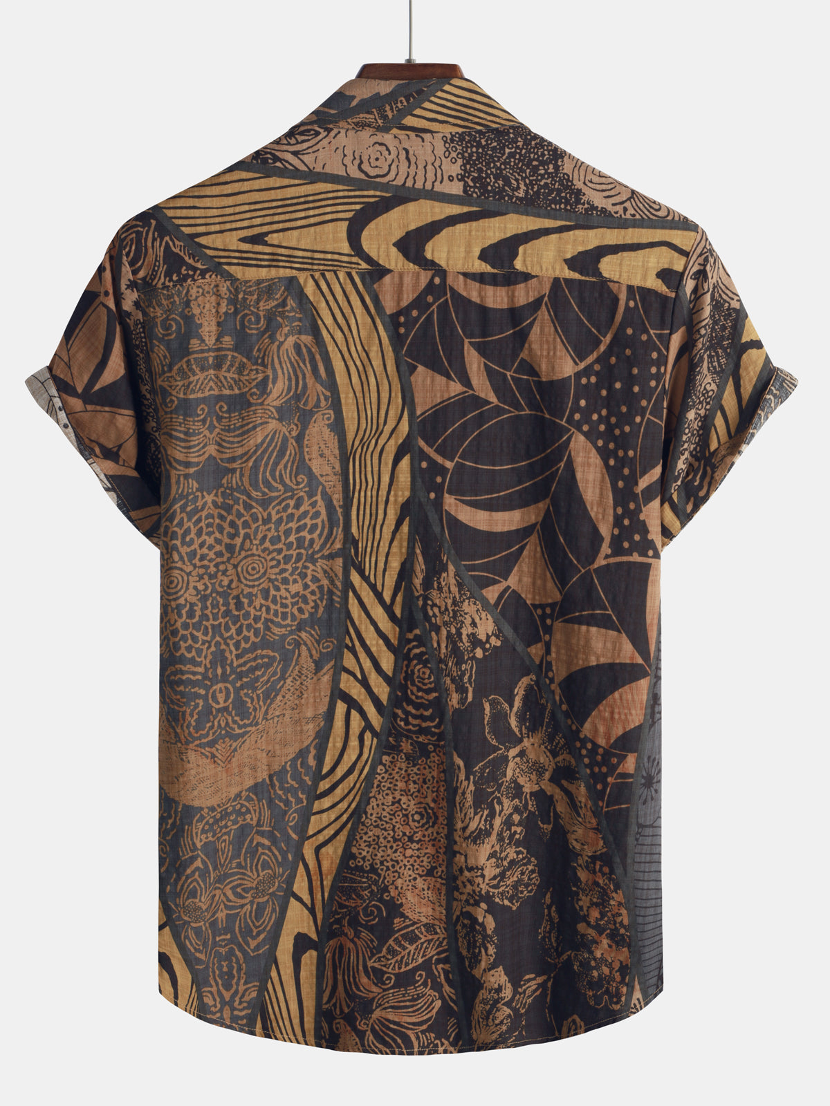 Men's Retro Holiday Summer Vintage Button Up Vacation Beach Short Sleeve Shirt