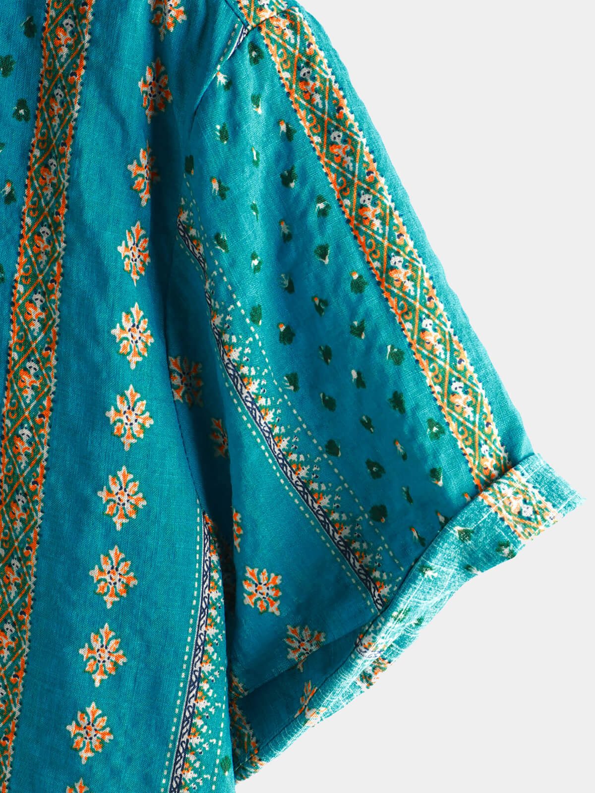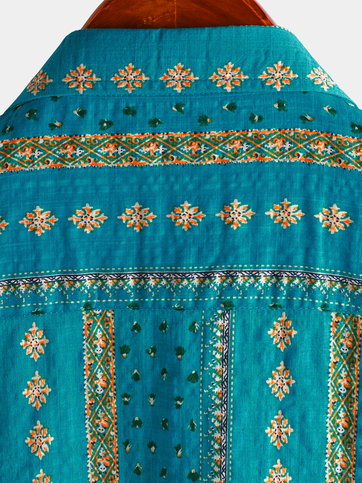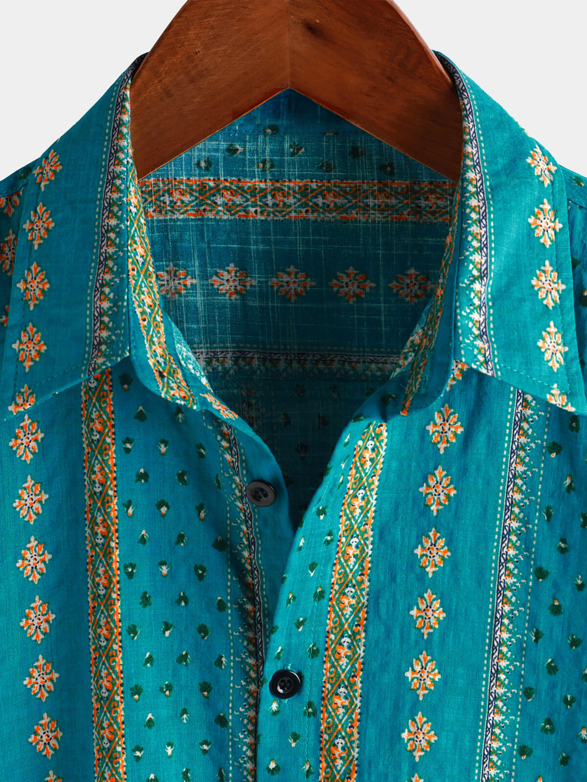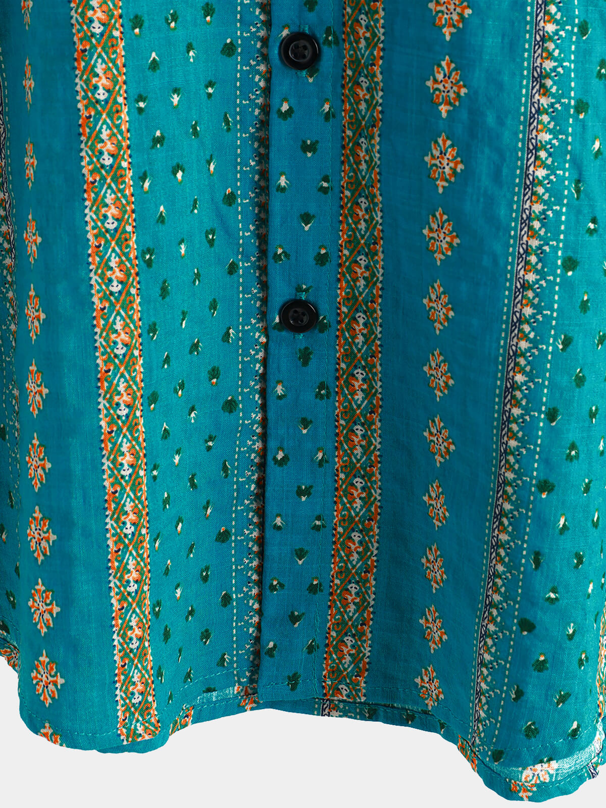 Men's Retro Striped Print Button Up 70s Vintage Short Sleeve Shirt