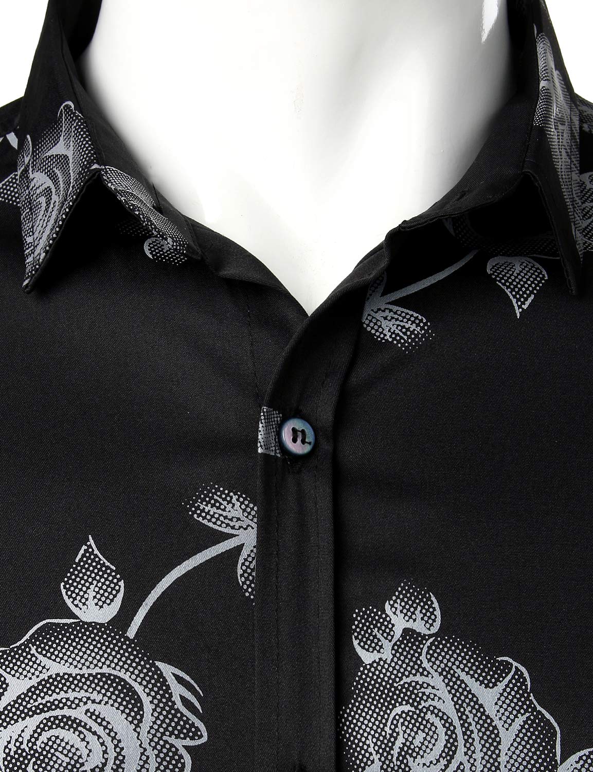 Men's Rose Floral Print Button Up Casual Long Sleeve Dress Shirt