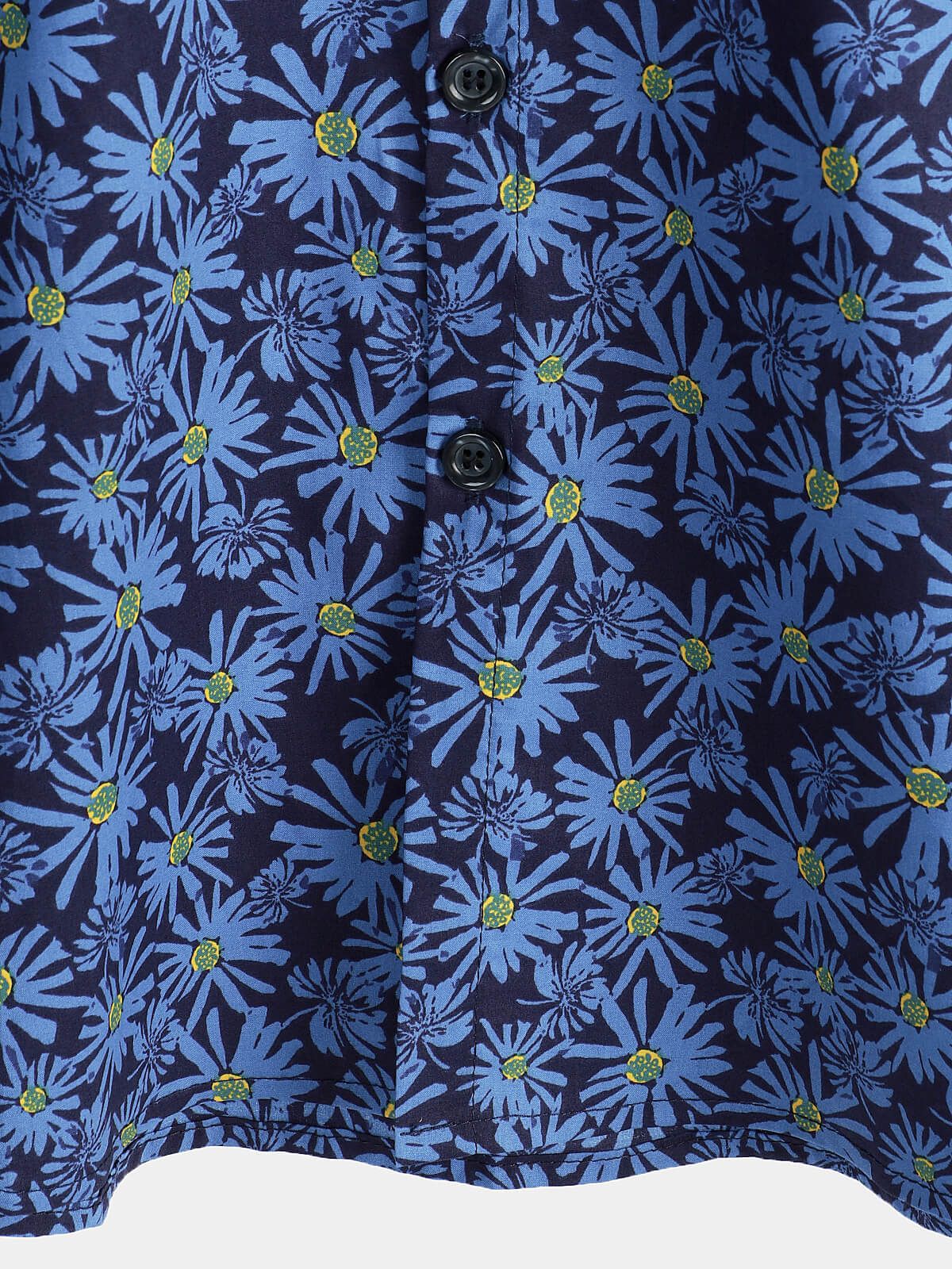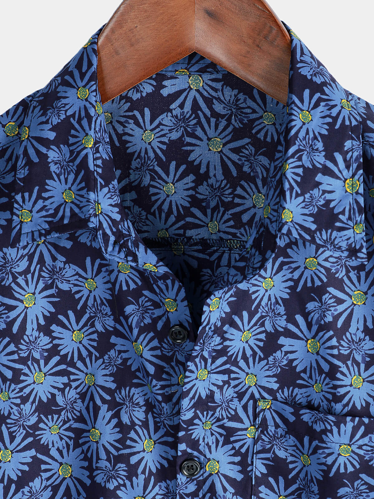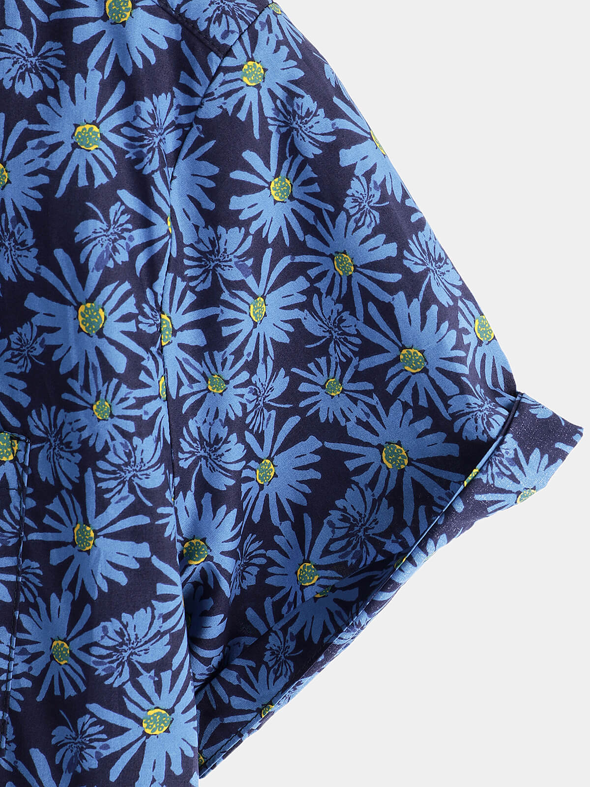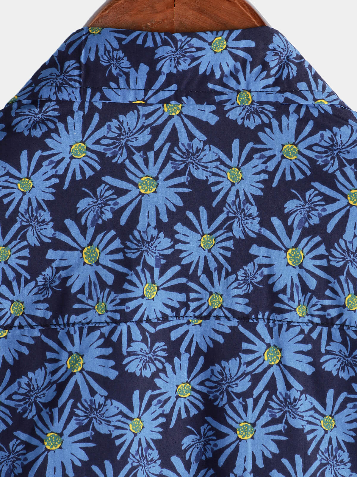 Men's Short Sleeve Floral Daisy Pocket Button Up Cotton Beach Shirt
