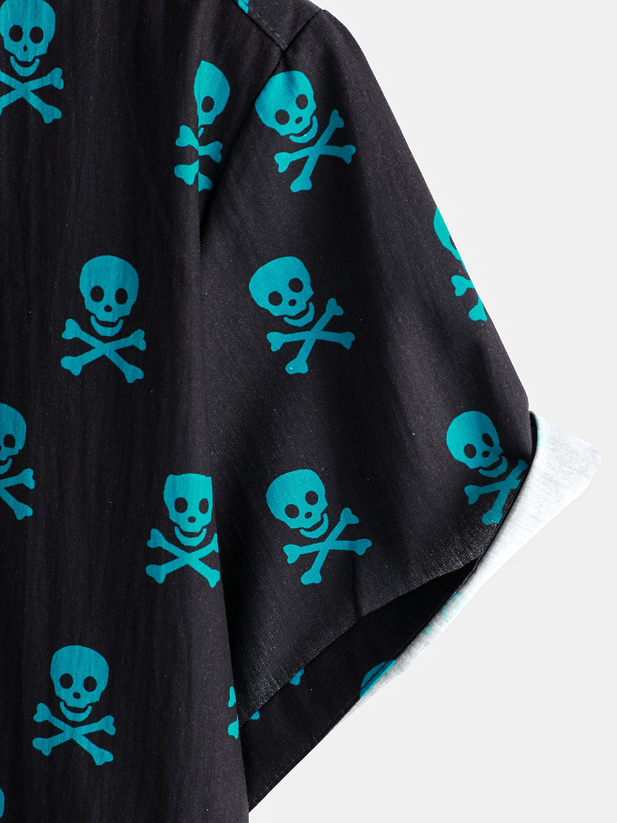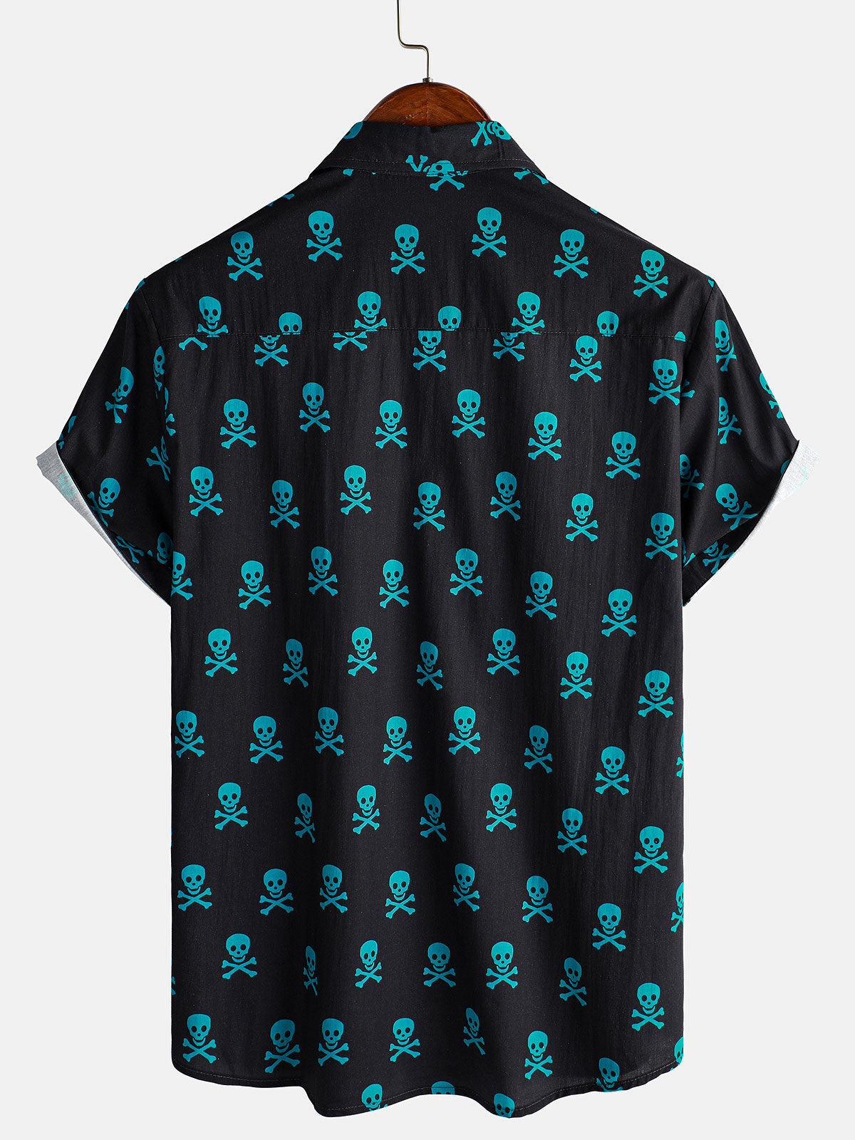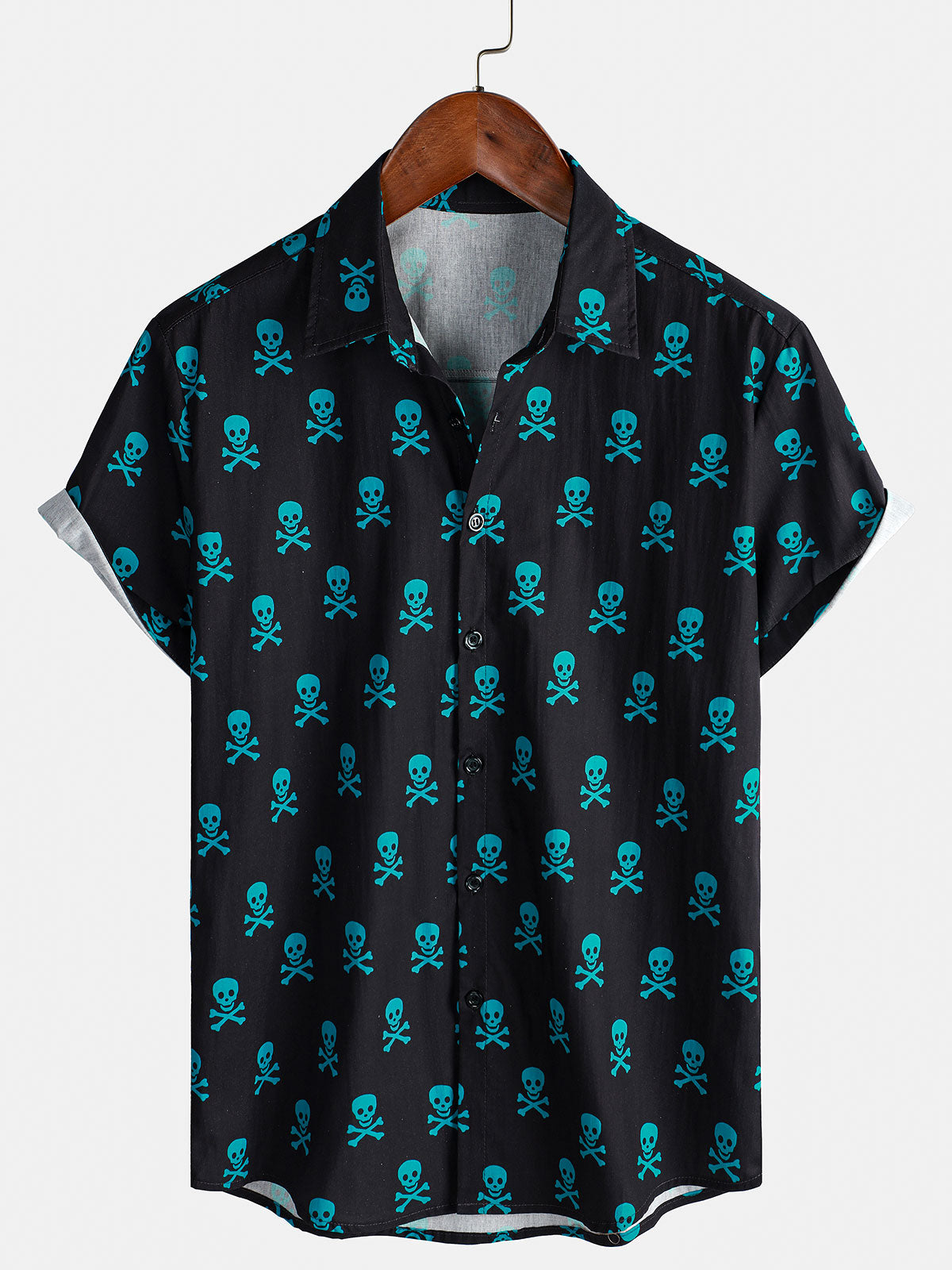 Men's Skull Punk Rock Holiday Beach Cotton Breathable Cool Summer Short Sleeve Shirt