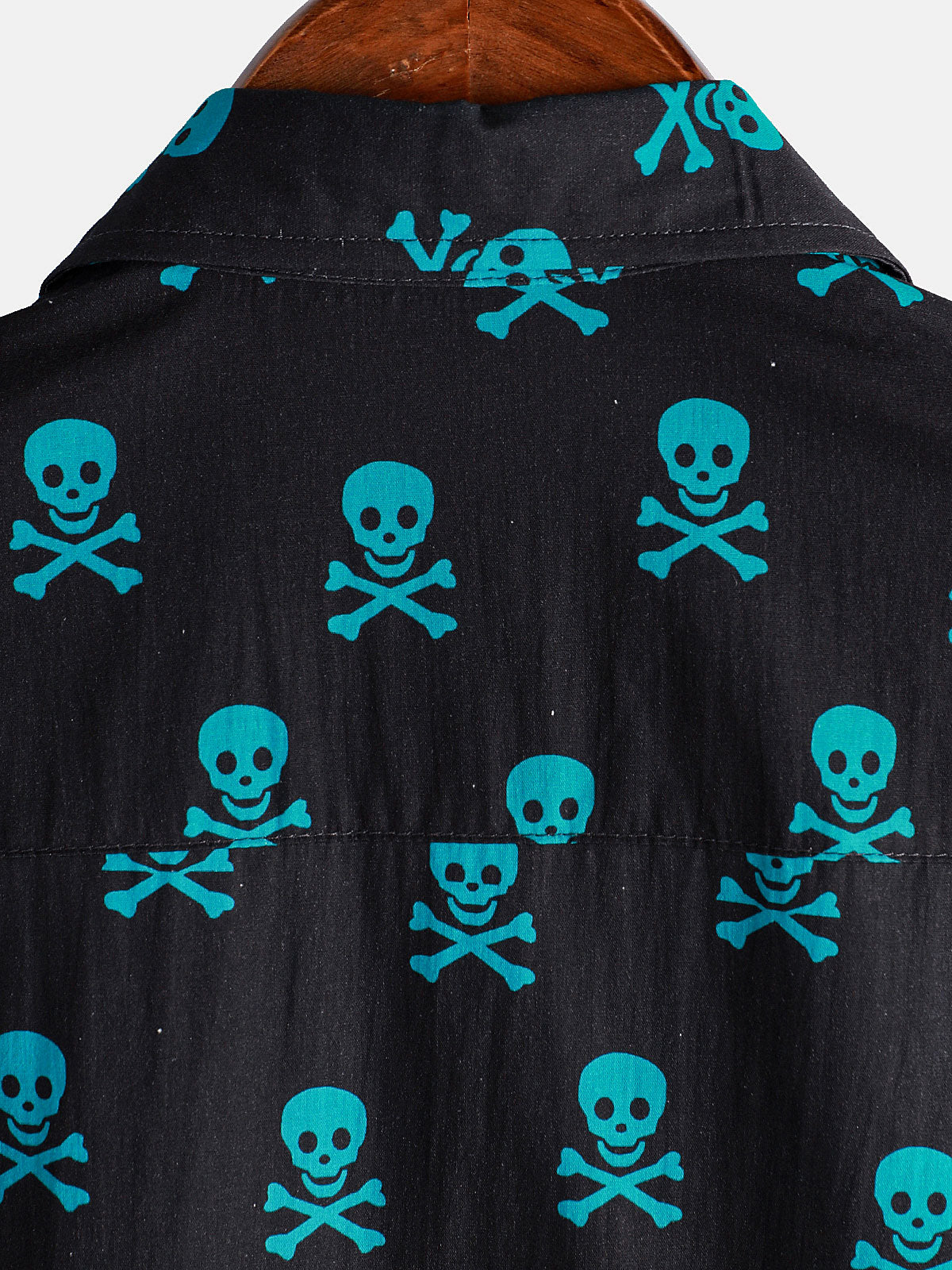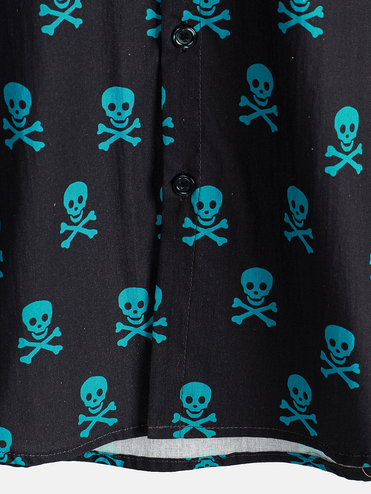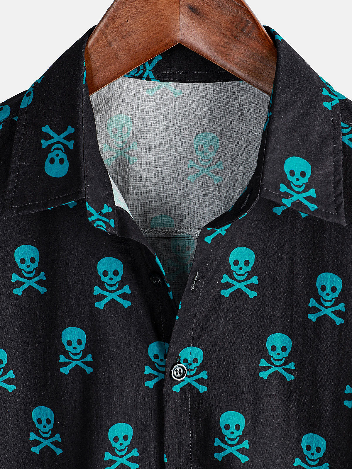 Men's Skull Punk Rock Holiday Beach Cotton Breathable Cool Summer Short Sleeve Shirt