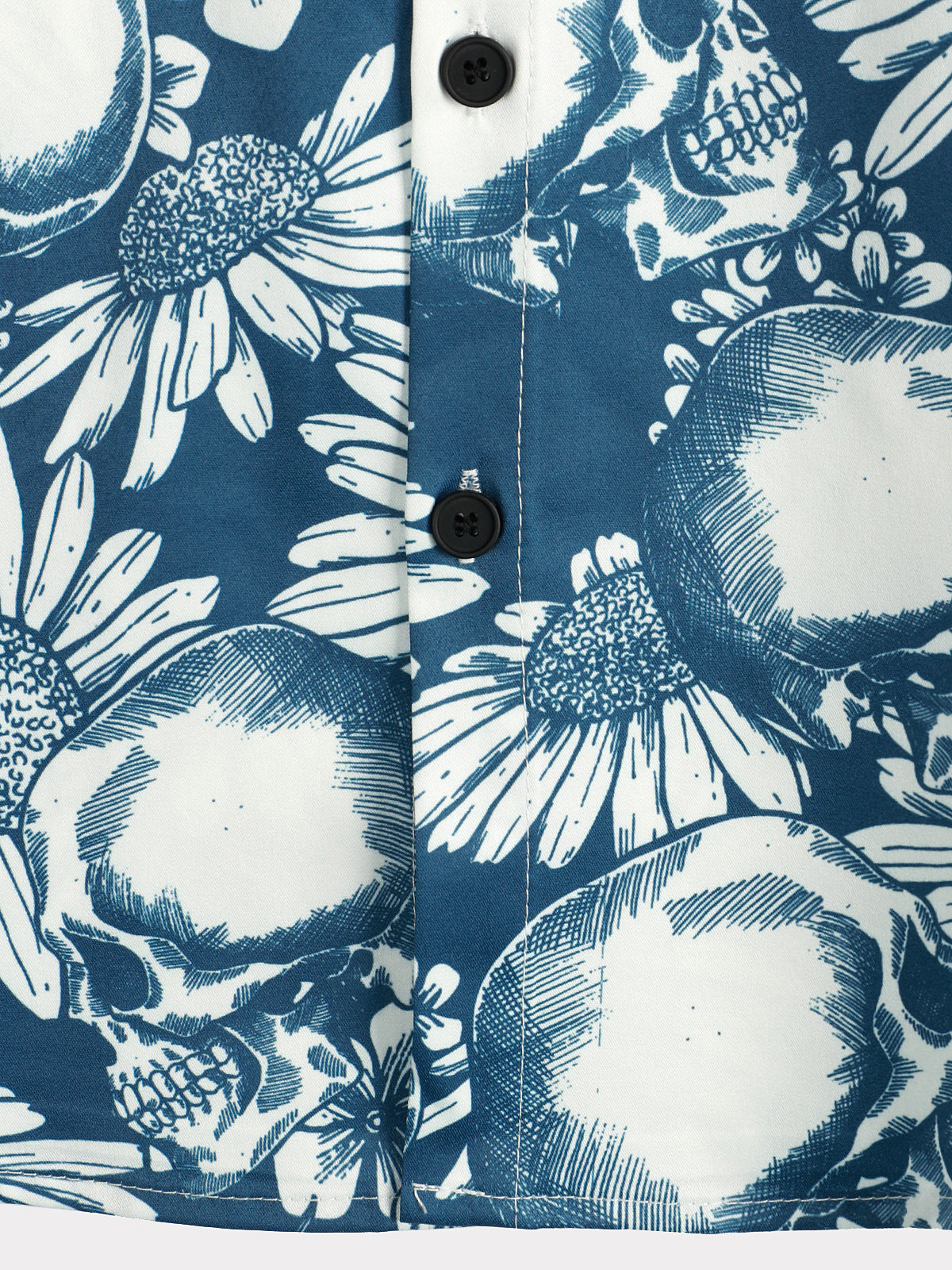 Men's Skull Sunflower Button Up Short Sleeve Art Flower Blue Rock and Roll Hawaiian Shirt