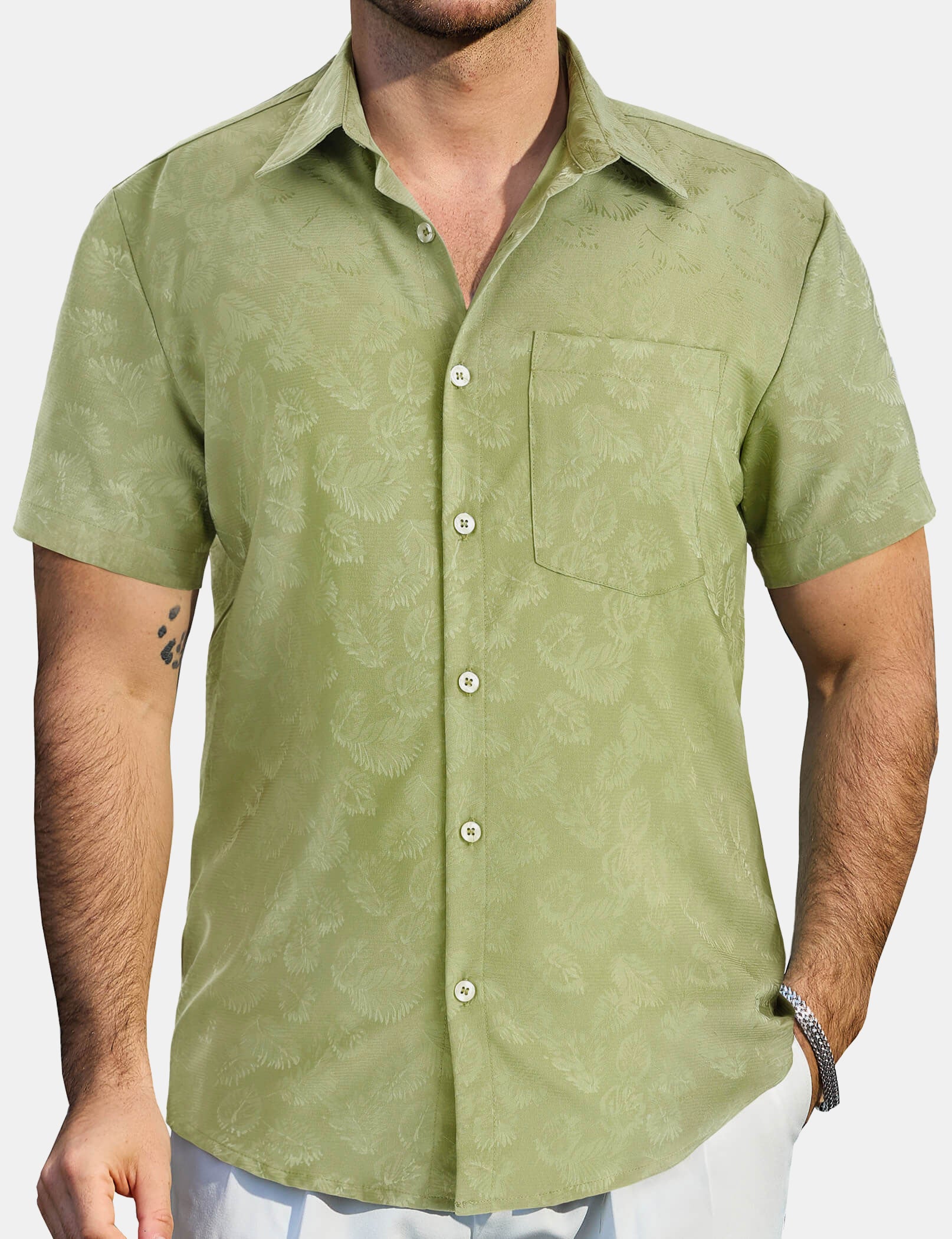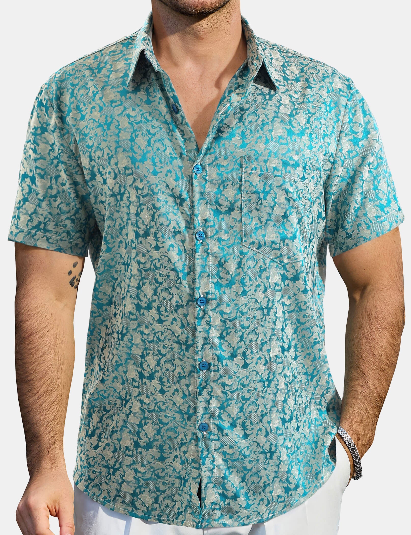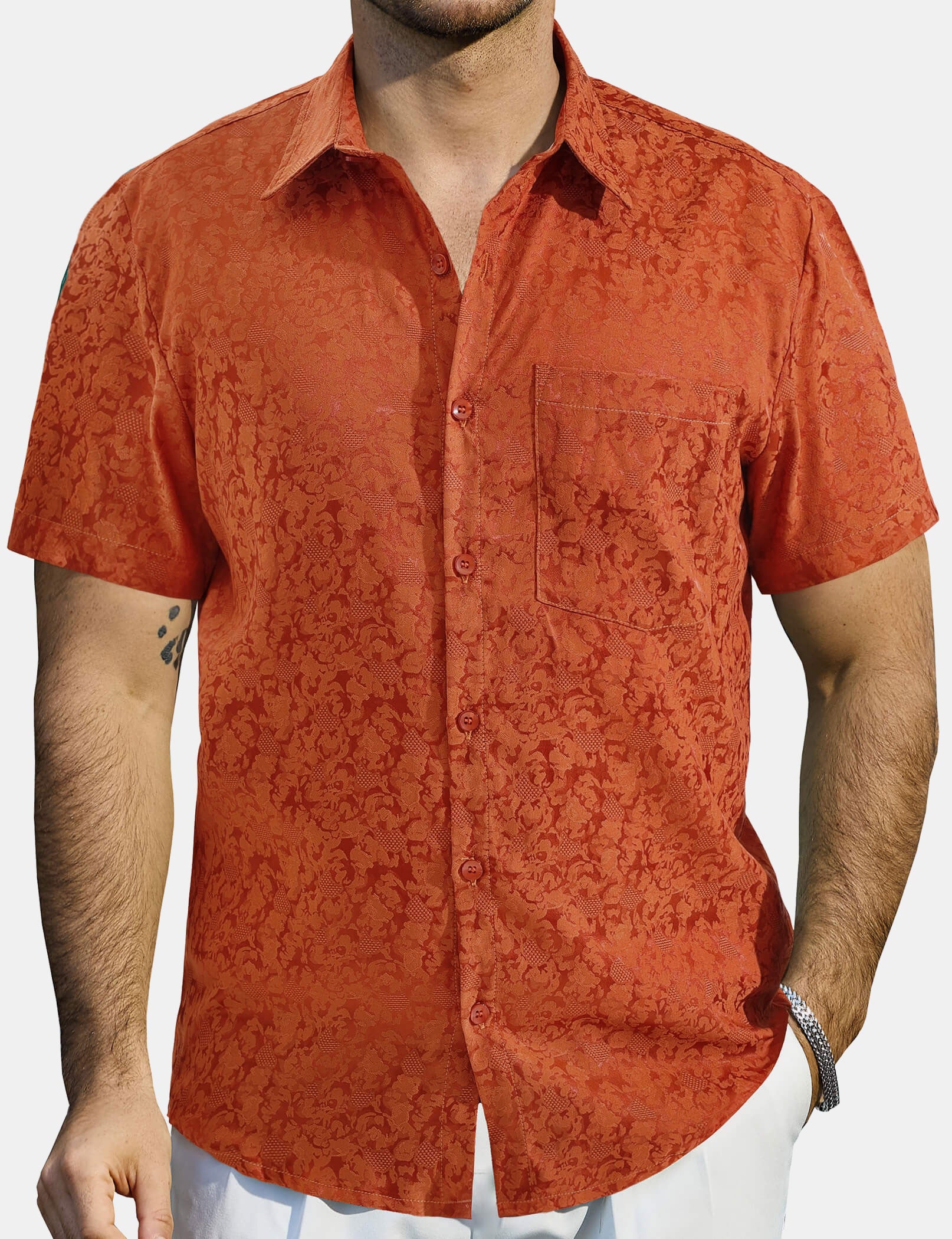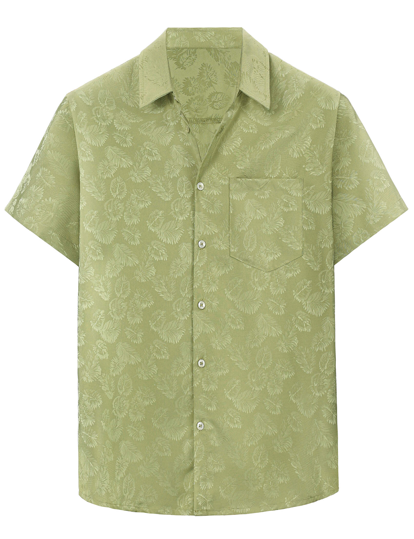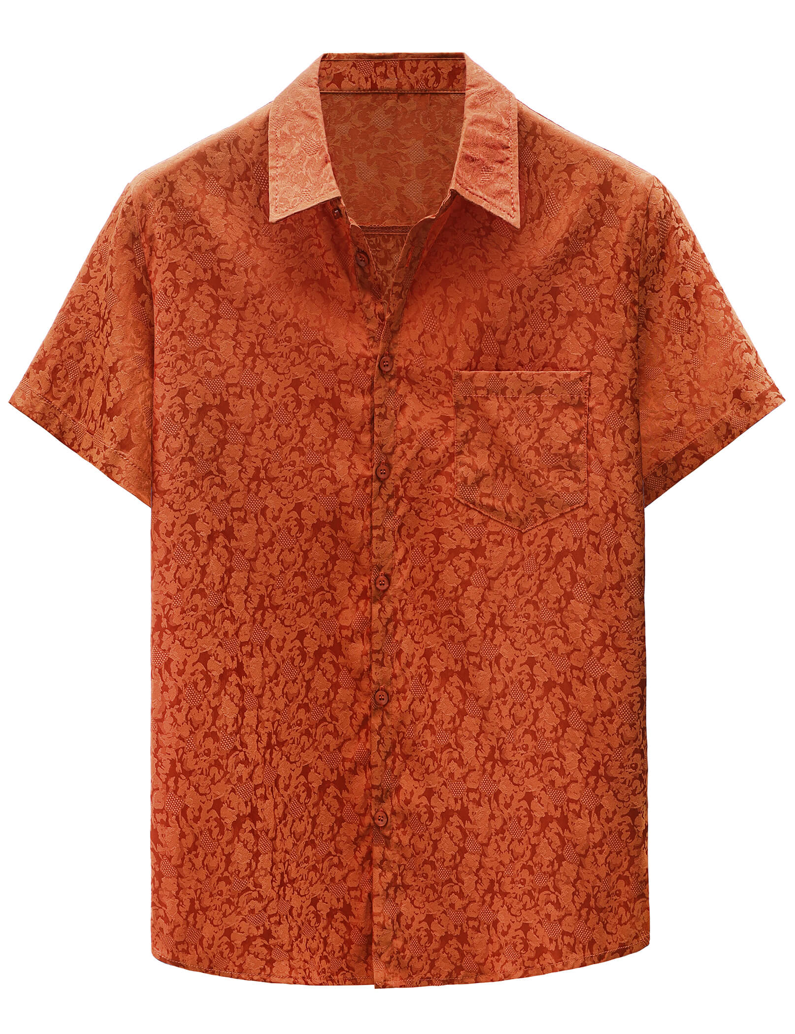 Men's Summer Jacquard Satin Casual Short Sleeve Button Up Shirts