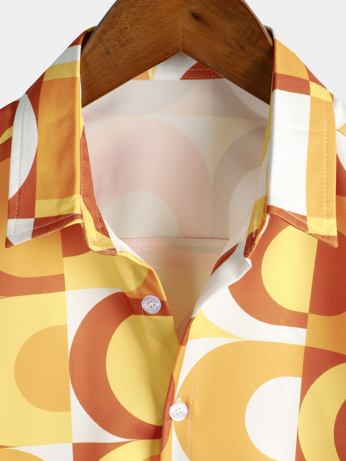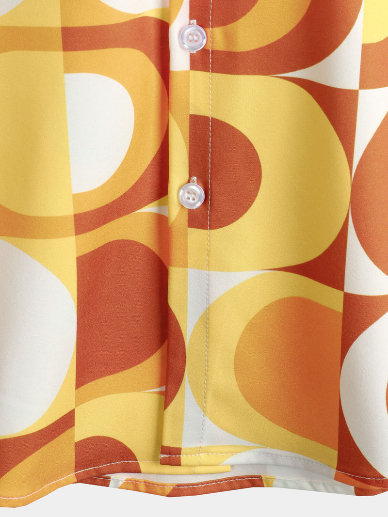 Men's Summer Retro Button Up Vintage Orange 70s Geometric Summer Beach Cool Short Sleeve Shirt