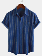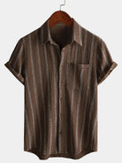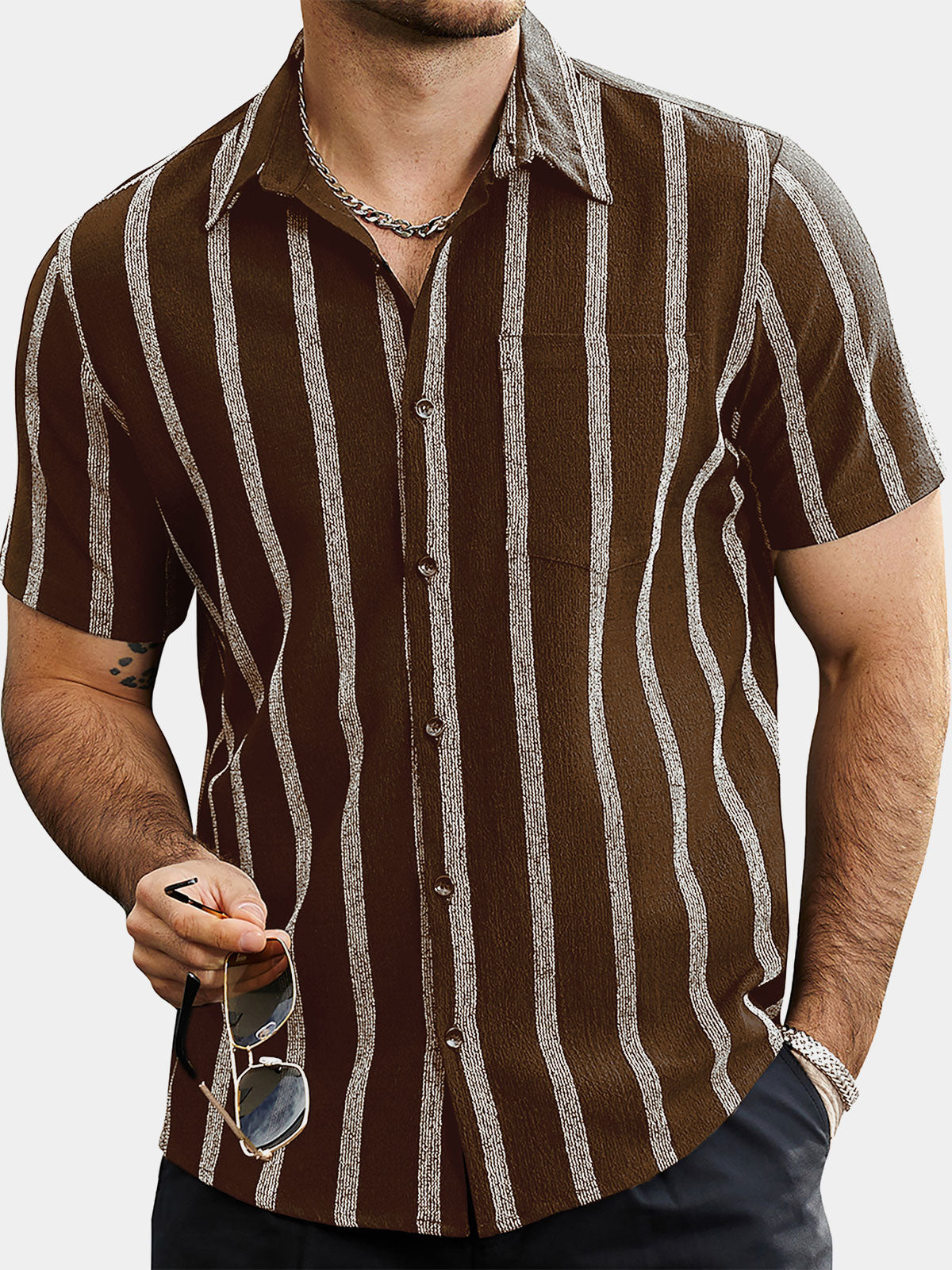 Men's Summer Striped Pocket Button Up Short Sleeve Hawaiian Shirt
