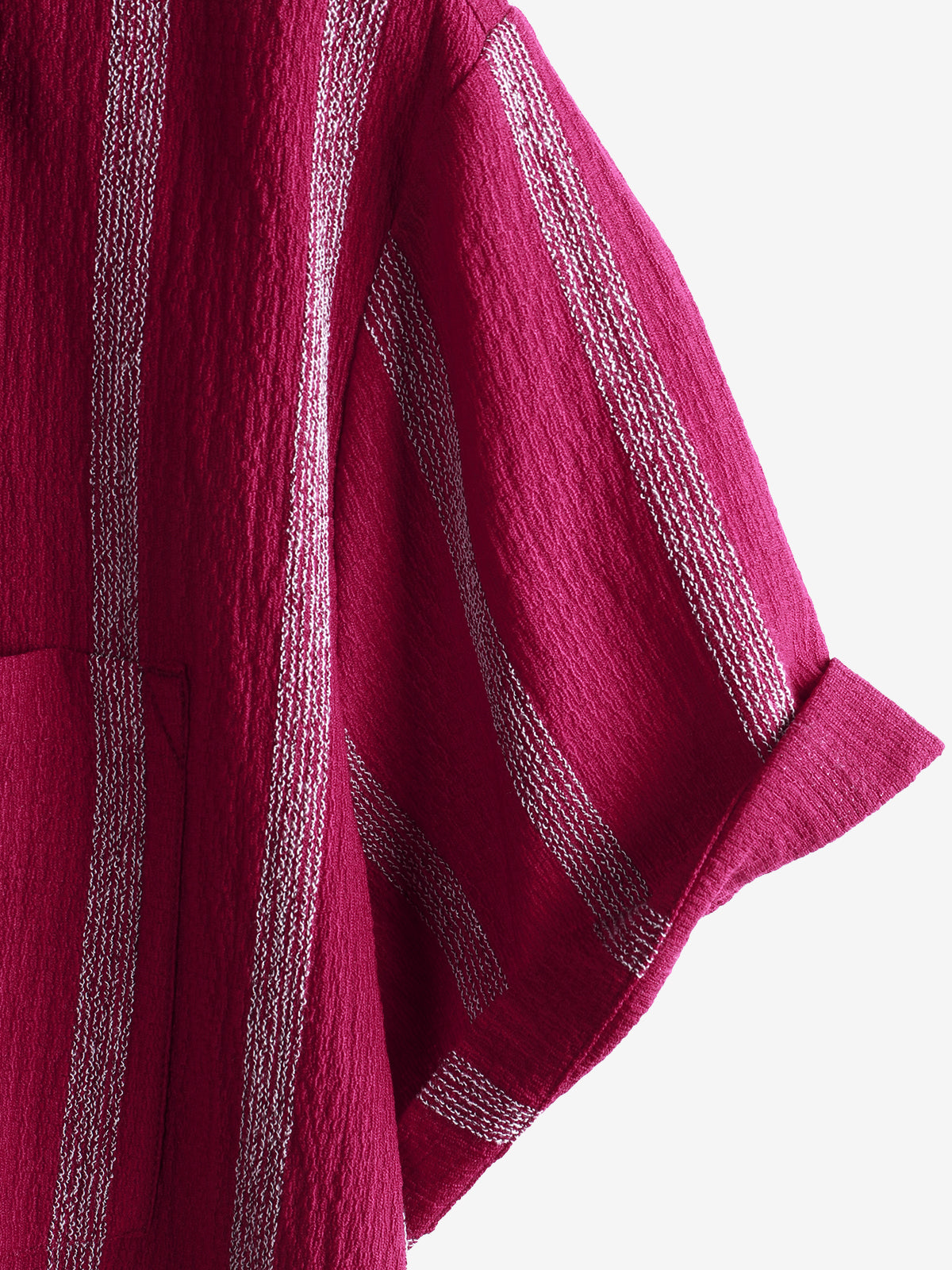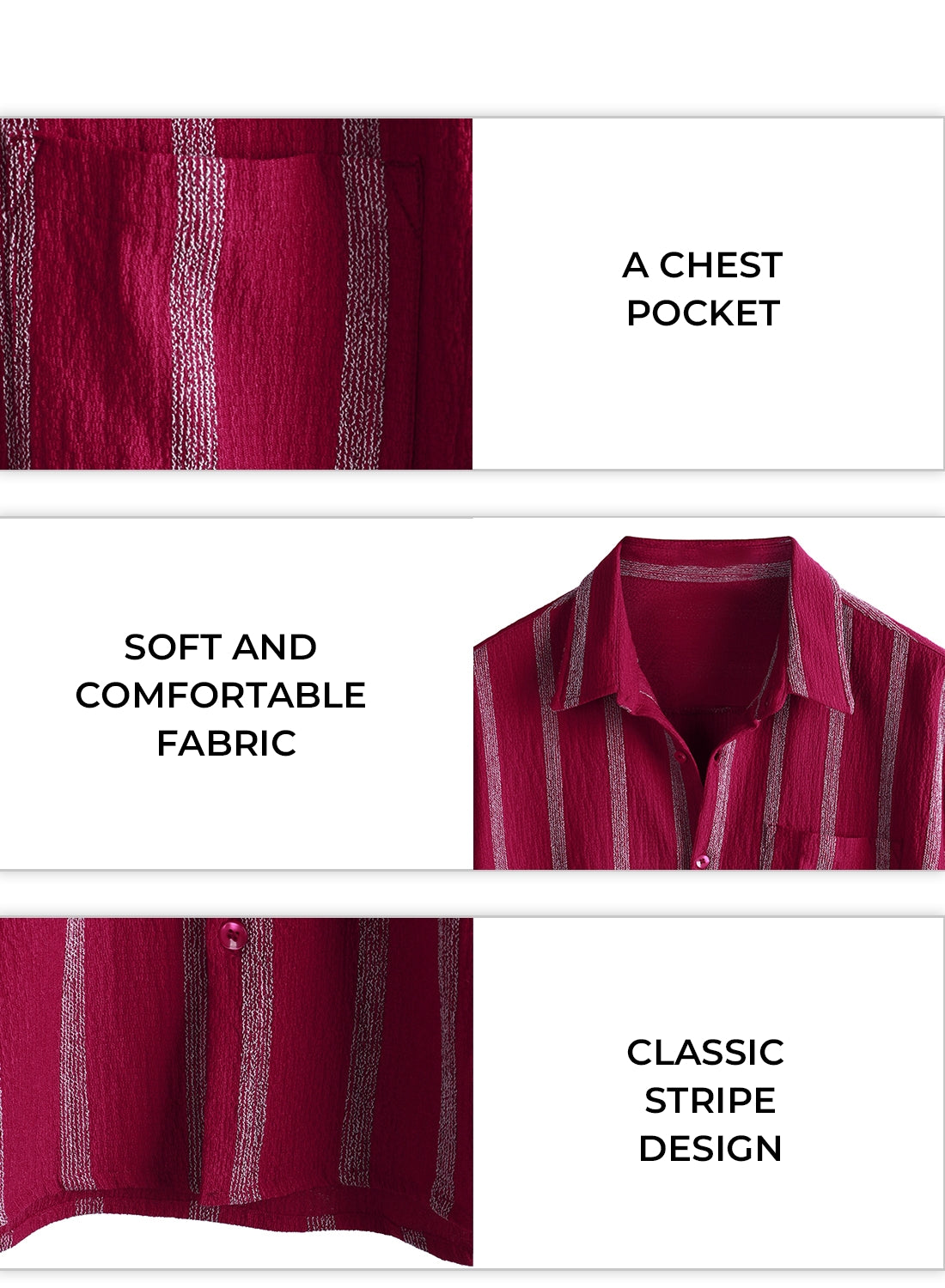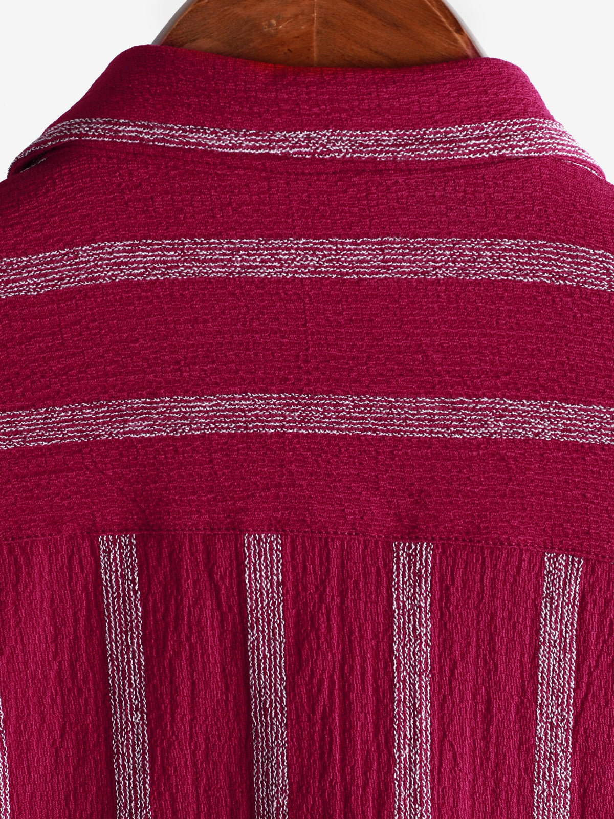 Men's Summer Striped Pocket Button Up Short Sleeve Vintage Beach Hawaiian Shirt